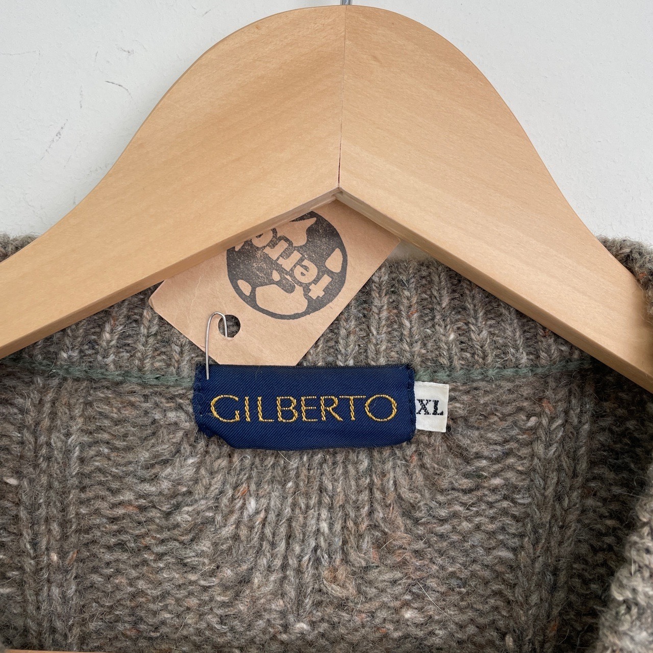 90s GILBERTO ネップ ケーブルニット セーター ヴィンテージ 古着 ユーロ カーキ オリーブグリーン ウール アンゴラ 90年代 ビンテージ XL 26010611