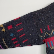80s 90s ユーロ 幾何学模様 カラーネップ カーディガン ヴィンテージ 古着 柄ニット ウール アクリル 黒 ブラック ジャカード 80年代 90年代 ビンテージ 26010806
