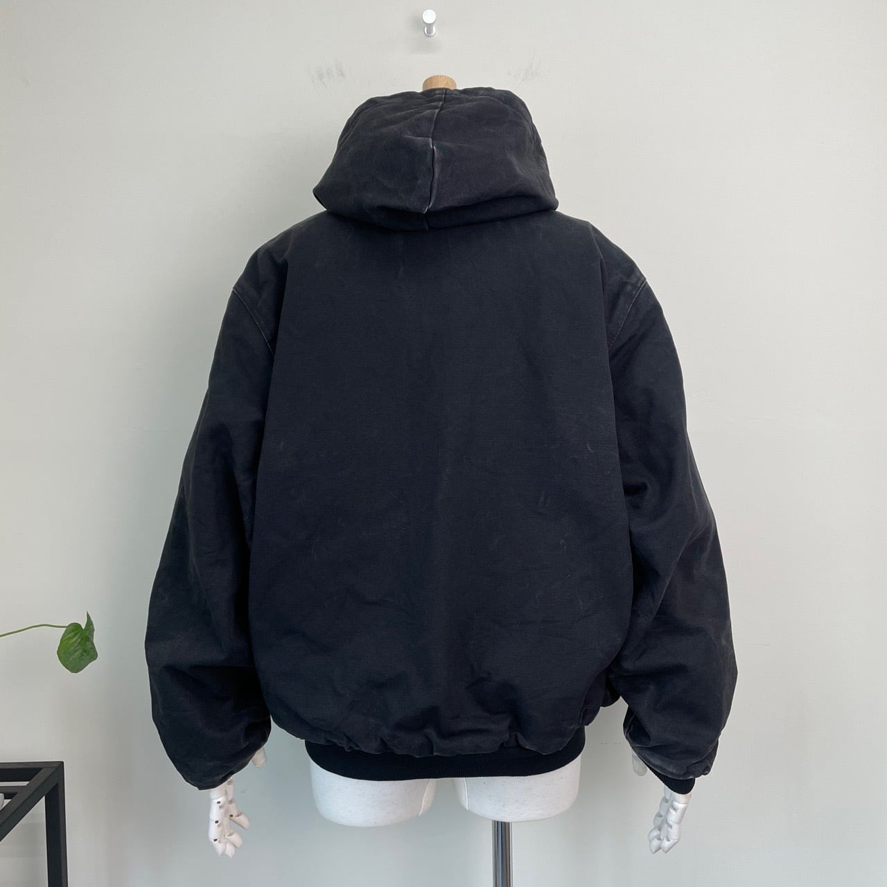 90s 00s Walls アクティブジャケット ダックジャケット 黒 ブラック ヴィンテージ 古着 パーカー フード付き フェード スミクロ 墨黒 中綿 裏キルティング 90年代 ビンテージ L 26011801