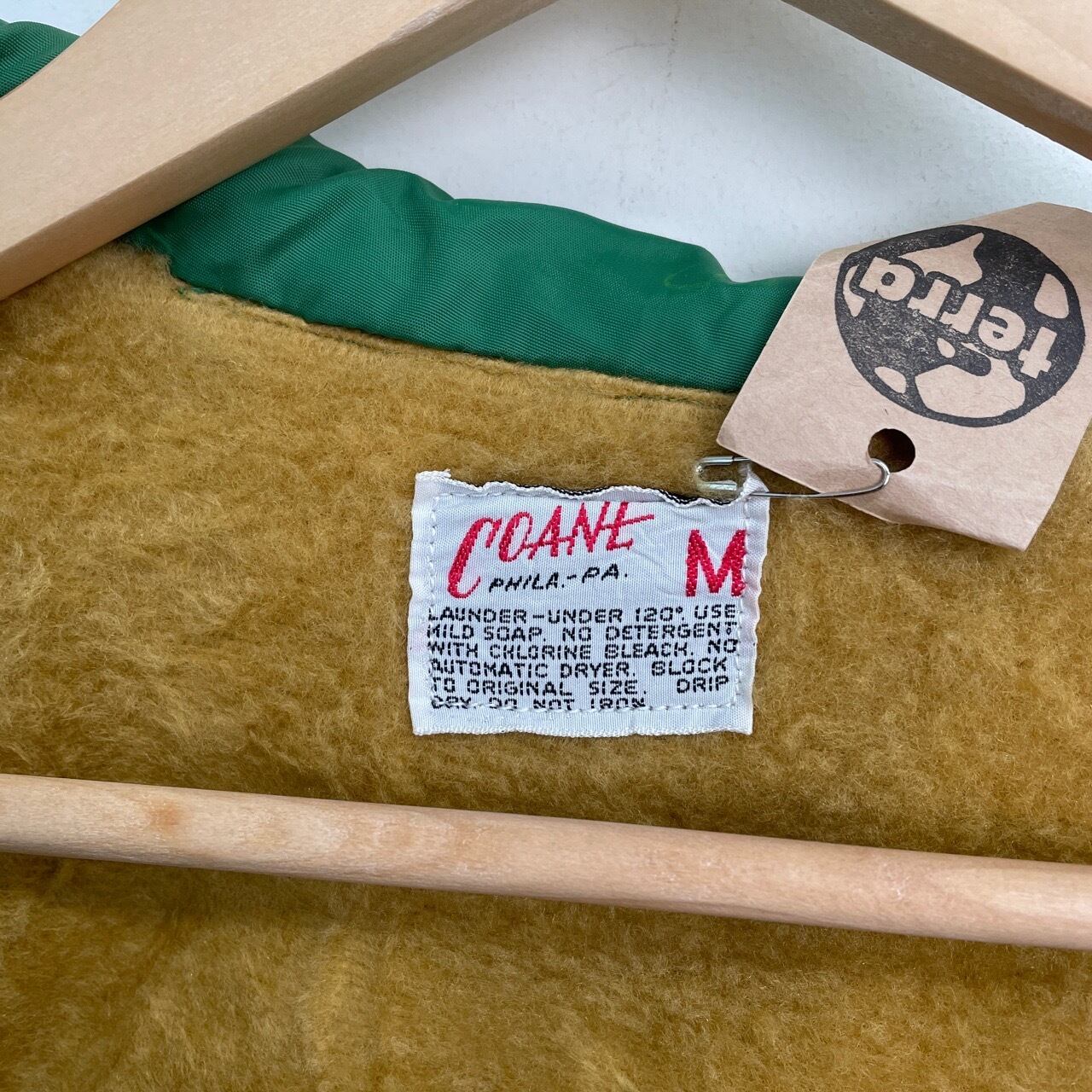 70s COANE ボアライナー付き コーチジャケット ワッペン付き 黄緑 グリーン ヴィンテージ 古着 ナイロンジャケット 裏ボア 70年代 ビンテージ M 26011802