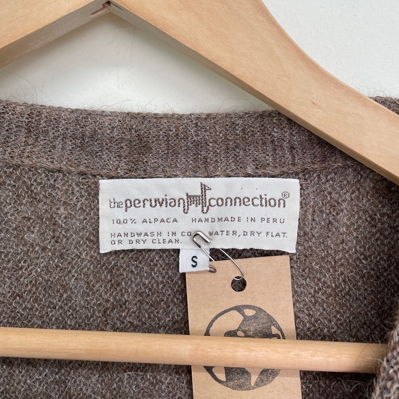 90s peruvian connection アルパカ100% カーディガン ヴィンテージ 古着 茶 ブラウン ニット 無地 90年代 ビンテージ ペルー S 26011805