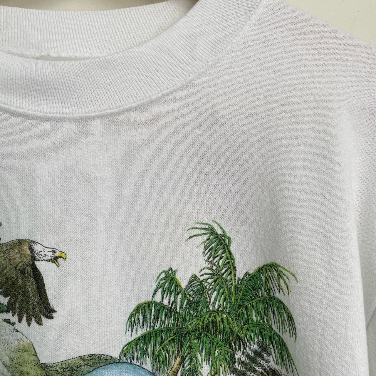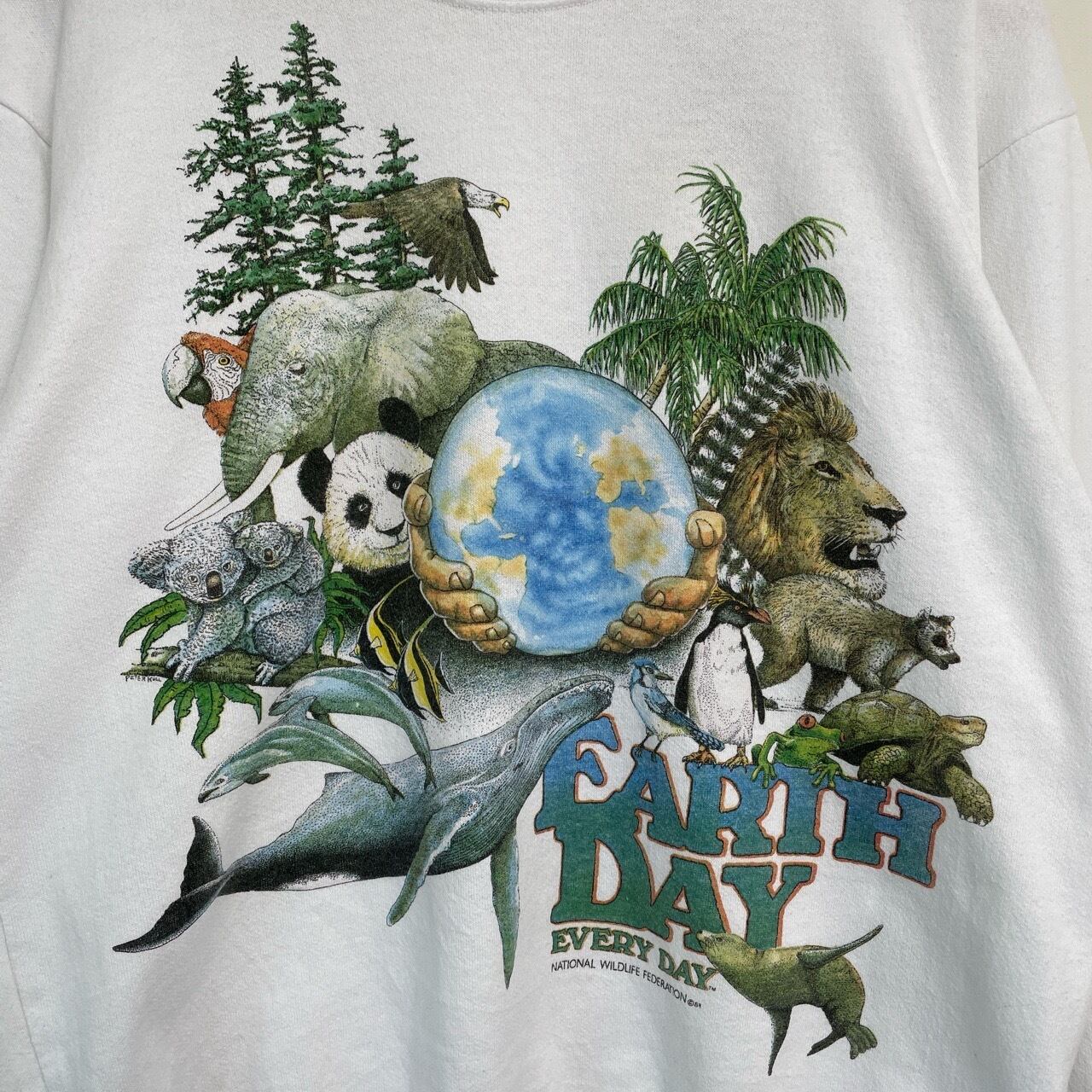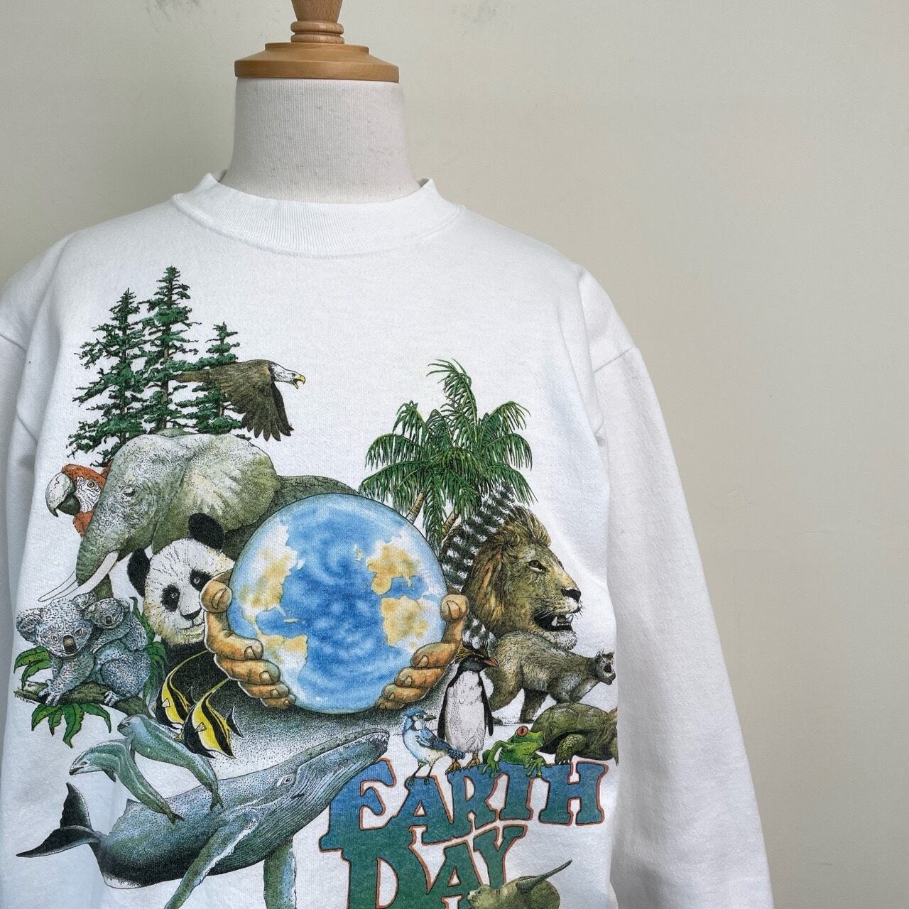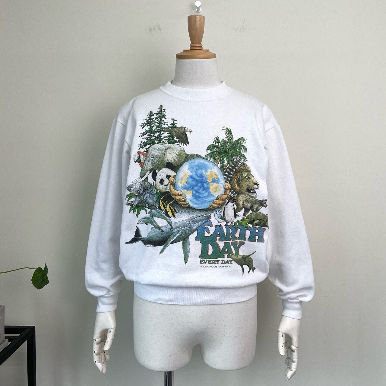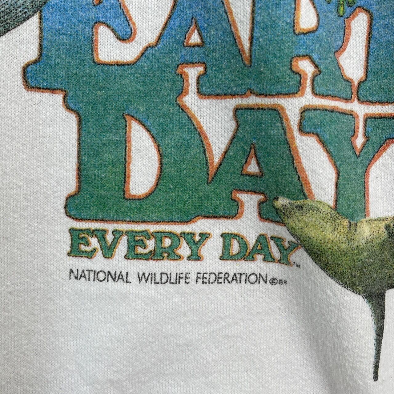 80s EARTH DAY 1989年 アニマルスウェット ヴィンテージ 古着 動物 アースデイ 地球 アート 白 ホワイト 80年代 ビンテージ スウェット 26011809