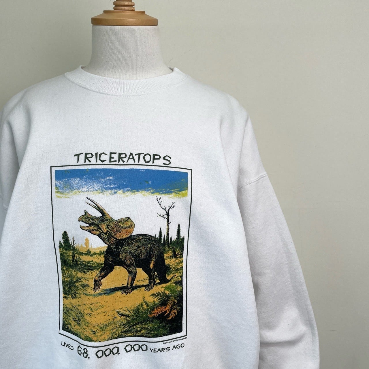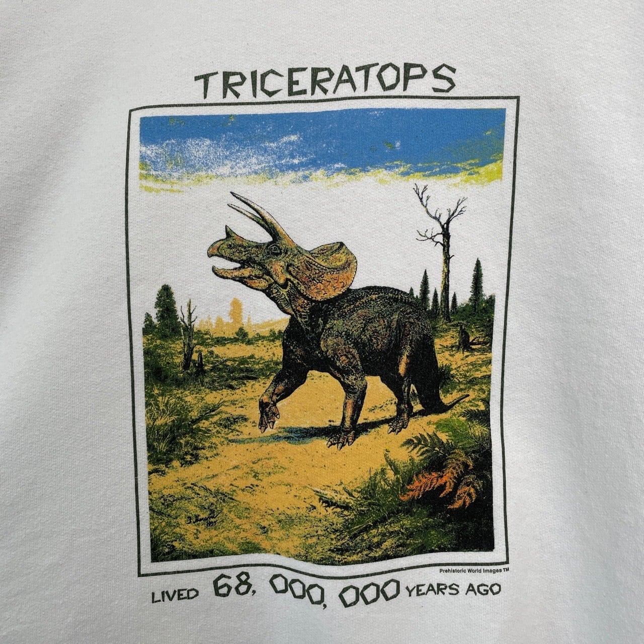 90s 00s トリケラトプス 恐竜 アート スウェット ヴィンテージ 古着 アニマルスウェット 白 ホワイト 動物 90年代 ビンテージ XL 26011810
