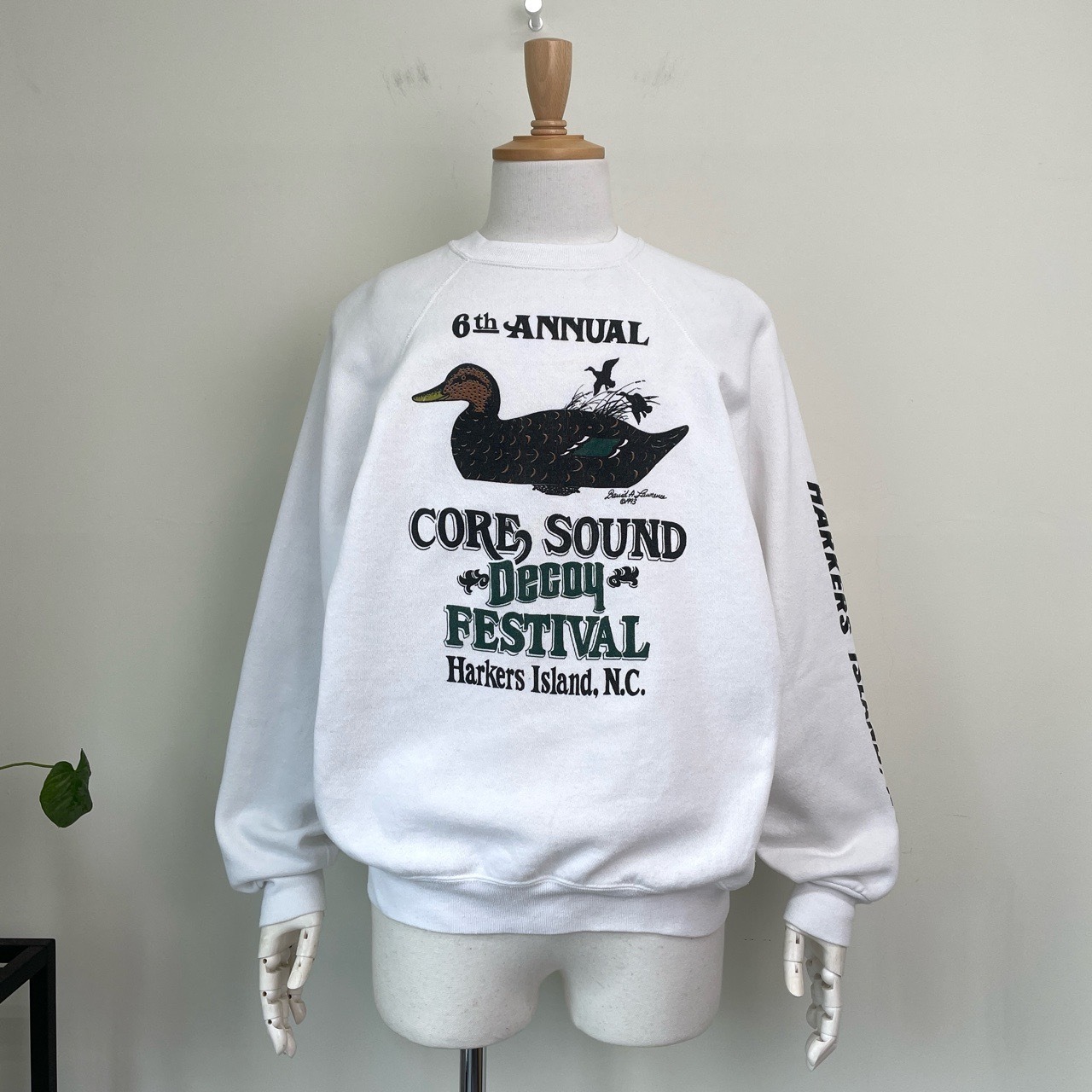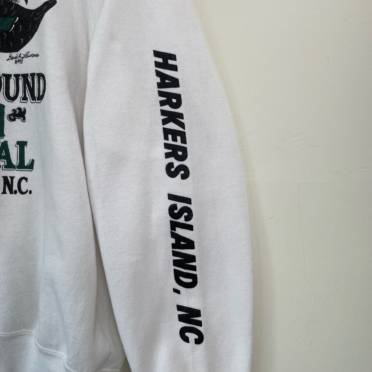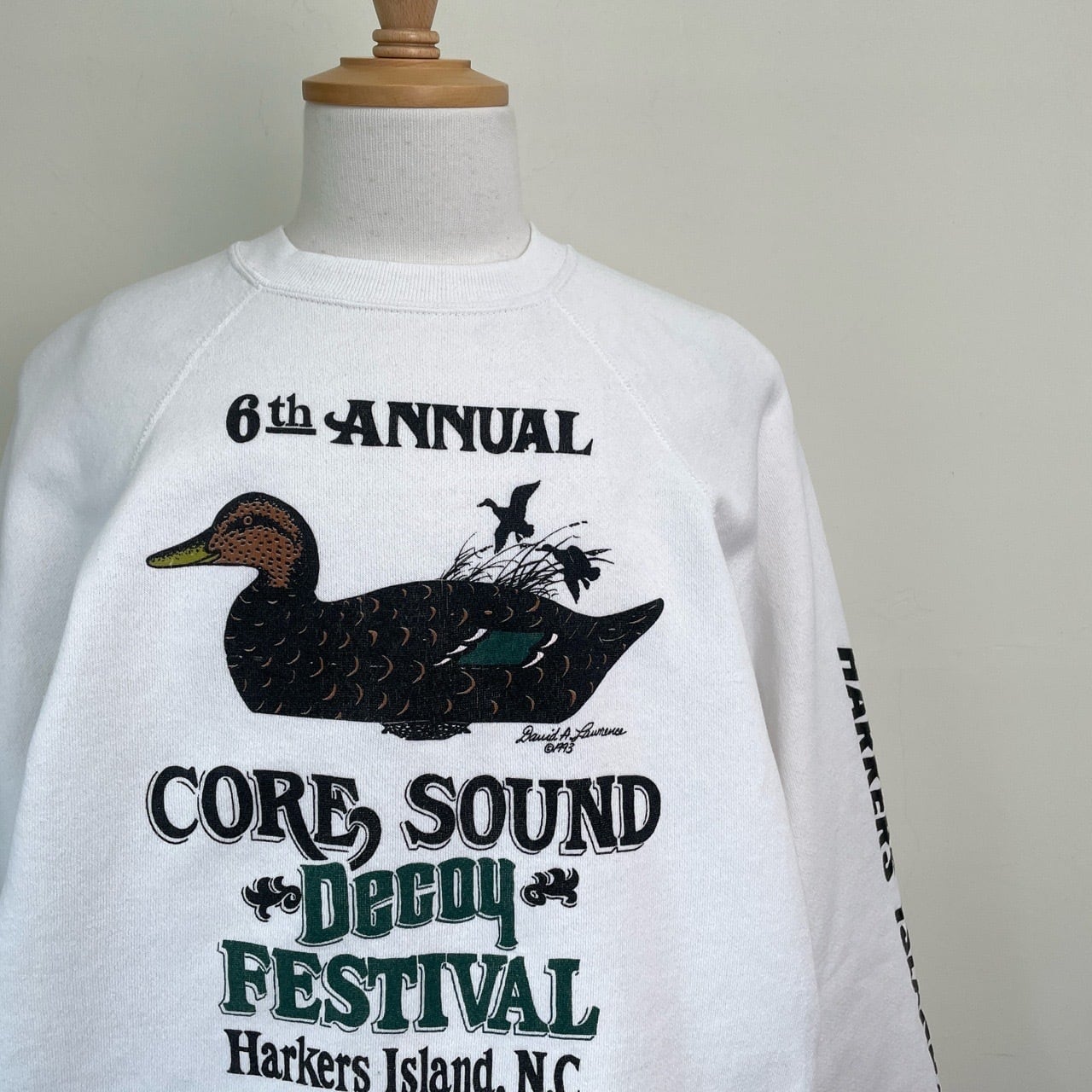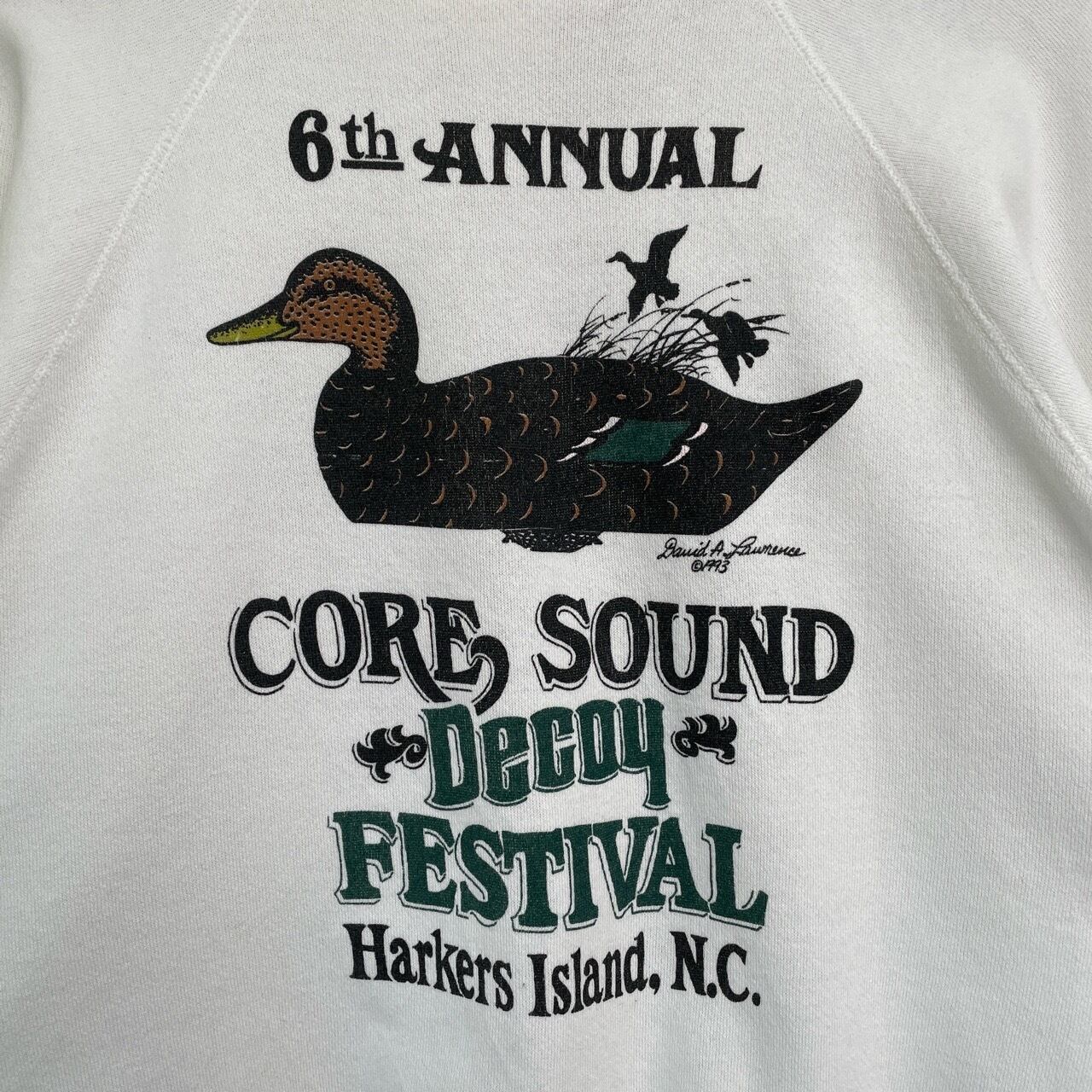 90s USA製 Decoy Festival カモ アニマルスウェット ヴィンテージ 古着 鴨 鳥 動物 ハンティング 袖プリント アニマル スウェット 白 ホワイト 90年代 ビンテージ XL 26011813