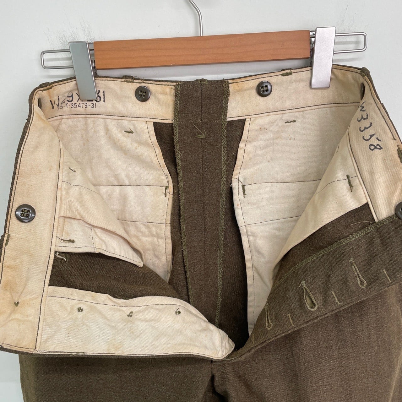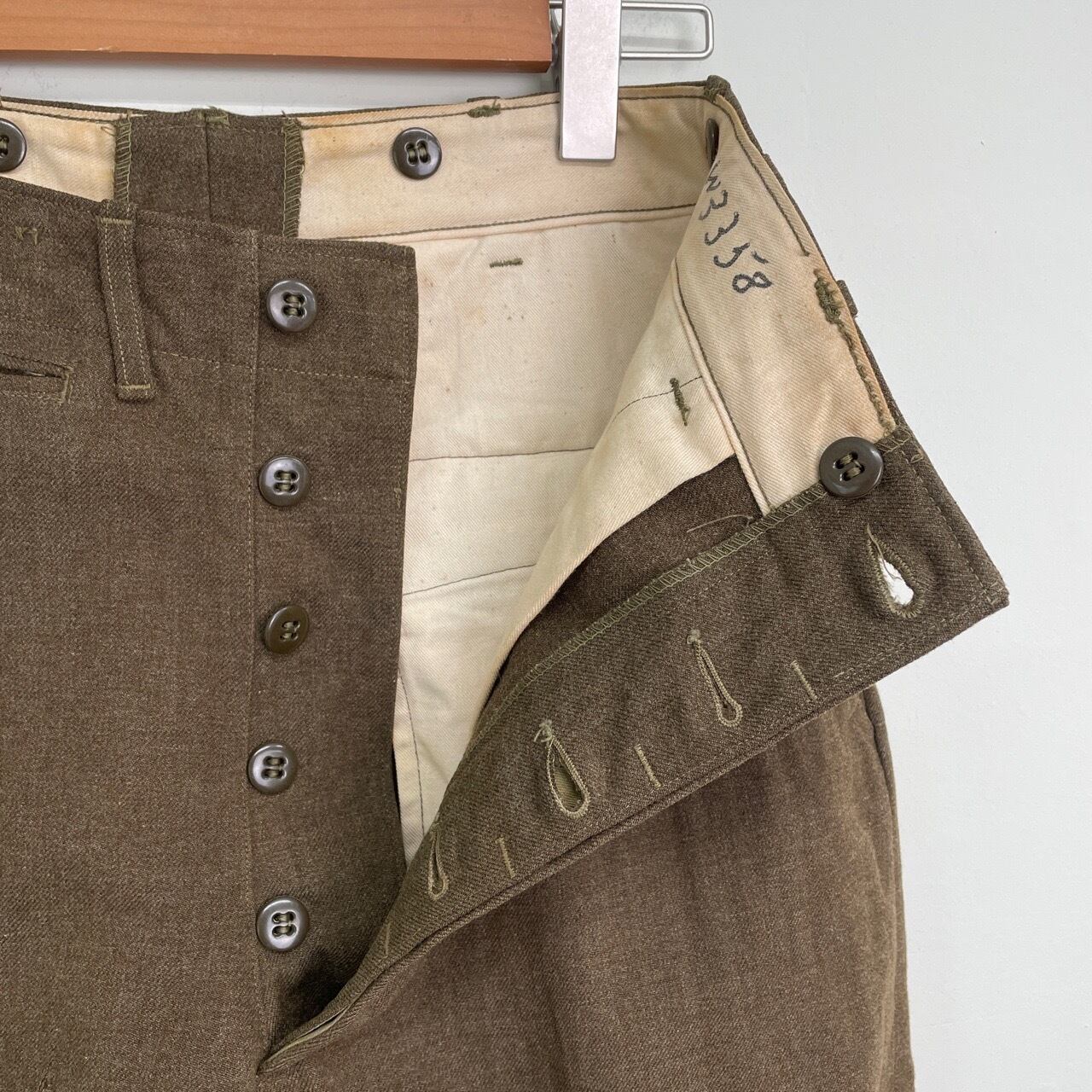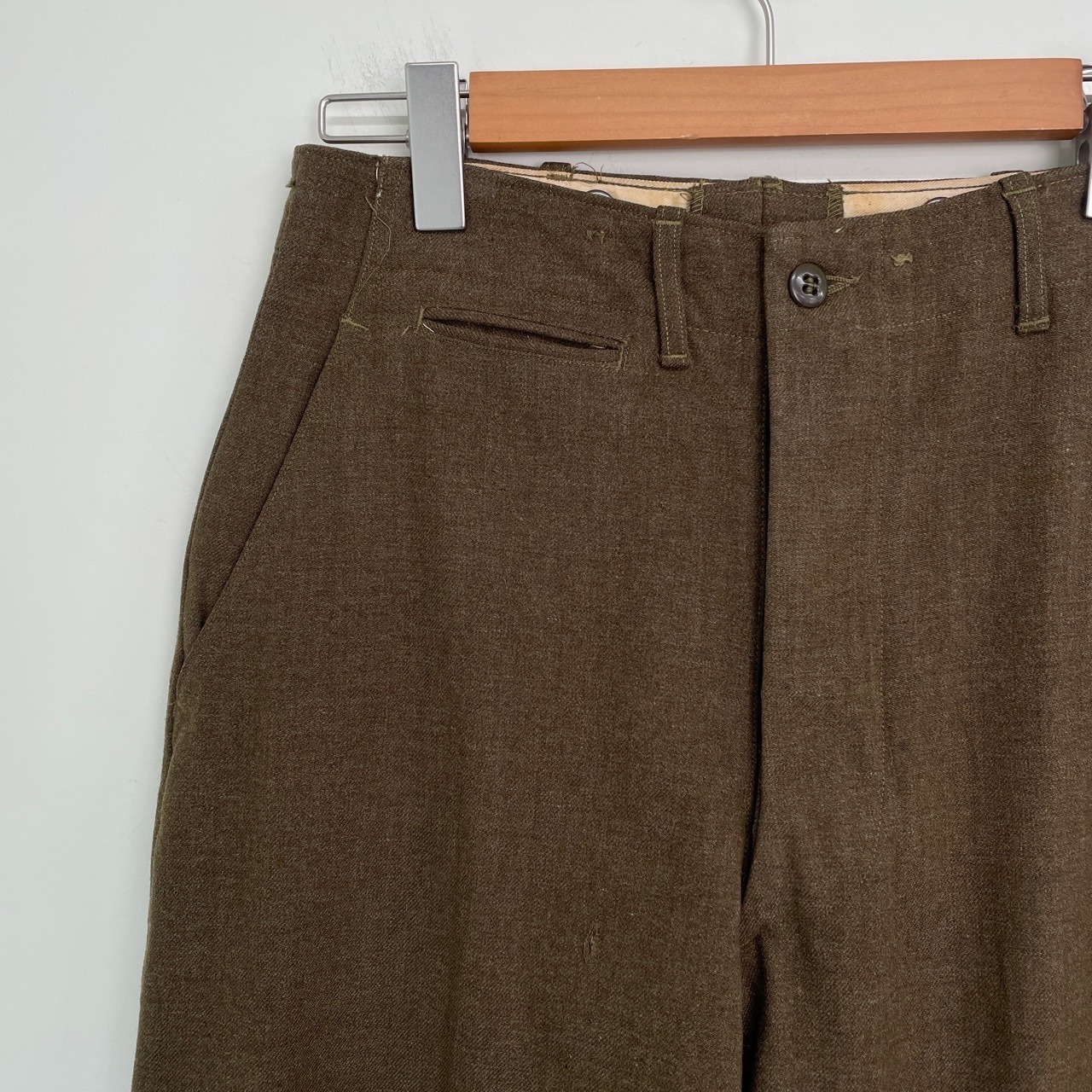 40s U.S.ARMY ボタンフライ ウールパンツ ワイド スラックス ミリタリー ヴィンテージ 古着 米軍実物 フィールドトラウザーズ 40年代 ビンテージ W29 26011814