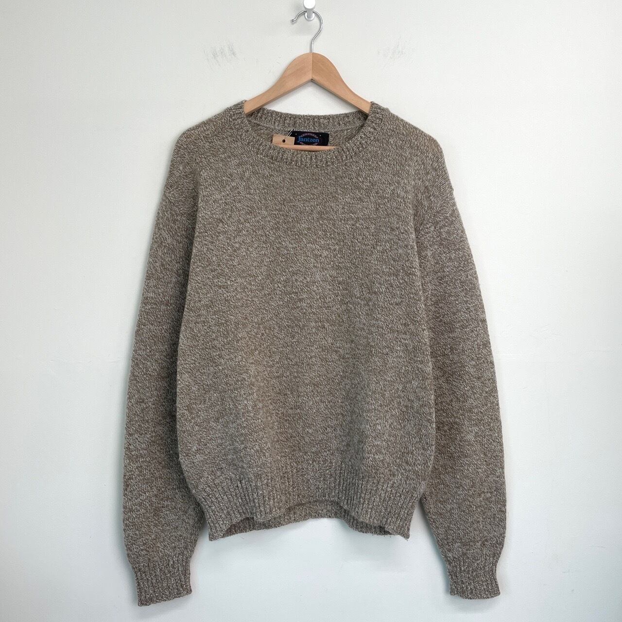 80s USA製 Jantzen メランジニット ウール セーター ヴィンテージ 古着 茶 ブラウン ベージュ クルーネック 80年代 ビンテージ L 26011903