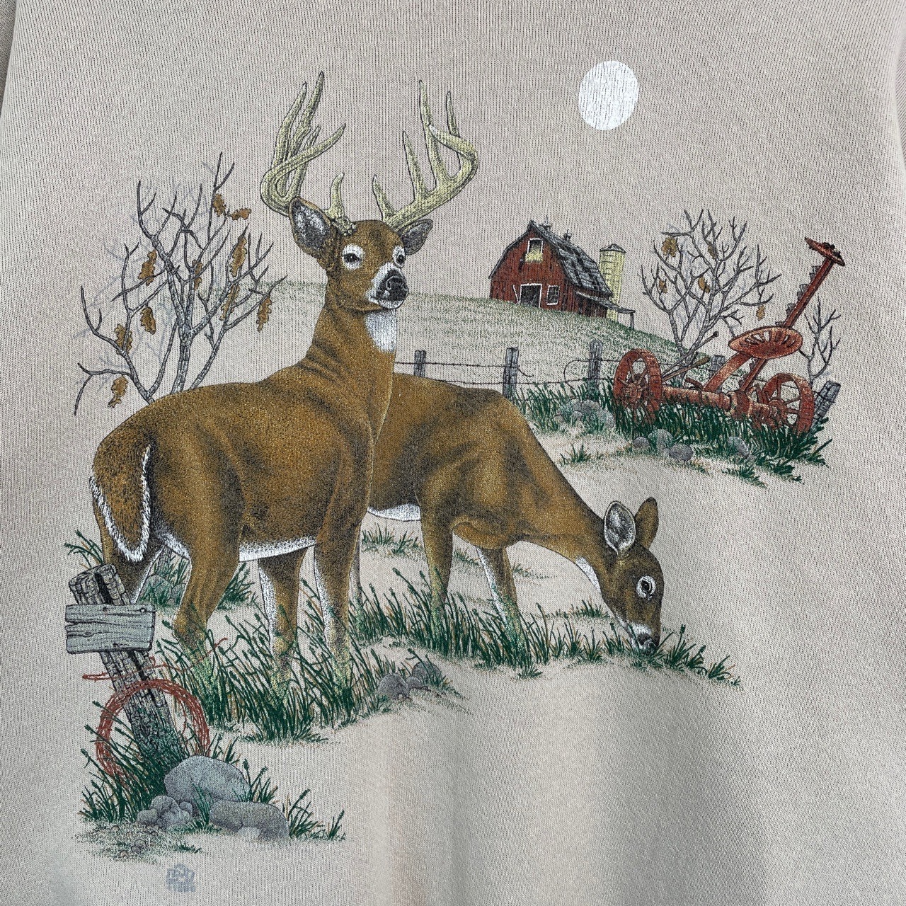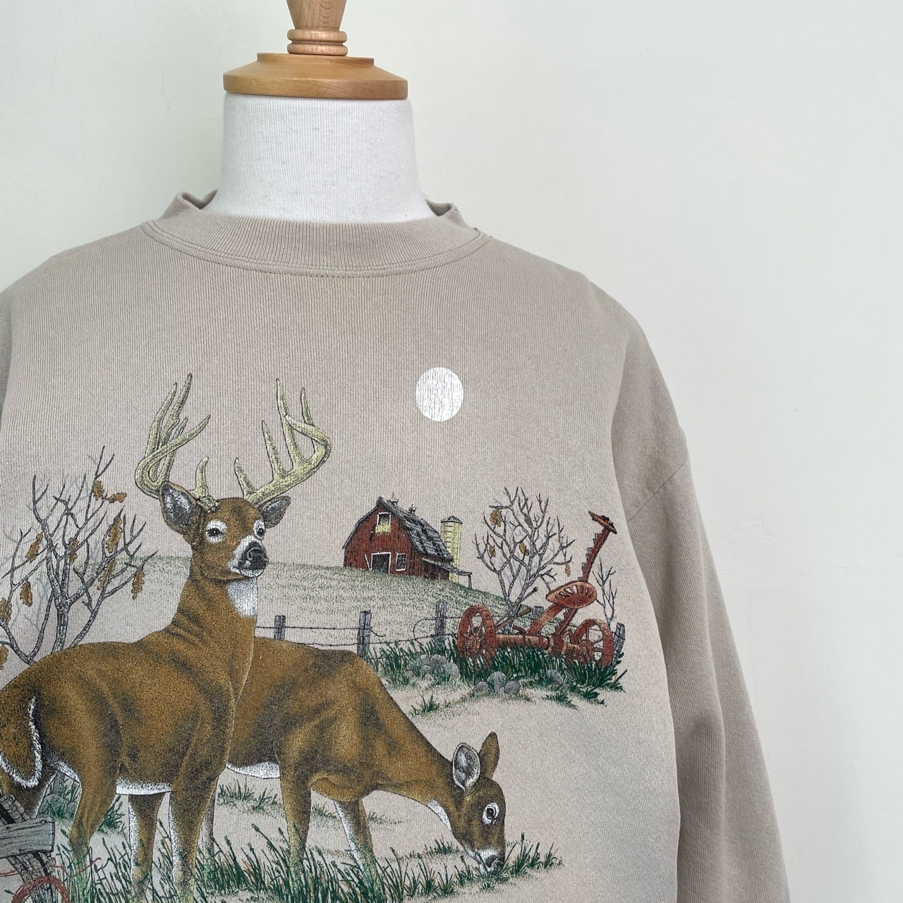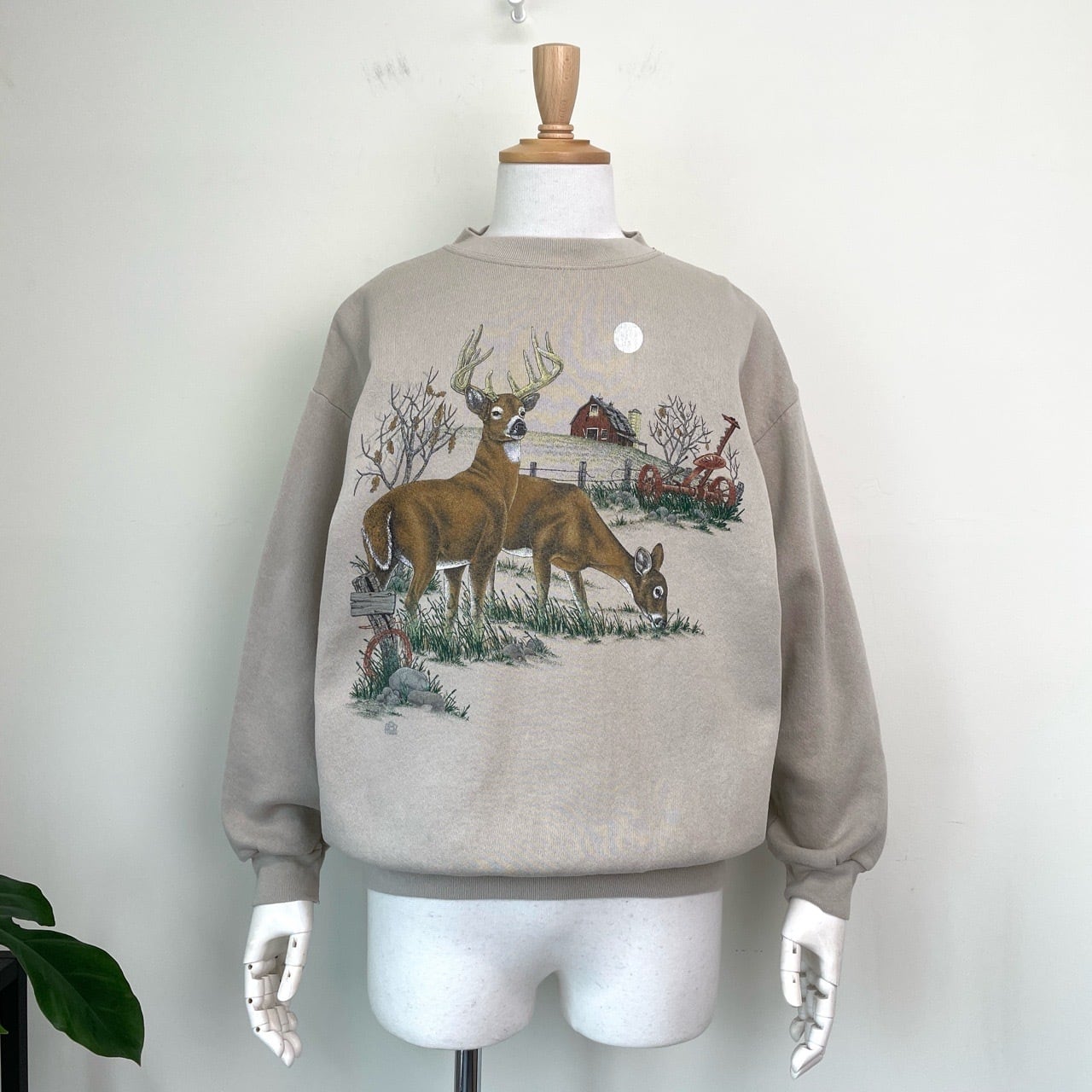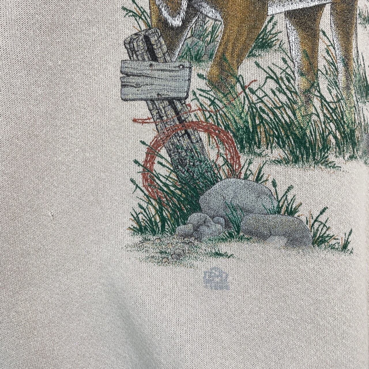 90s 鹿 アニマルスウェット ヴィンテージ 古着 ベージュ シカ 動物 アニマル スウェット 90年代 ビンテージ L 26011913