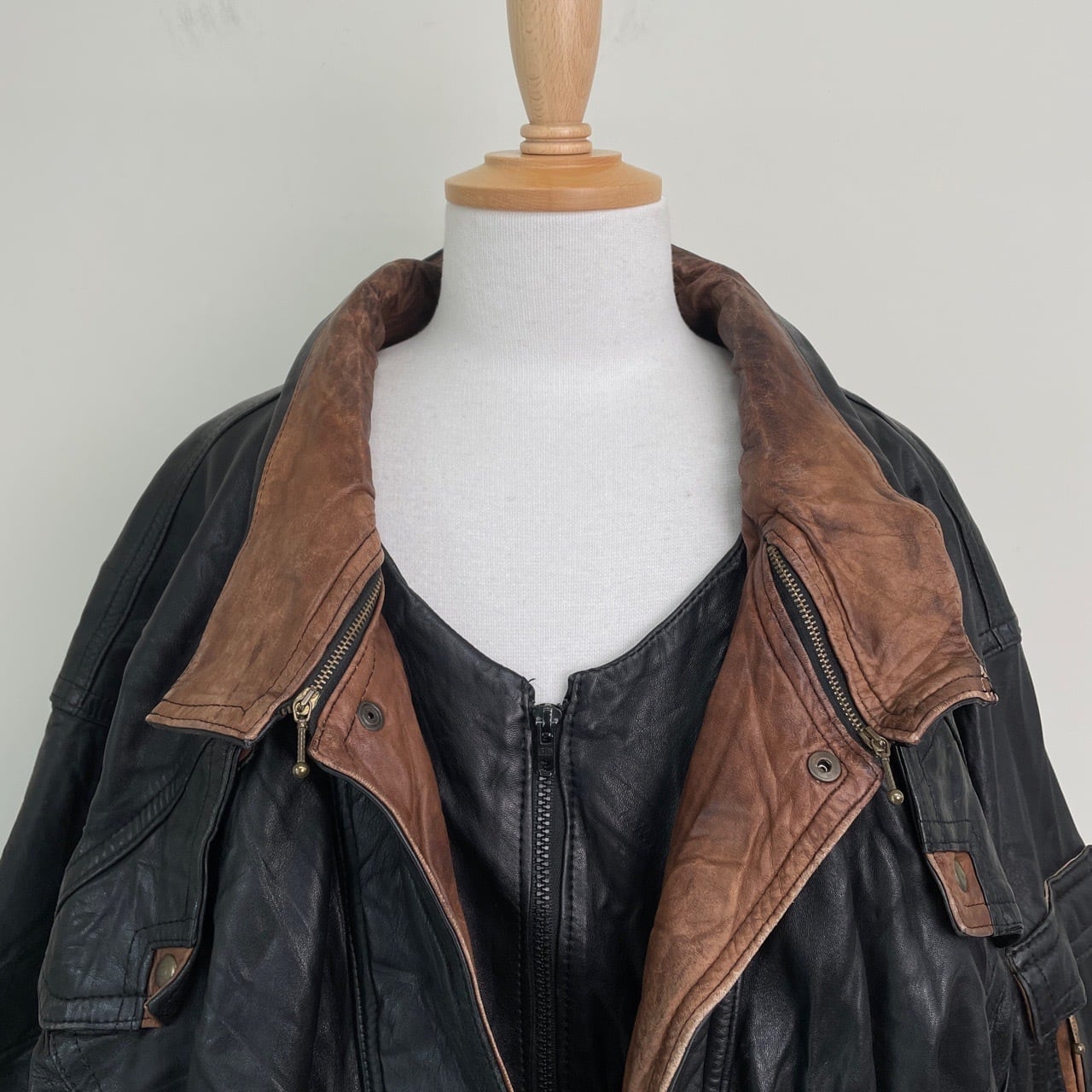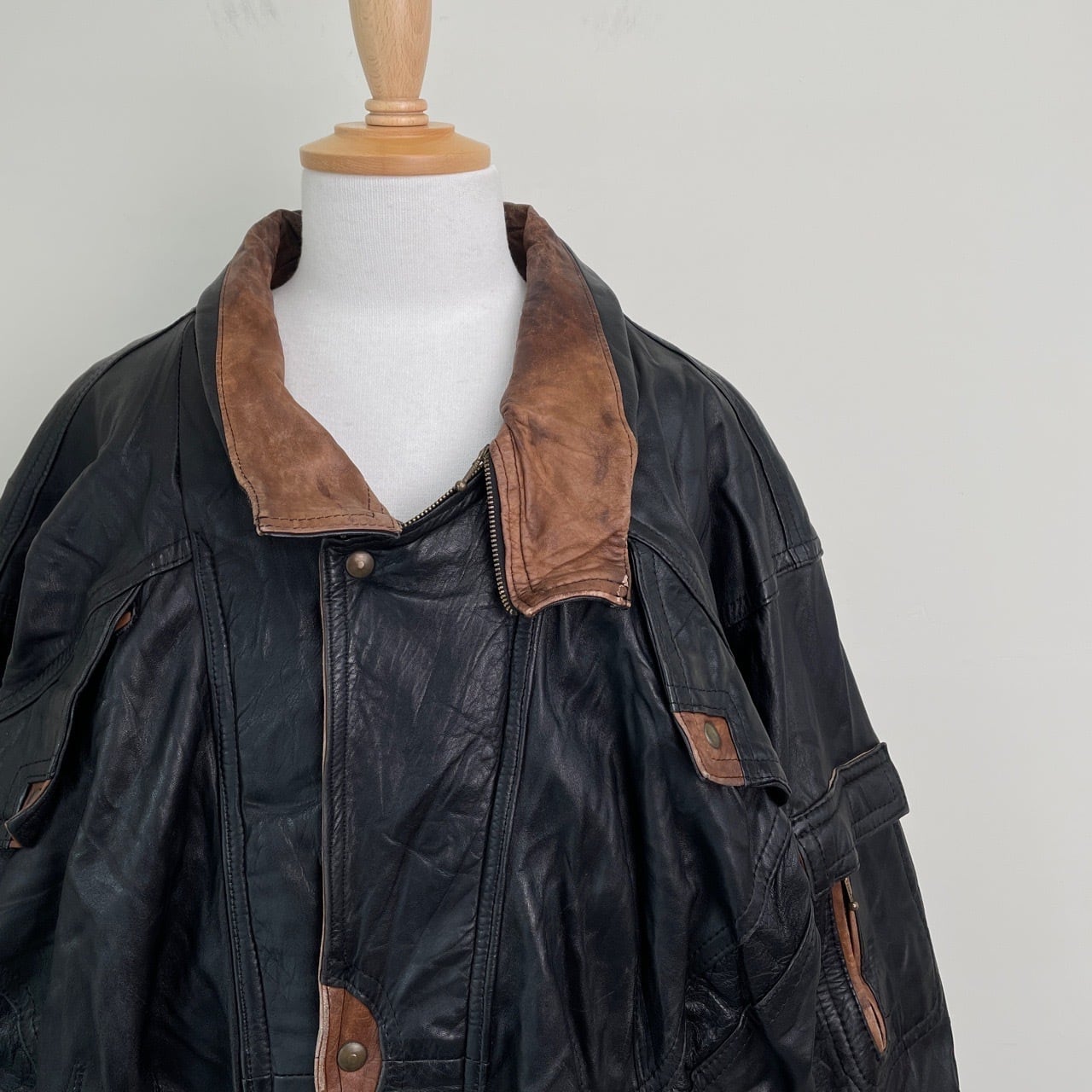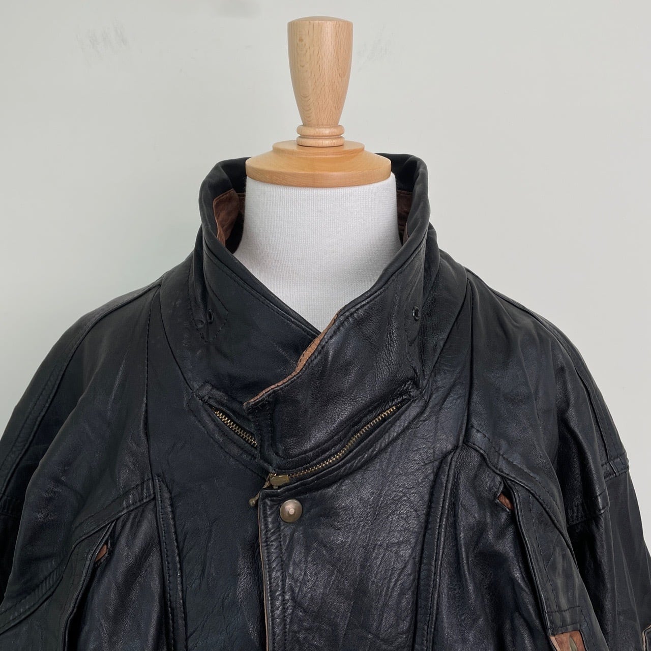 00s KAMLA ユーロ レザージャケット ブルゾン 黒 ブラック ヴィンテージ 古着 ギミック 革ジャン Y2K 00年代 2000s 2000年代 ビンテージ 26021002