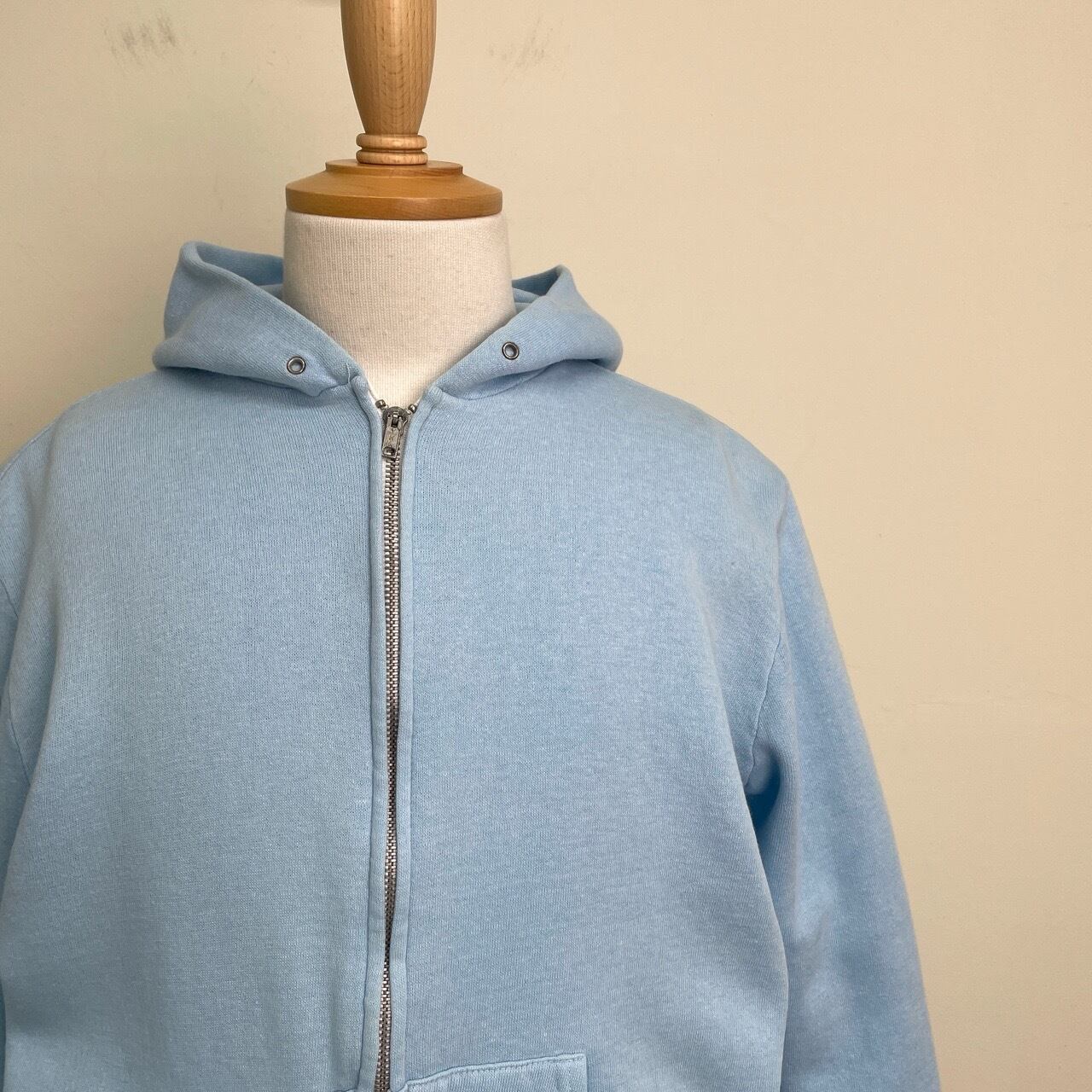 80s 90s ジップパーカー 水色 ライトブルー ヴィンテージ 古着 無地 ジップアップ フルジップ スウェットパーカー 80年代 90年代 ビンテージ 26021009