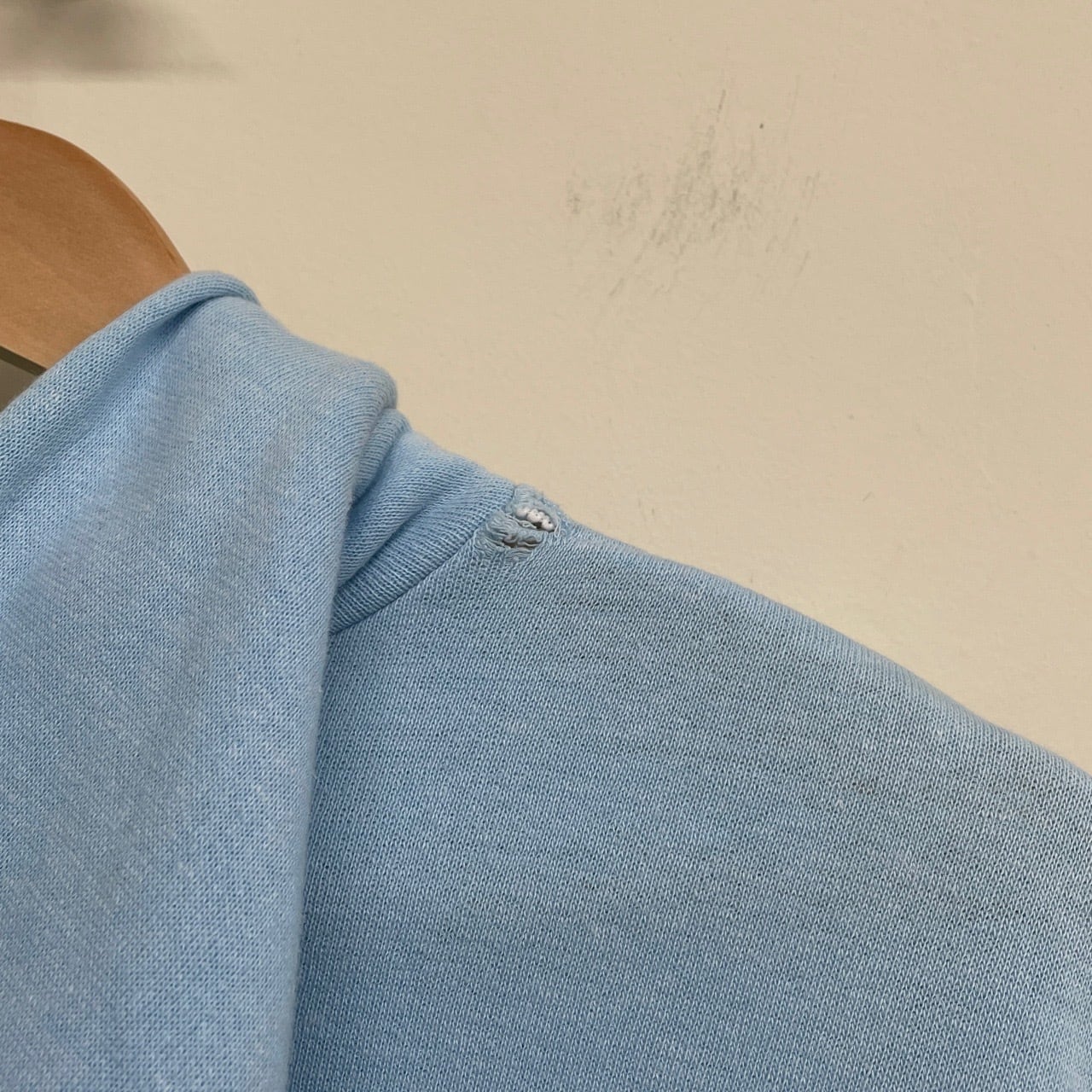 右袖リブにダメージ