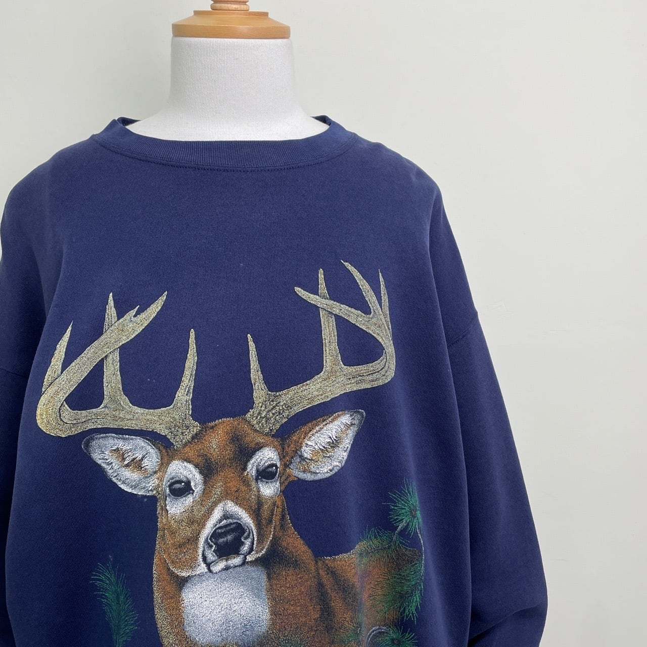 80s 90s USA製 鹿 シカ アニマルスウェット ヴィンテージ 古着 動物 アニマル スウェット アート 紺 ネイビー 80年代 90年代 ビンテージ XXL 26021010