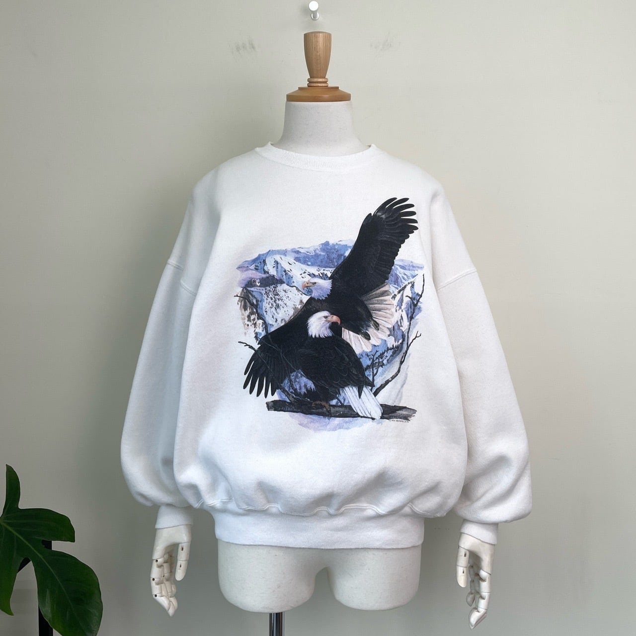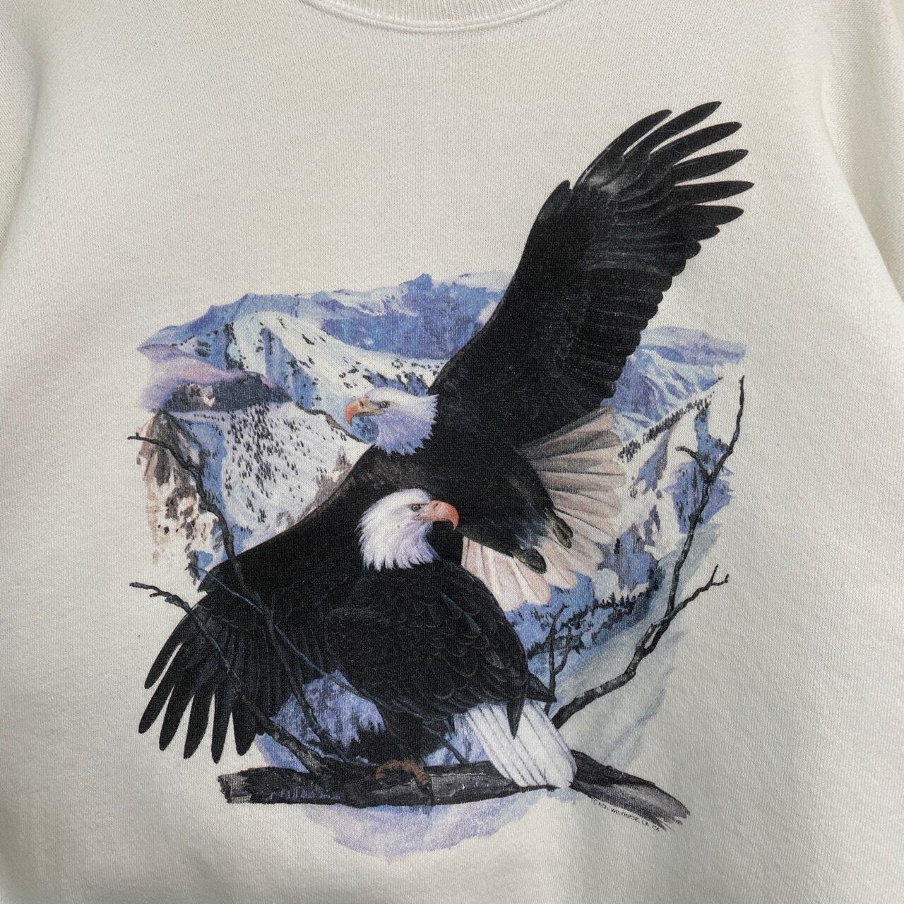 90s 白頭鷲 アニマルスウェット ヴィンテージ 古着 ハクトウワシ 鳥 動物 アニマル スウェット 白 ホワイト 90年代 ビンテージ 26021015