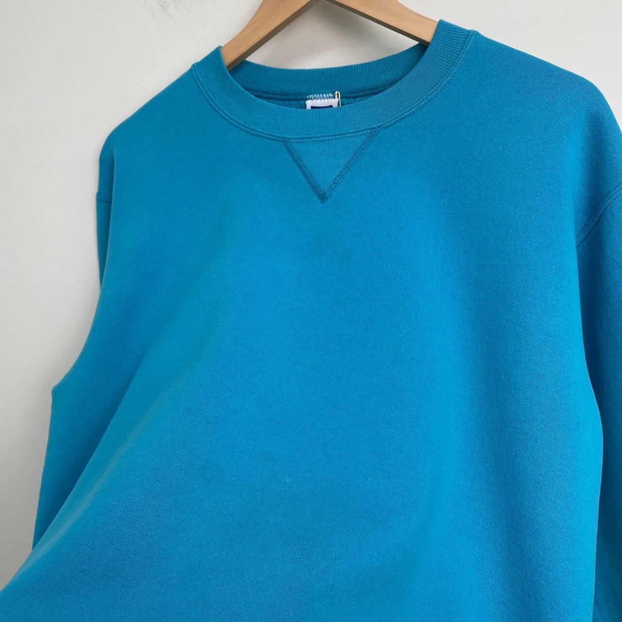 90s USA製 RUSSELL 前V ブランクスウェット レアカラー ヴィンテージ 古着 水色 ライトブルー 無地 ラッセル プレーン 90年代 ビンテージ M 26021101