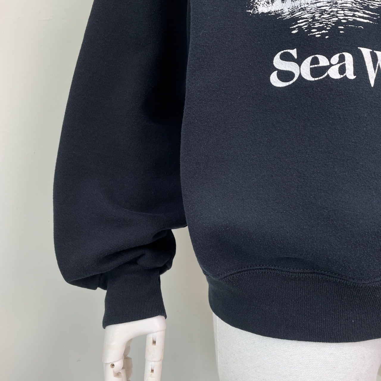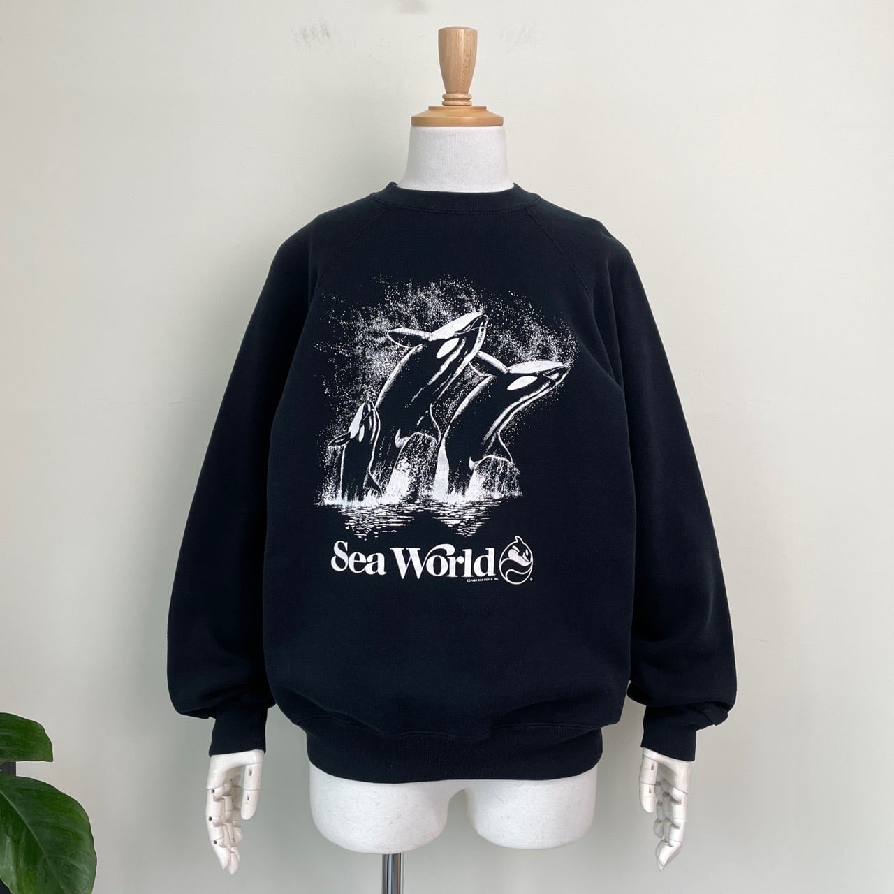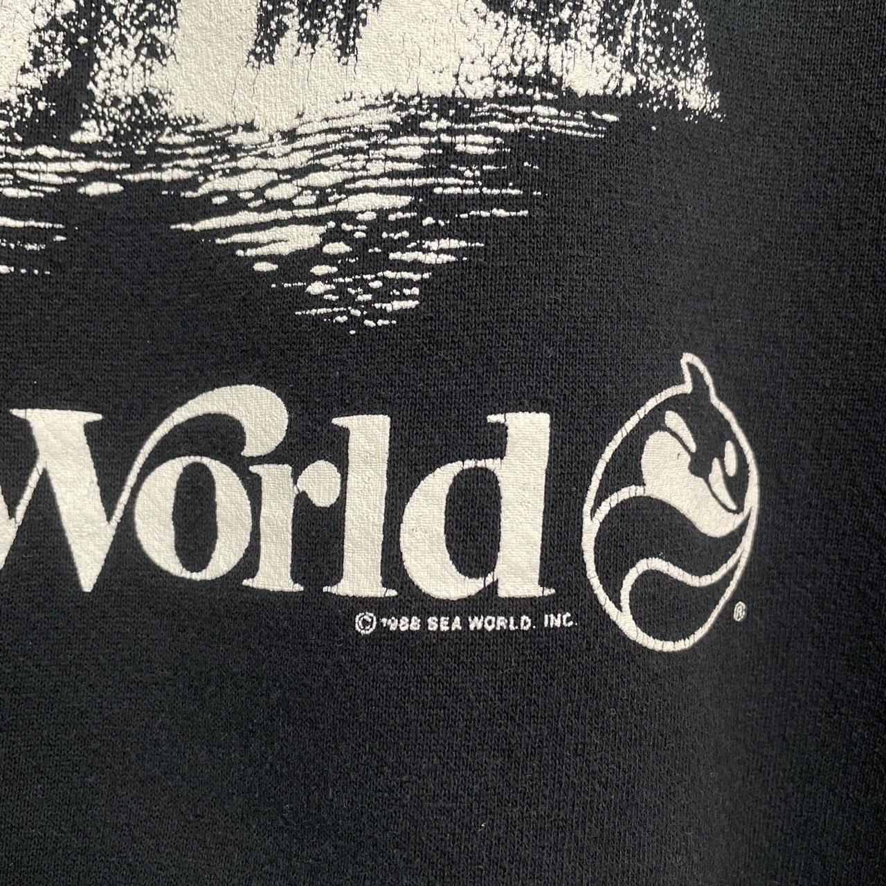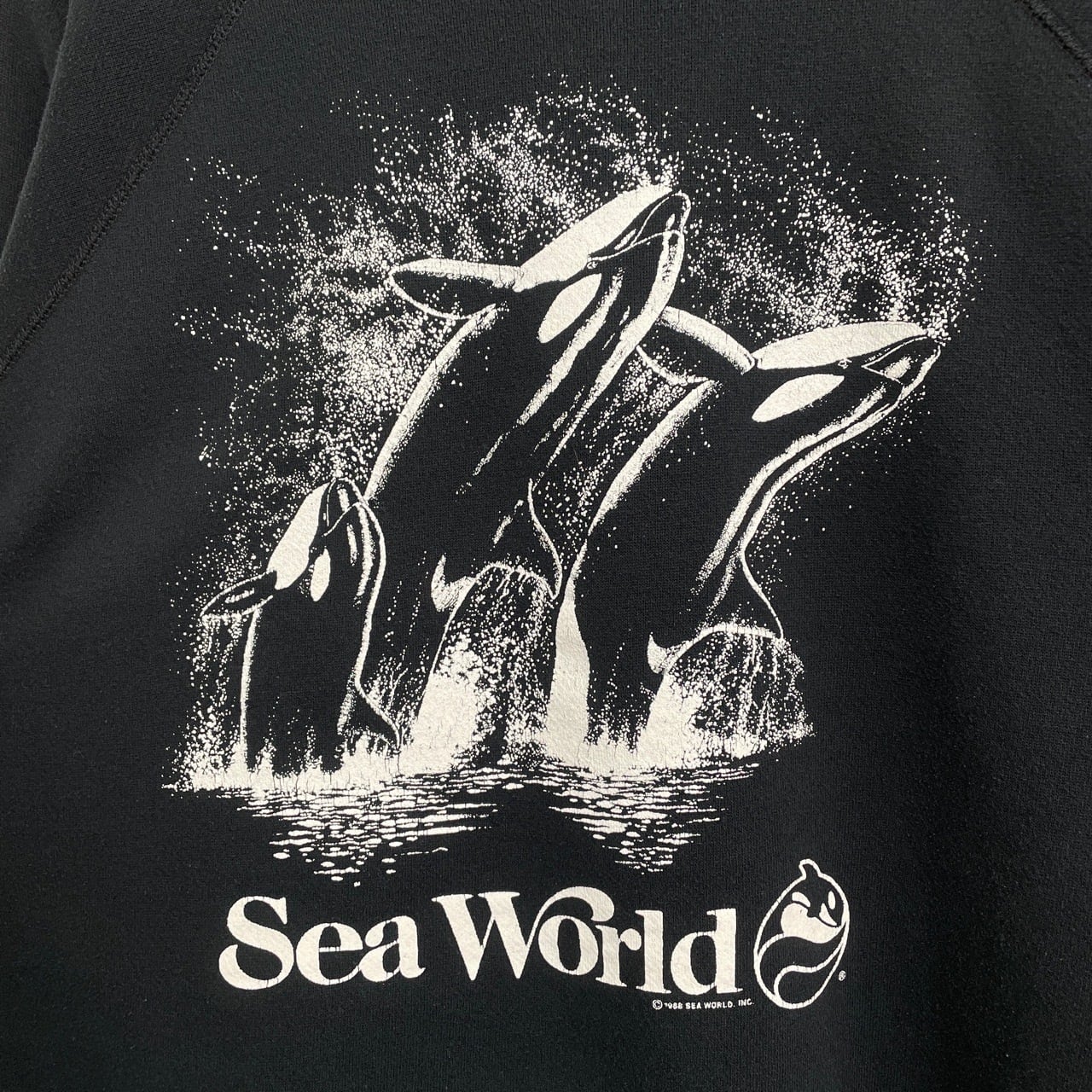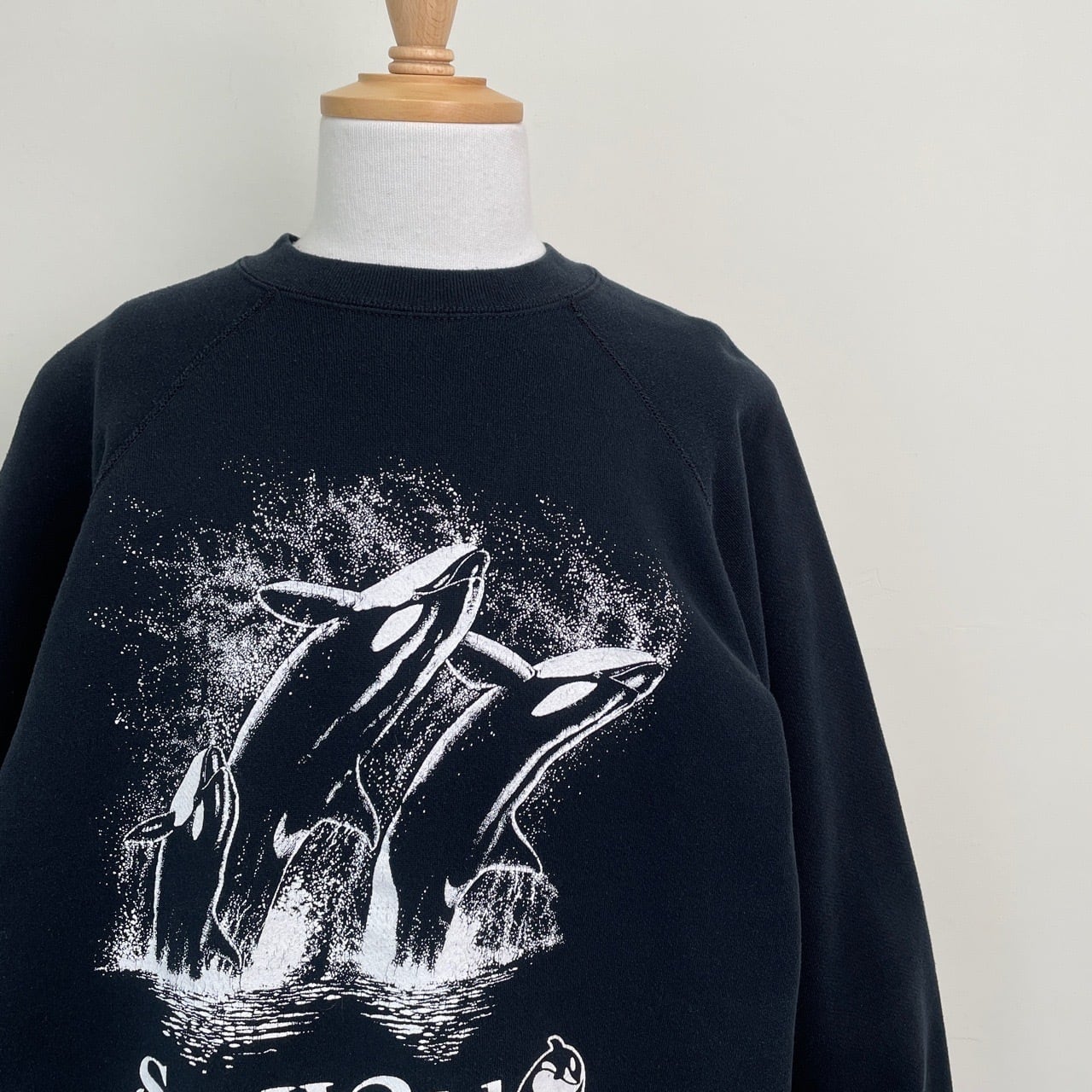 90s USA製 シャチ アニマルスウェット ヴィンテージ 古着 黒 ブラック 魚 水族館 Sea World 動物 アニマル スウェット 90年代 ビンテージ XL 26021112