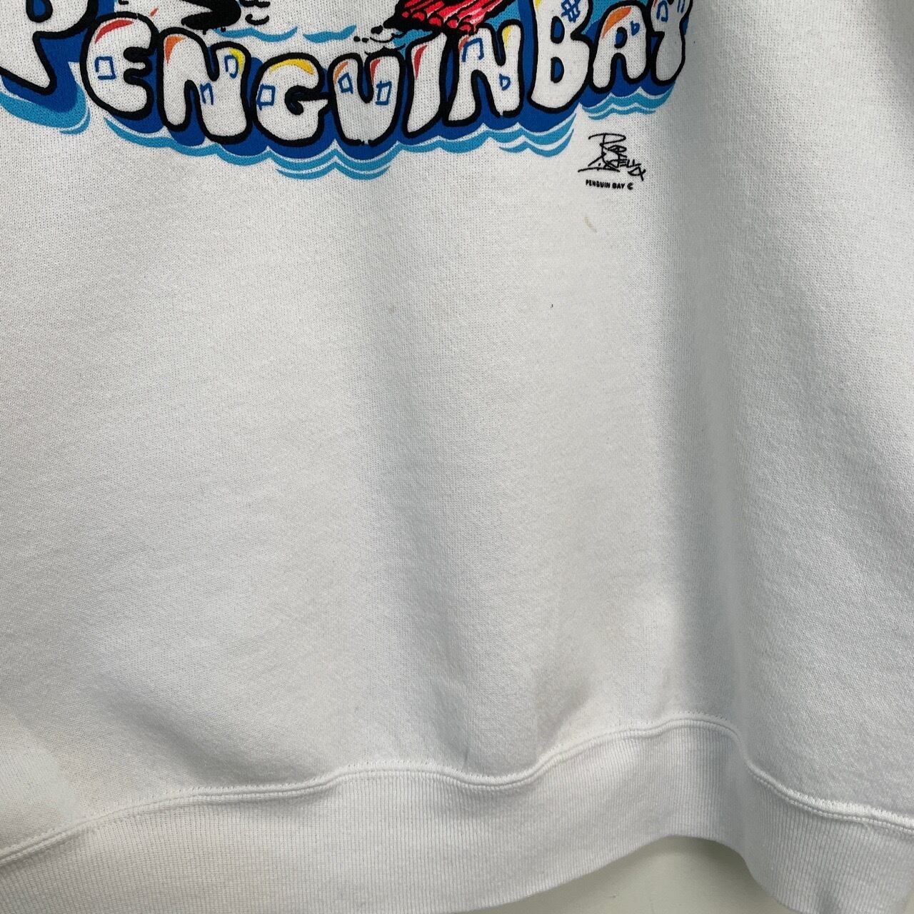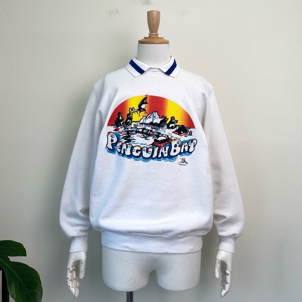 80s 90s USA製 PENGUIN BAY ペンギン 襟付き スウェット ヴィンテージ 古着 アニマルスウェット 動物 白 ホワイト 80年代 90年代 ビンテージ アニマル L 26021604
