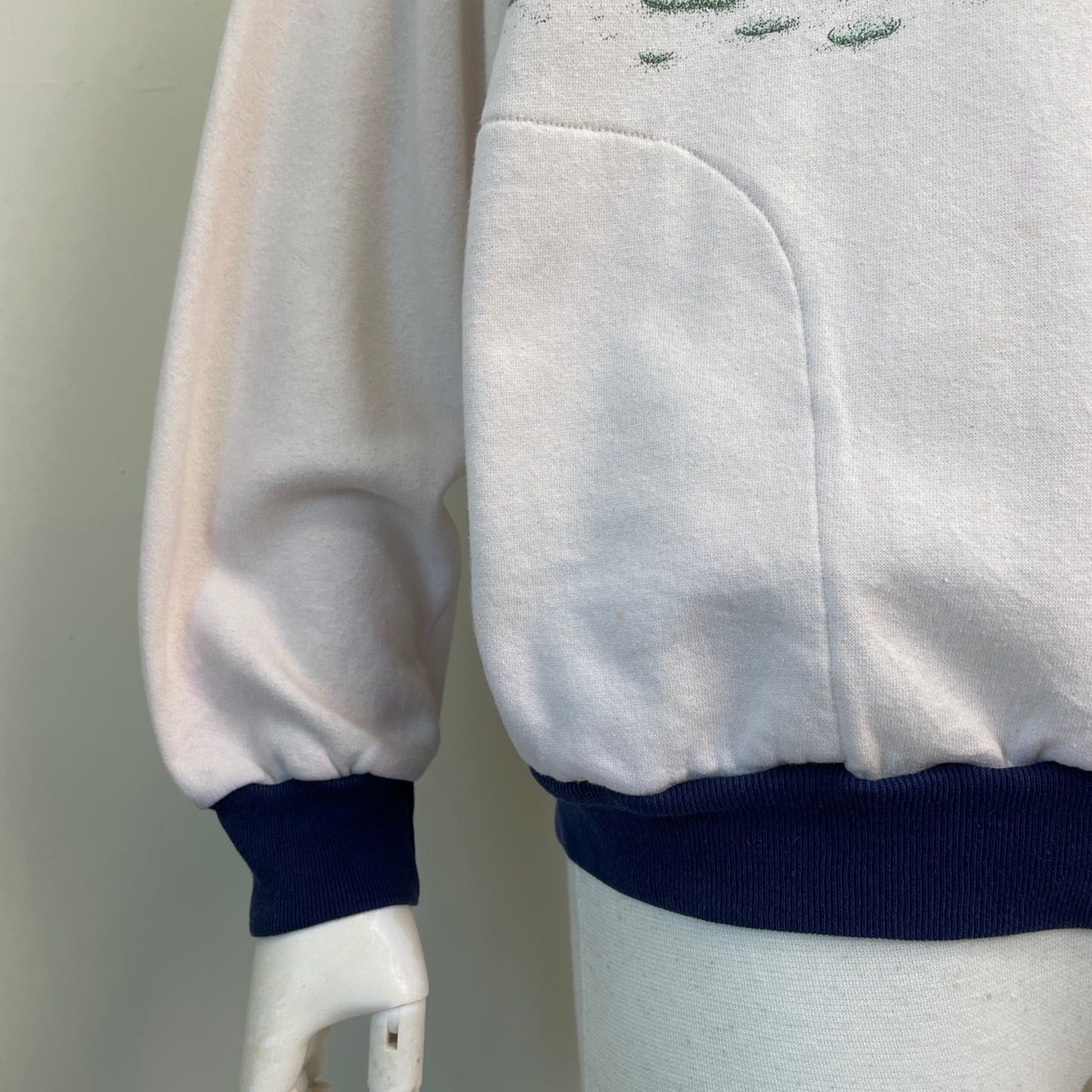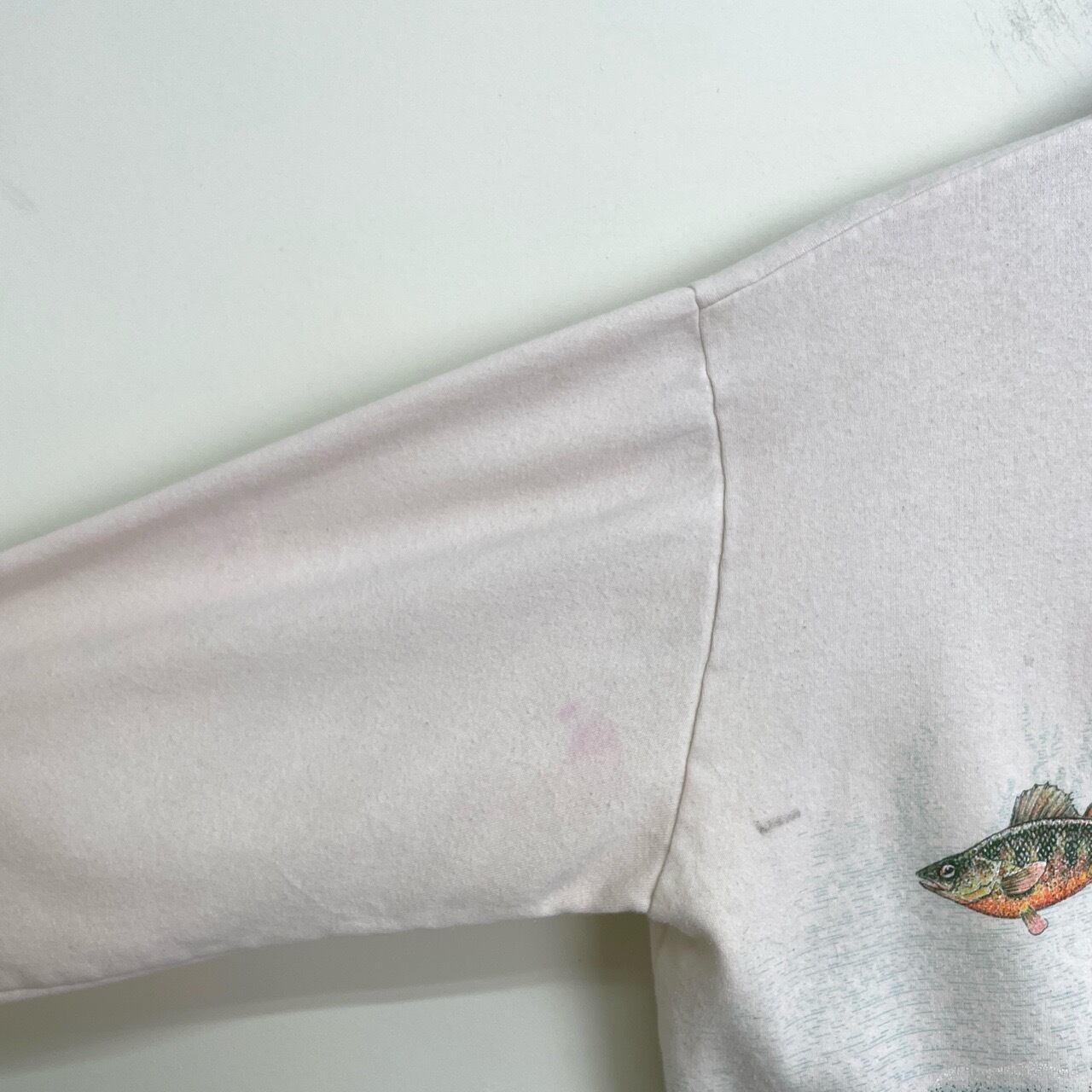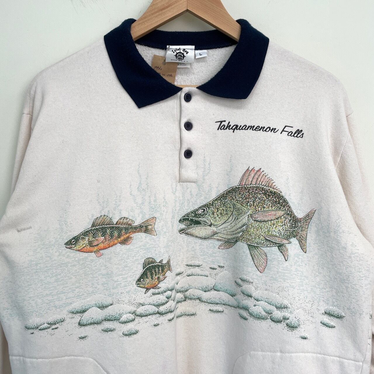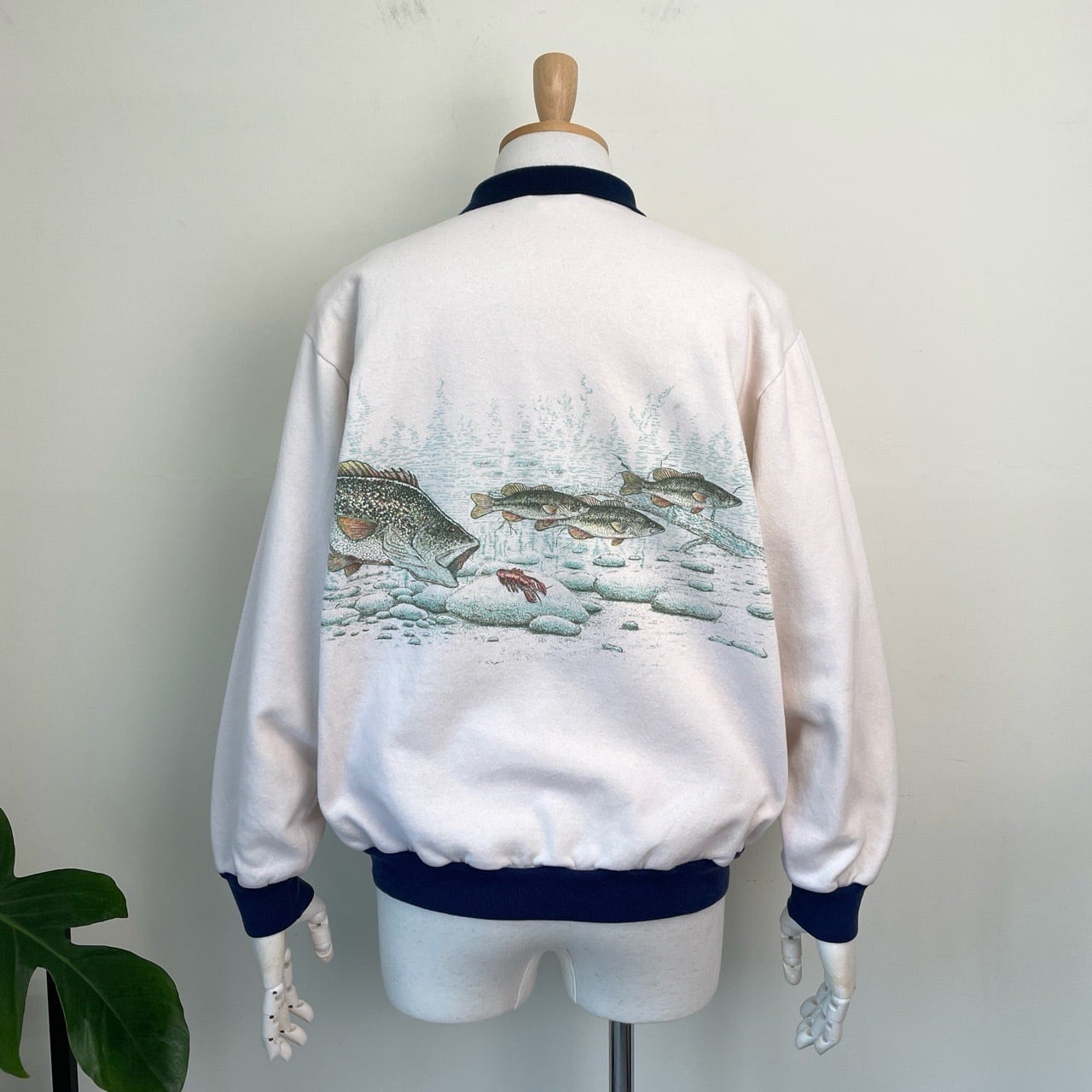 90s 魚 ポロカラー 襟付き スウェット ヴィンテージ 古着 白 ホワイト 動物 アニマルスウェット 90年代 ビンテージ L 26021605