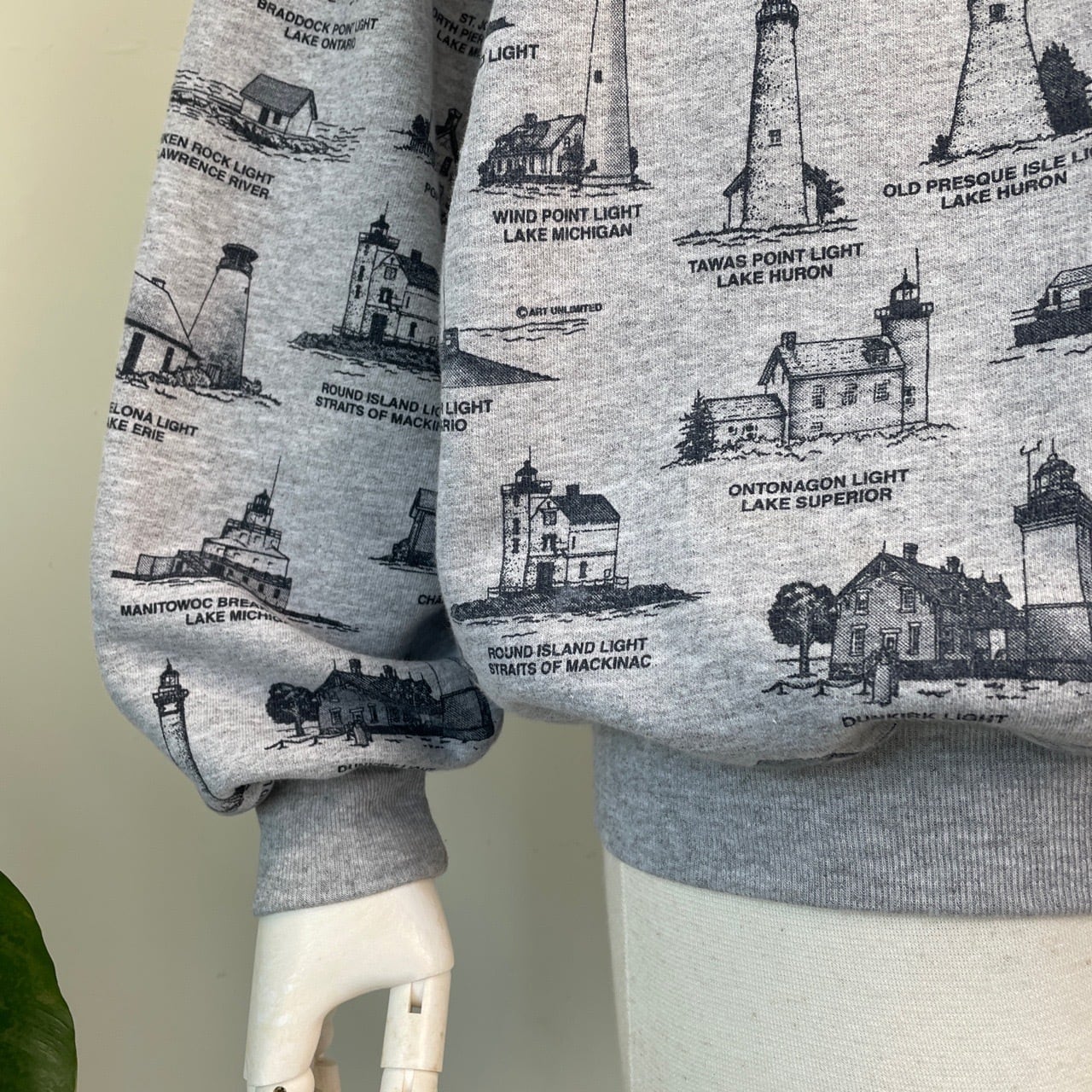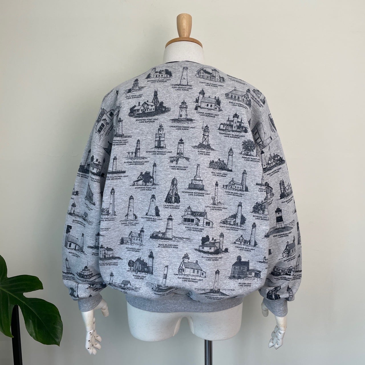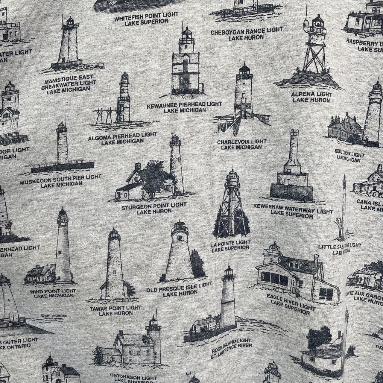 90s USA製 Art Unlimited 灯台 総柄 スウェット ヴィンテージ 古着 グレー 90年代 ビンテージ XL 26021628