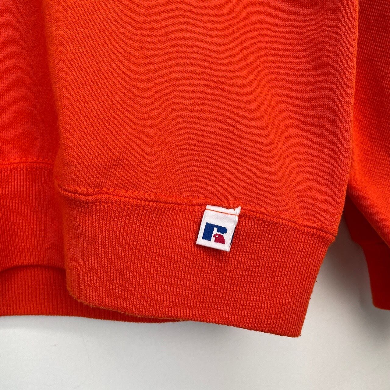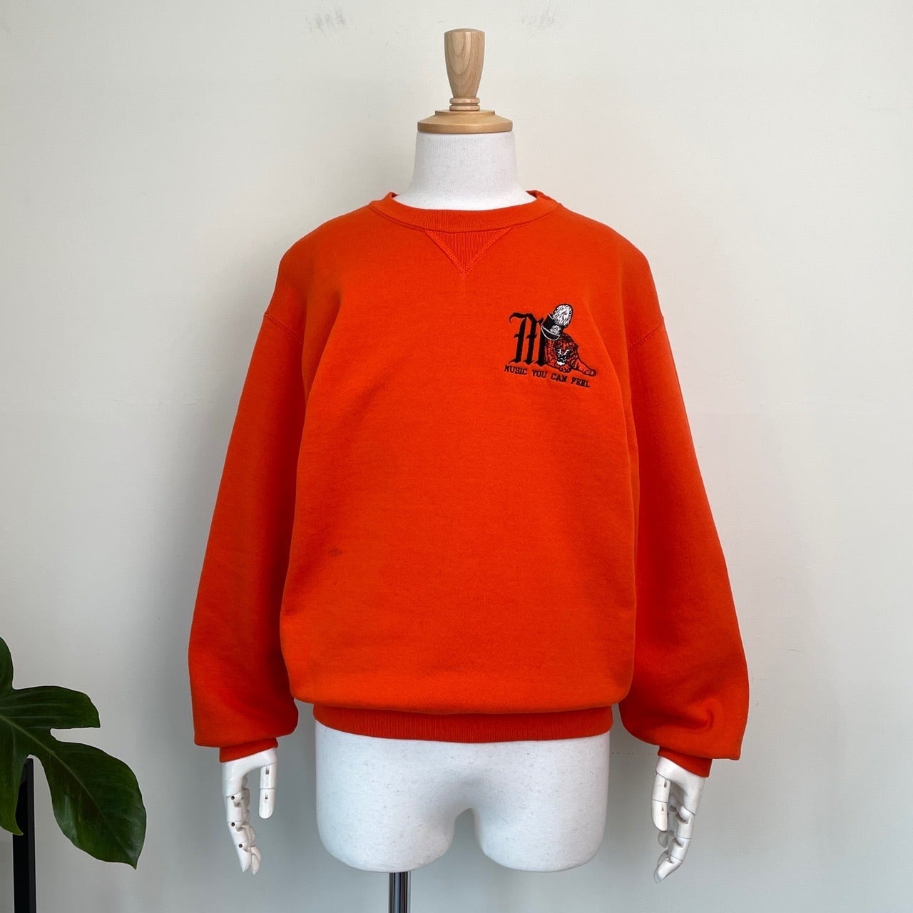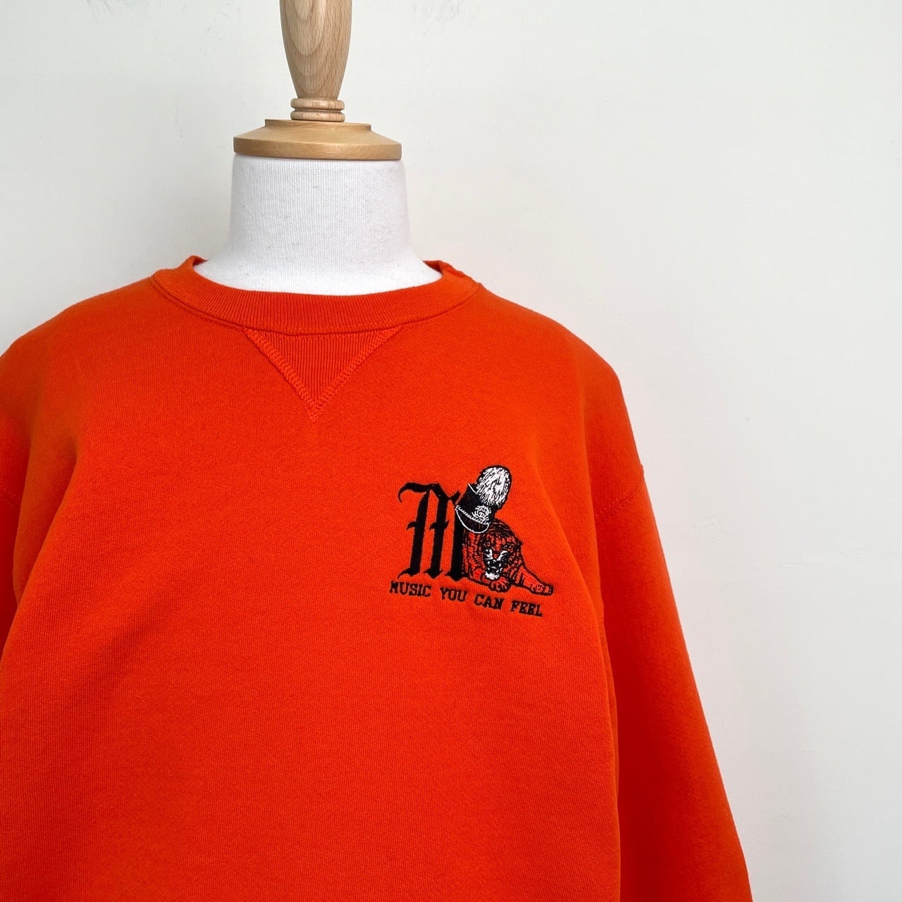 90s RUSSELL 前V 虎 カレッジロゴ刺繍 スウェット オレンジ ラッセル ヴィンテージ 古着 トラ 動物 アニマル ワンポイント 橙 90年代 ビンテージ M マーチングバンド 音楽 26021630