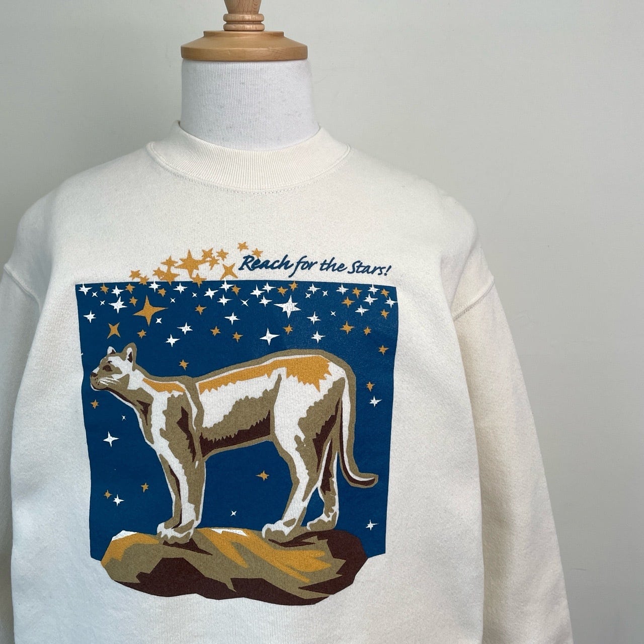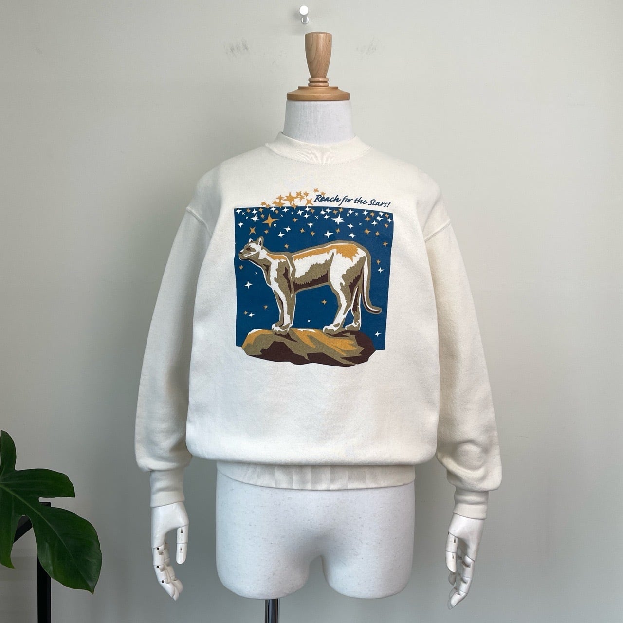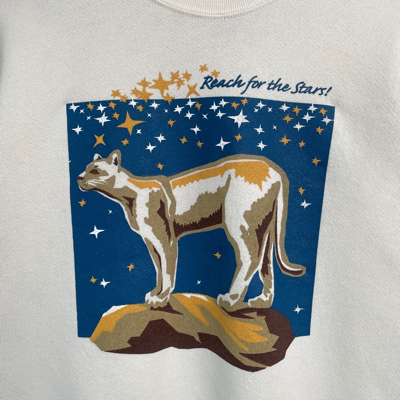 90s 00s クーガー アート スウェット ヴィンテージ 古着 アニマル 動物 アイボリー 生成り アニマルスウェット 90年代 ビンテージ M 26021633