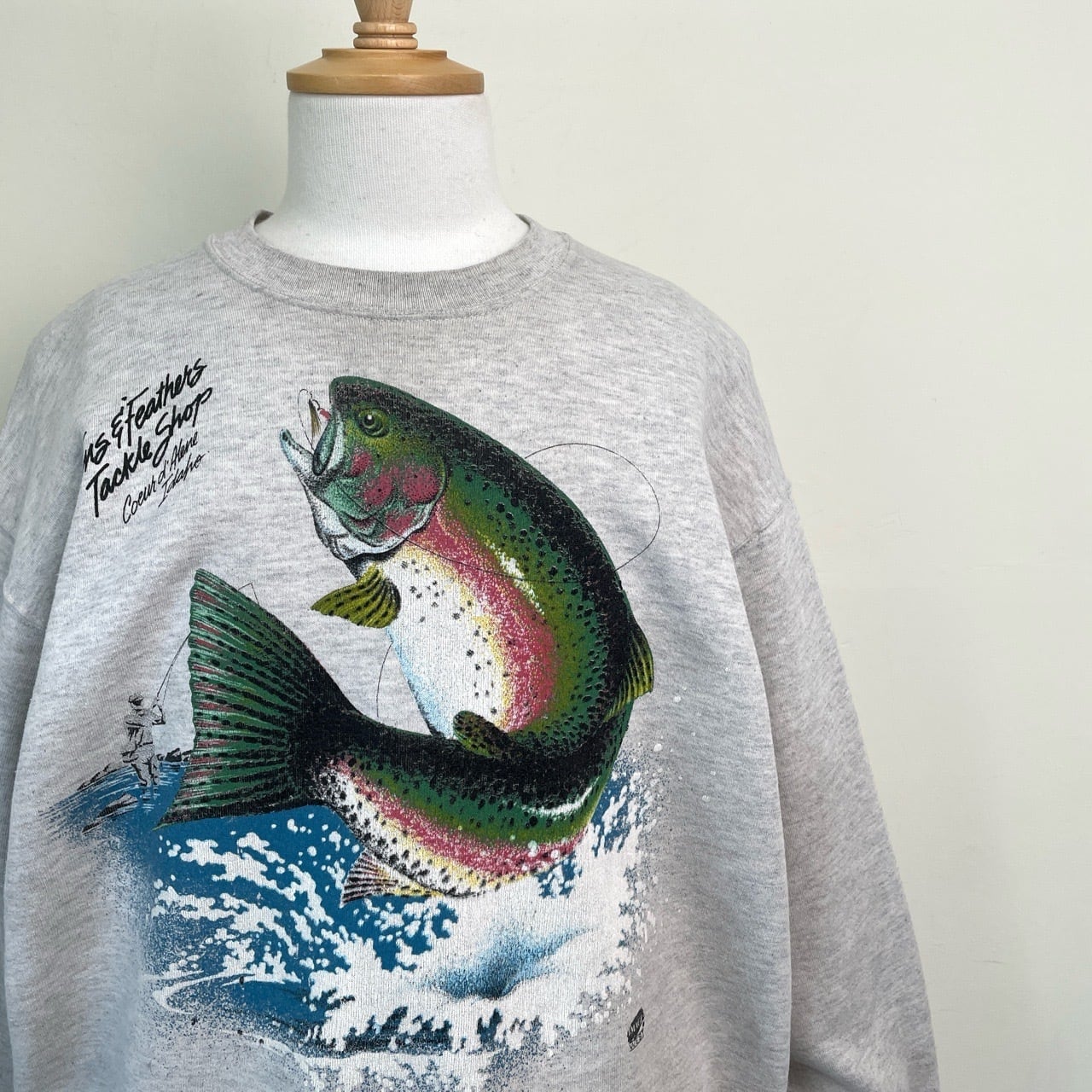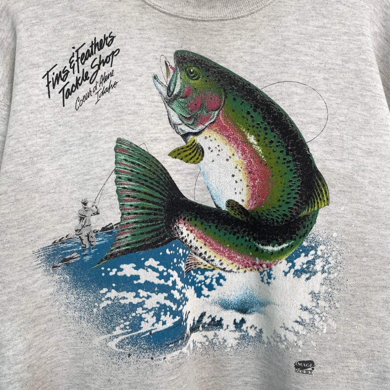 90s USA製 魚 フィッシング アート スウェット ヴィンテージ 古着 釣り ニジマス グレー 90年代 ビンテージ XL 26021634