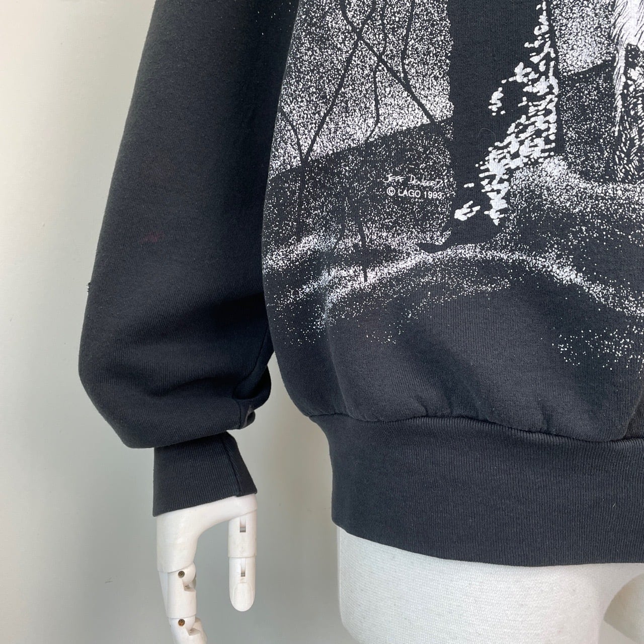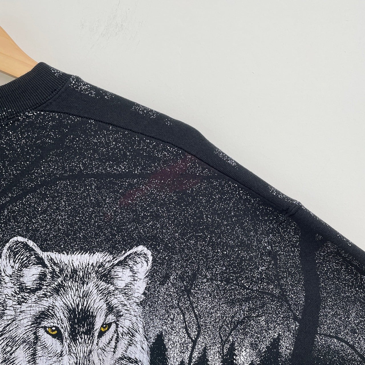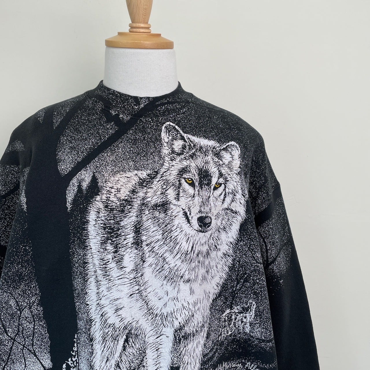 90s カナダ製 オオカミ アニマルスウェット 黒 ブラック ヴィンテージ 古着 狼 ウルフ 動物 アート オールオーバープリント アニマルスウェット 90年代 ビンテージ XL 26021636