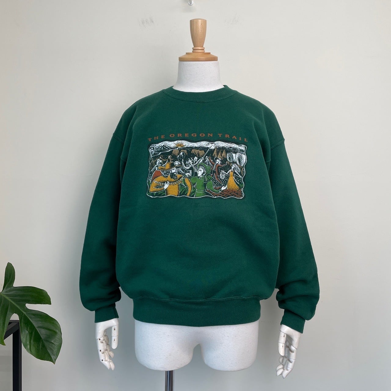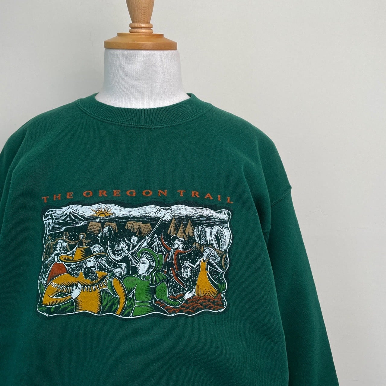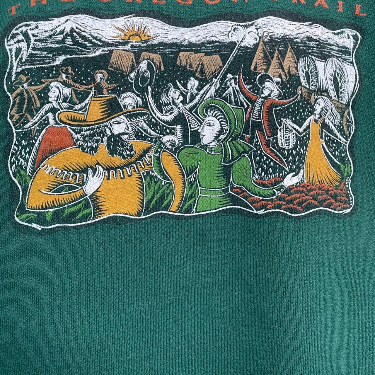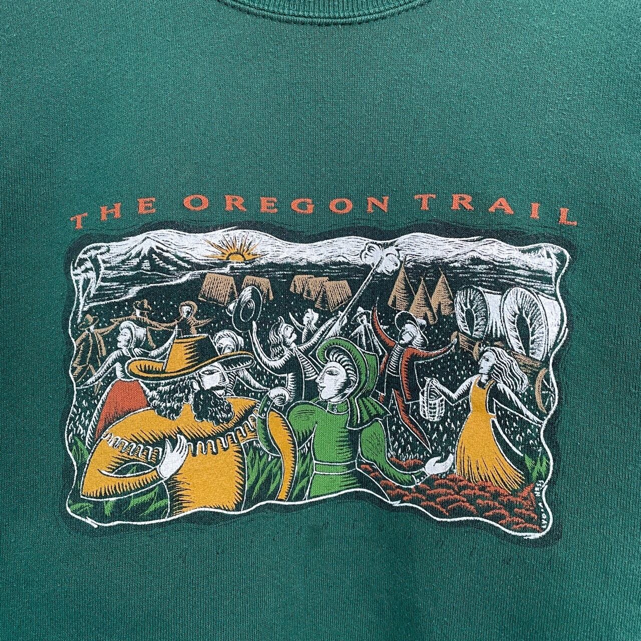90s USA製 THE OREGON TRAIL ゲーム アート スウェット ヴィンテージ 古着 オレゴントレイル 西武開拓時代 ウエスタン レトロ 緑 グリーン 90年代 ビンテージ L 26022101