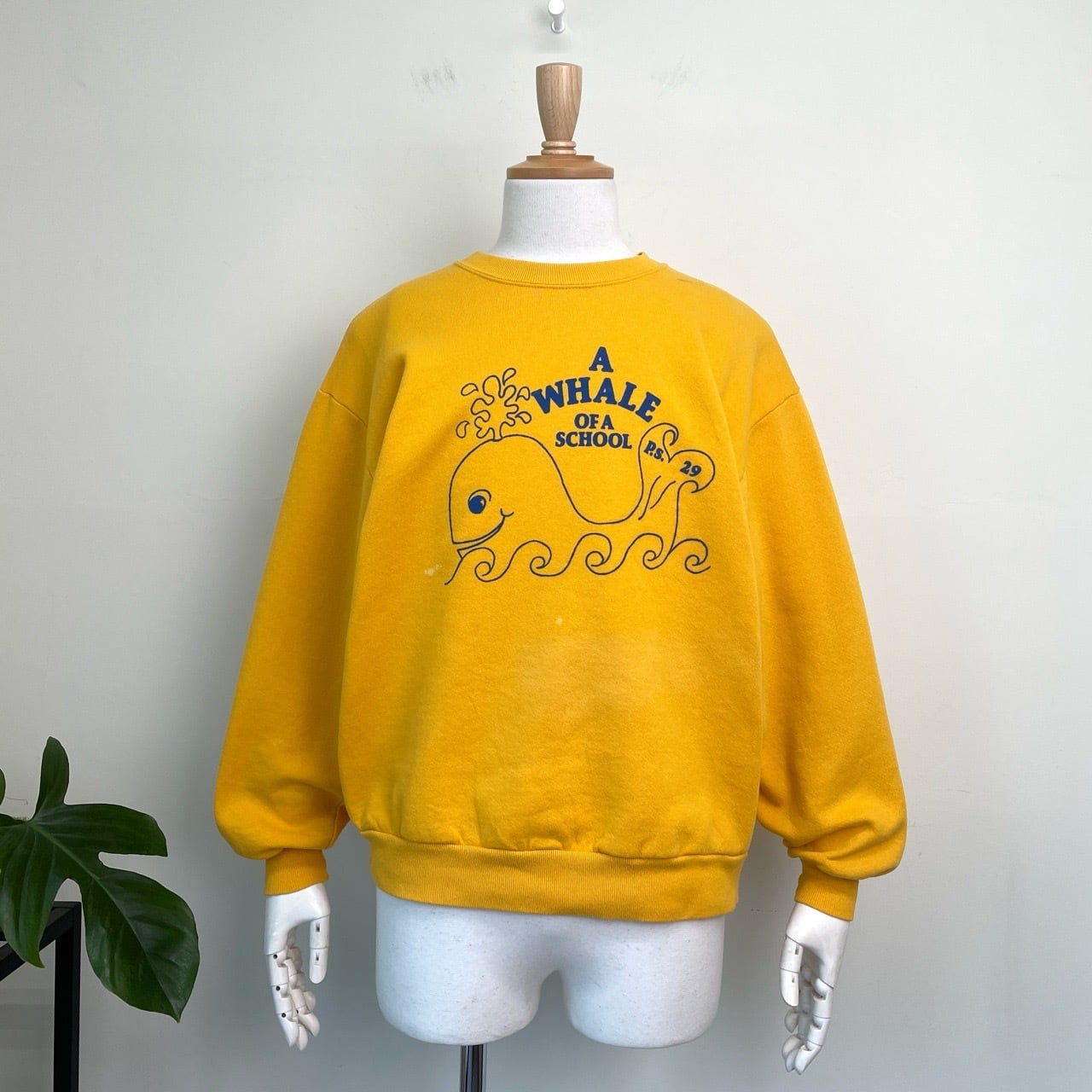 90s USA製 クジラ 鯨 アニマルスウェット ヴィンテージ 古着 黄色 イエロー 動物 魚 アニマル スウェット 90年代 ビンテージ L 26022104