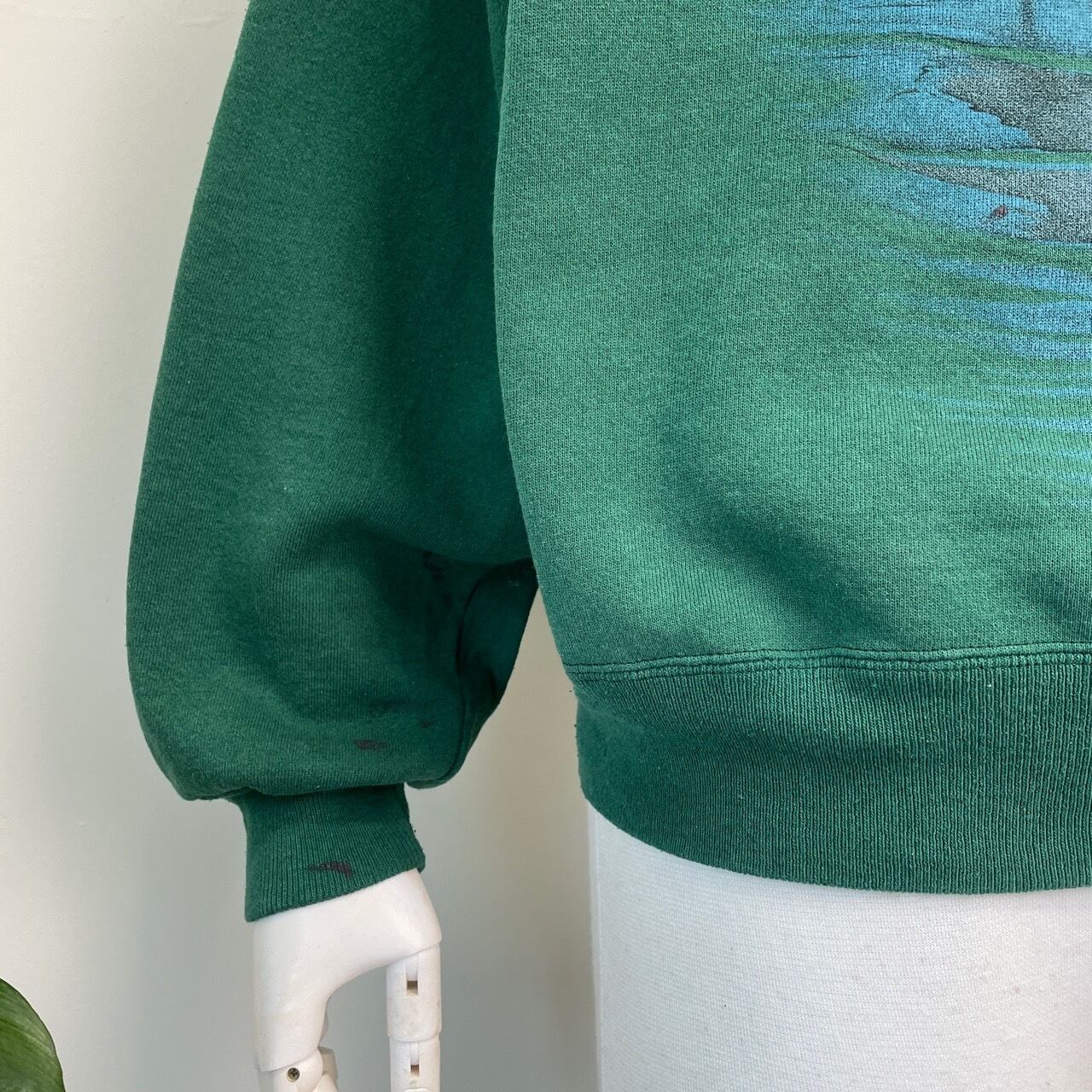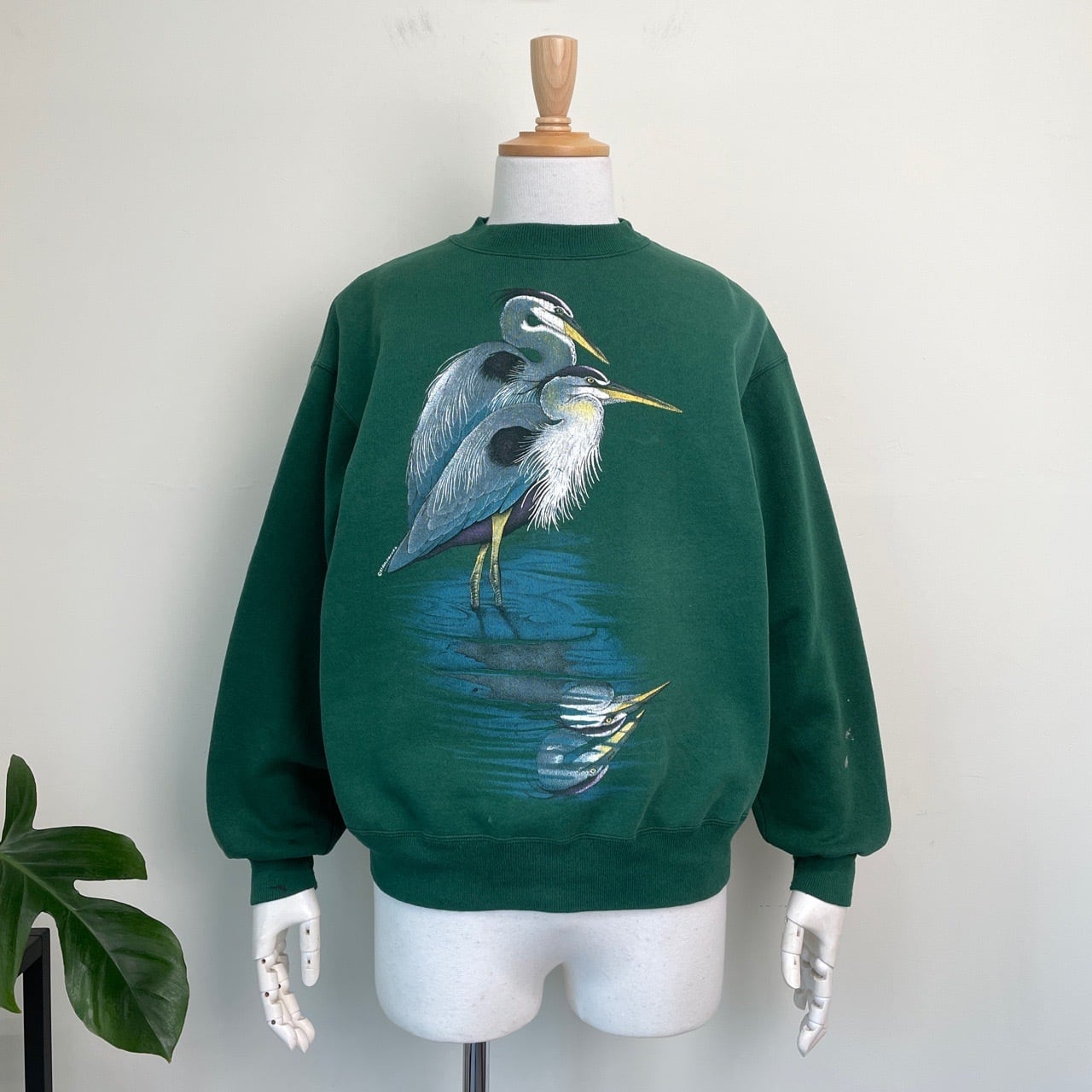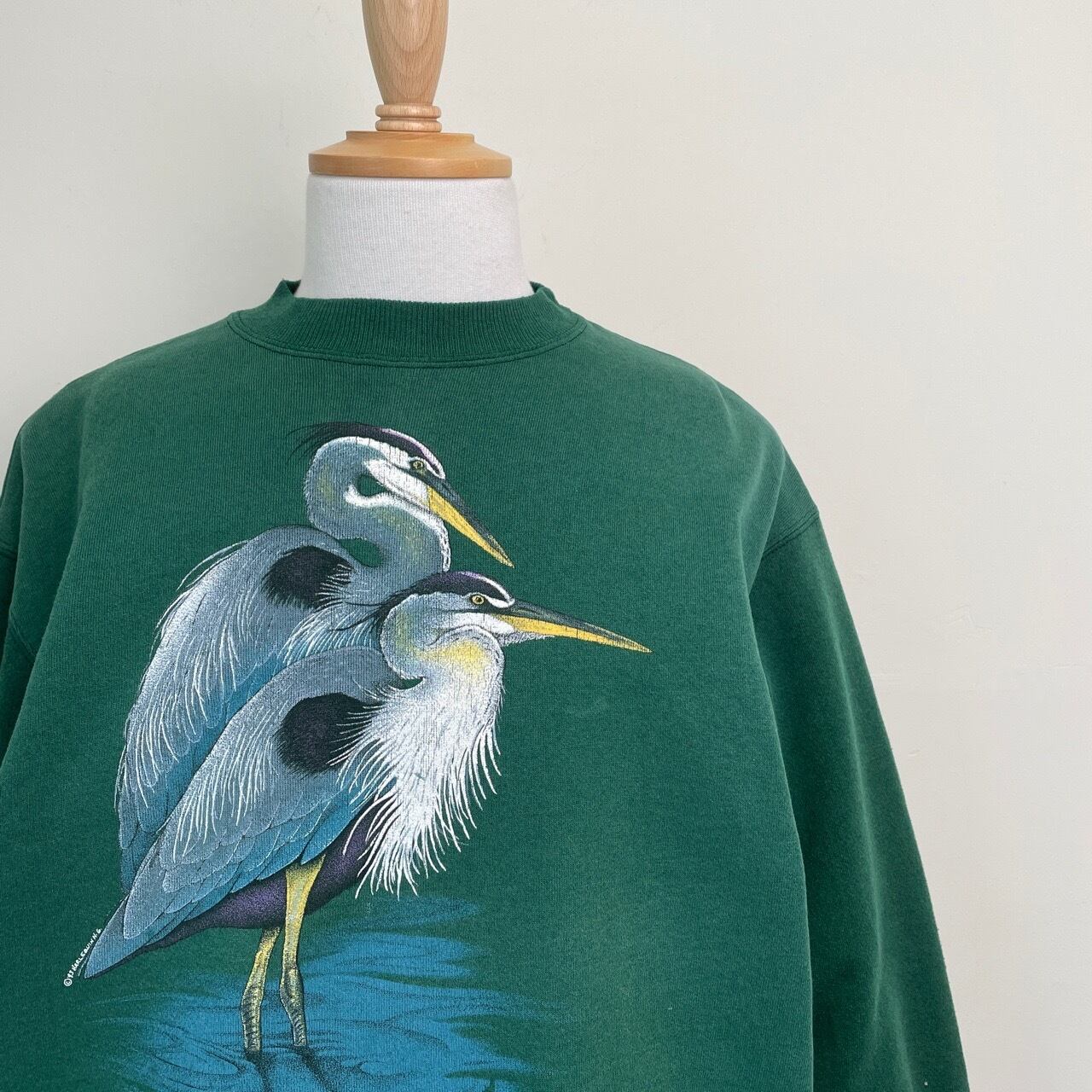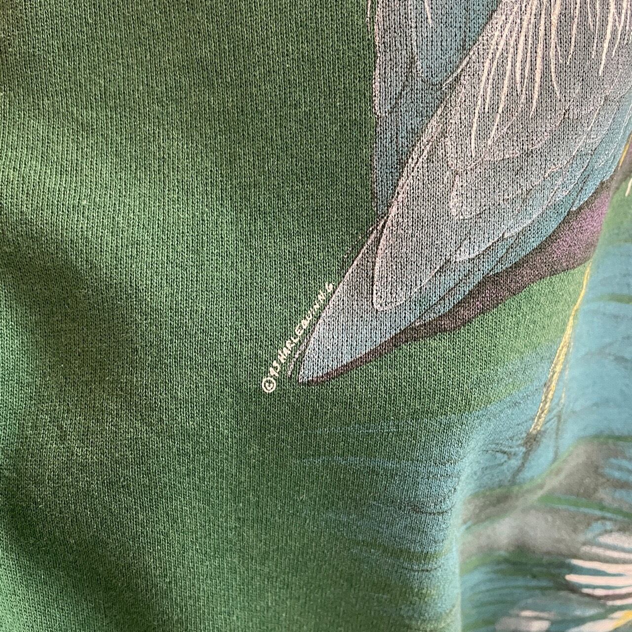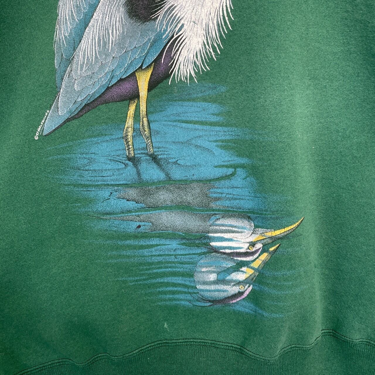 90s HARLEQUIN アオサギ 鳥 アート スウェット ヴィンテージ 古着 緑 グリーン 動物 アニマル アニマルスウェット 90年代 ビンテージ L 26022106