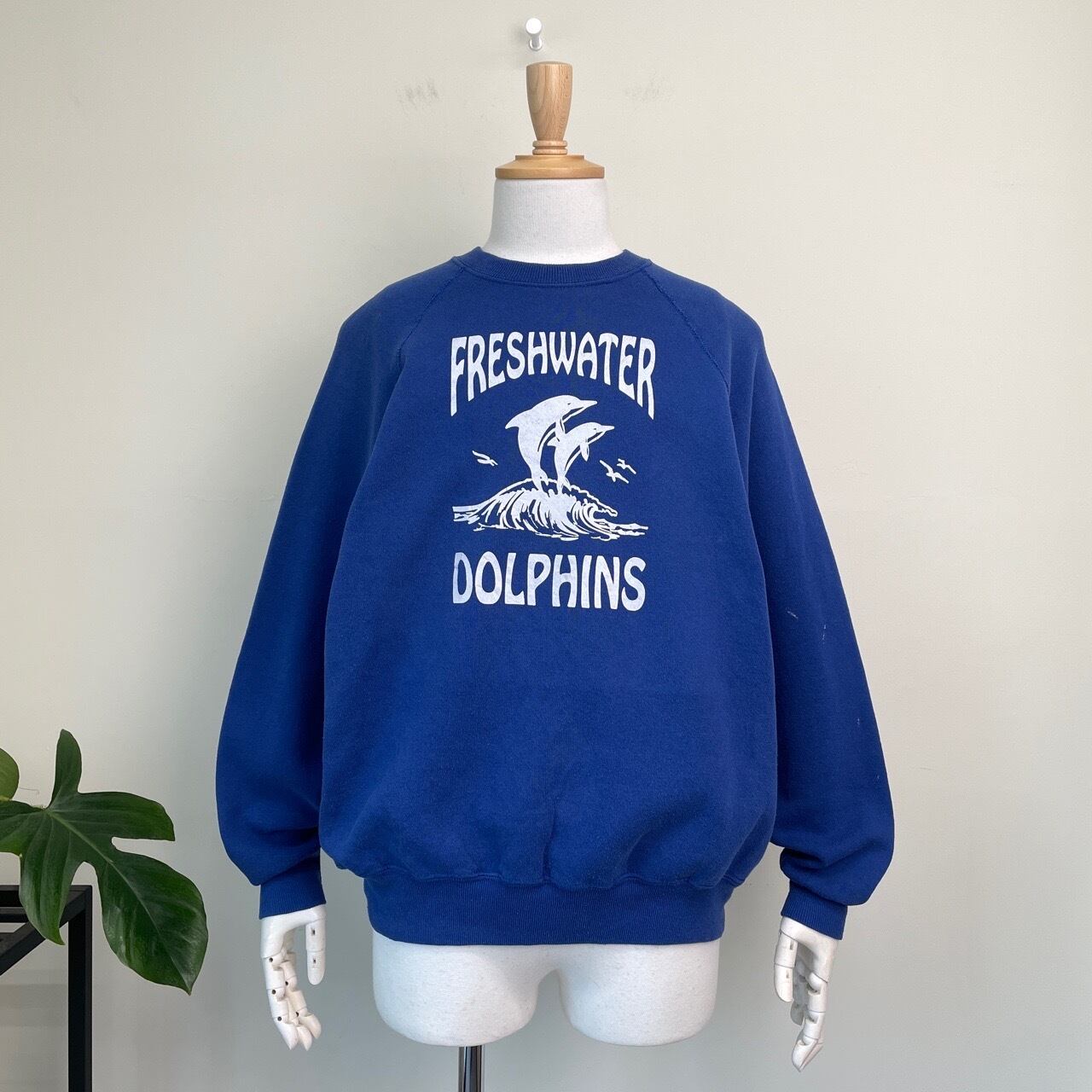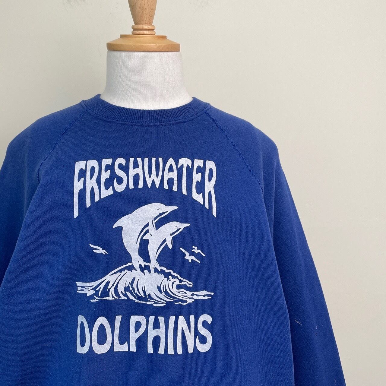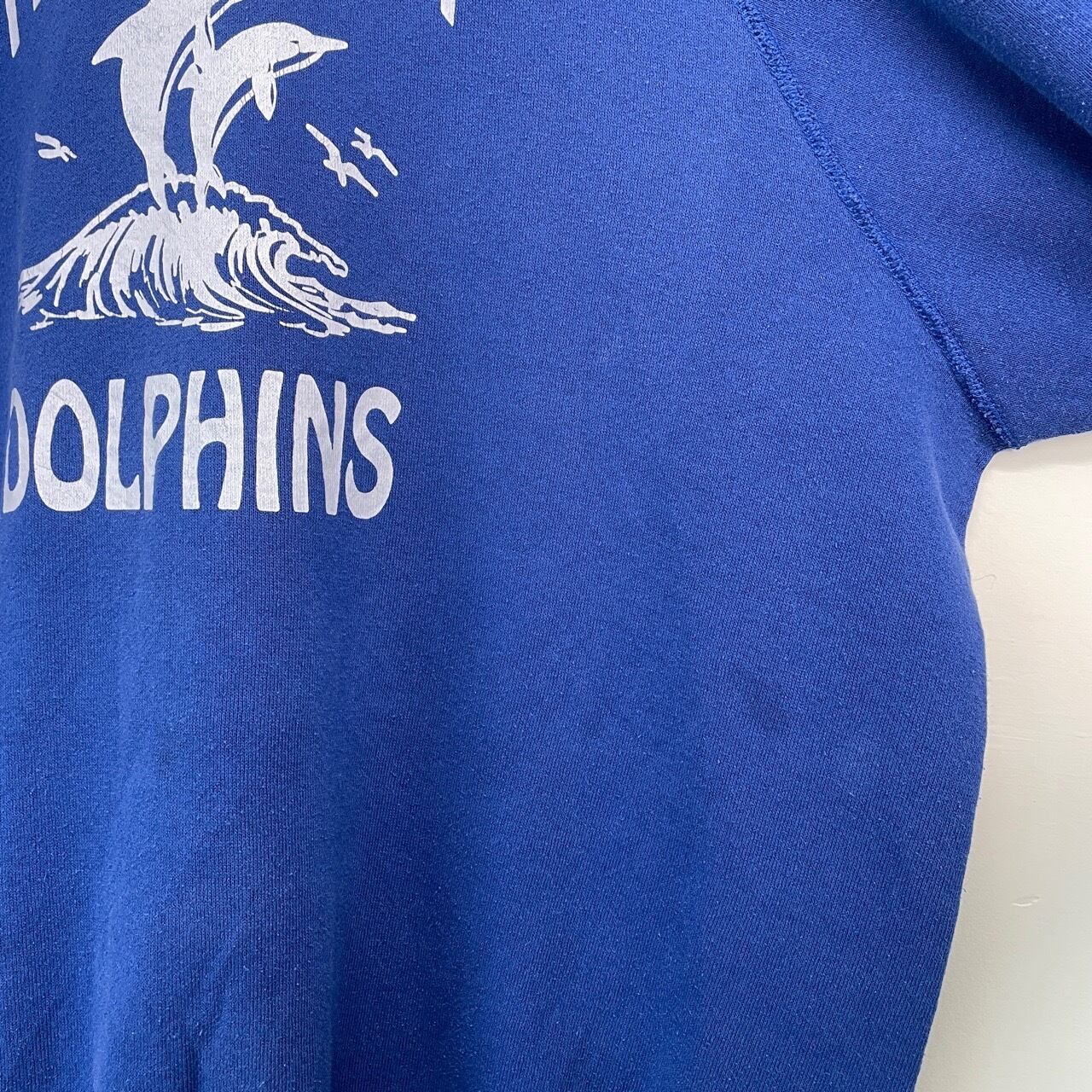 90s USA製 イルカ ドルフィン スウェット ヴィンテージ 古着 青 ブルー 青紫 動物 アニマル チームロゴ カレッジ 90年代 ビンテージ XL 26022107