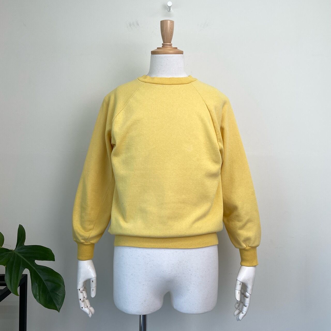 70s 80s 脇ガゼット 無地 ブランクスウェット 黄色 イエロー ヴィンテージ 古着 ラグラン 70年代 80年代 ビンテージ 26022701