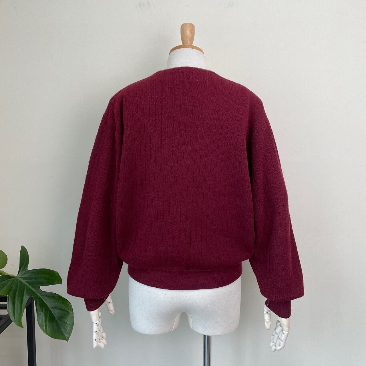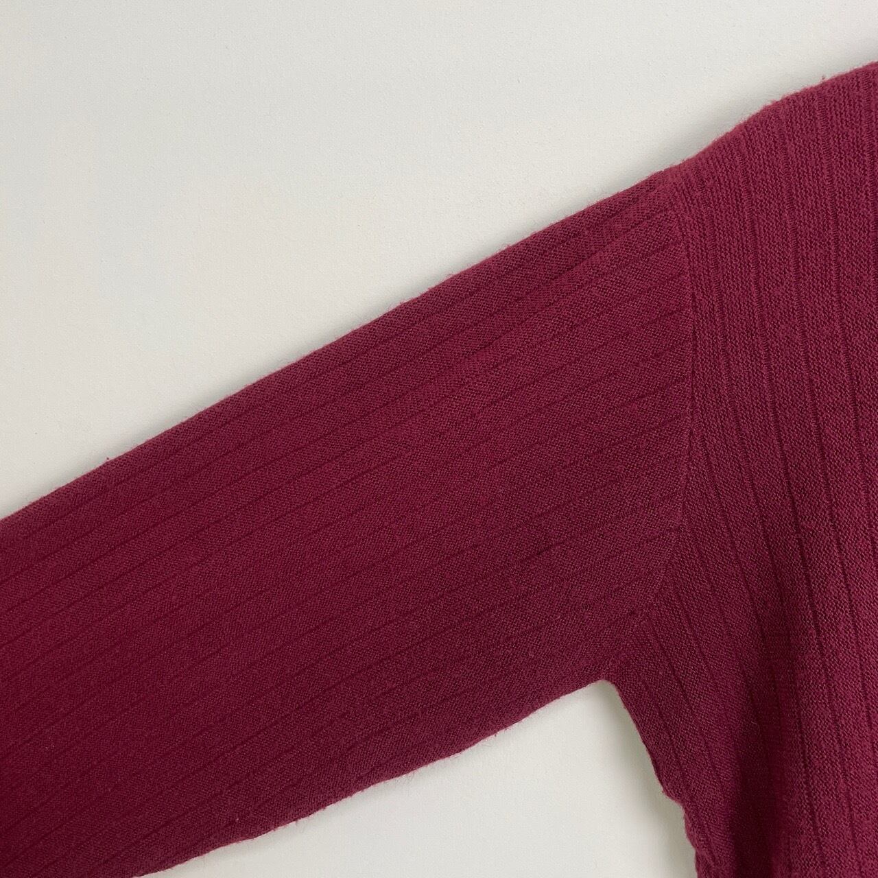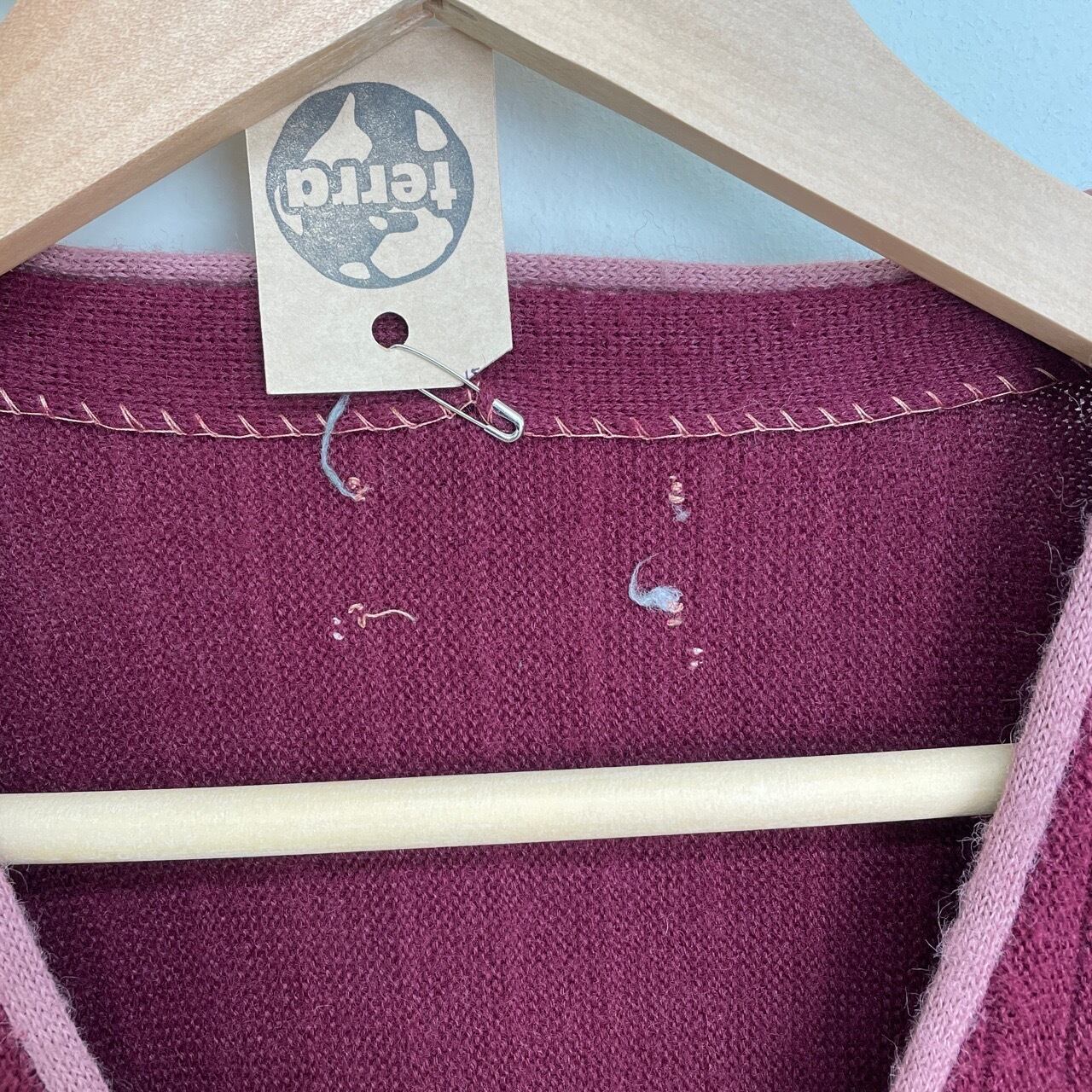 70s リブ編み ツートン アクリルカーディガン ヴィンテージ 古着 ニット 小豆色 バーガンディ マルーン ボルドー ワインレッド えんじ 70年代 ビンテージ 26030103