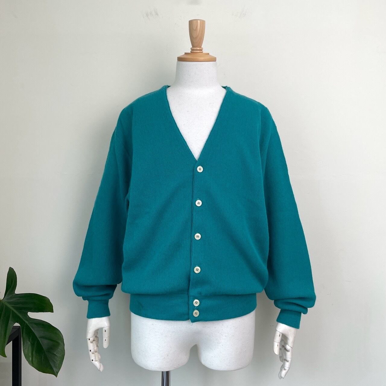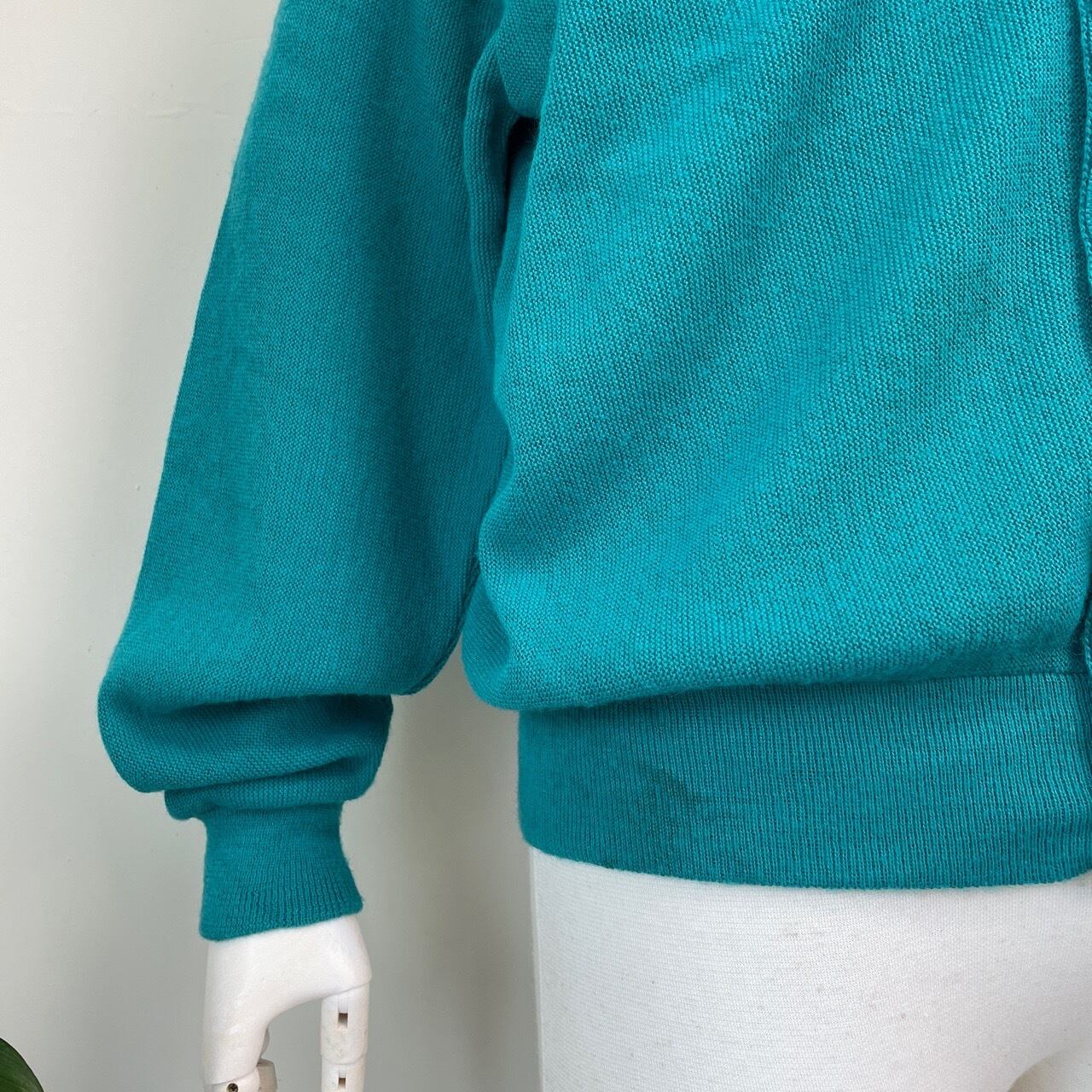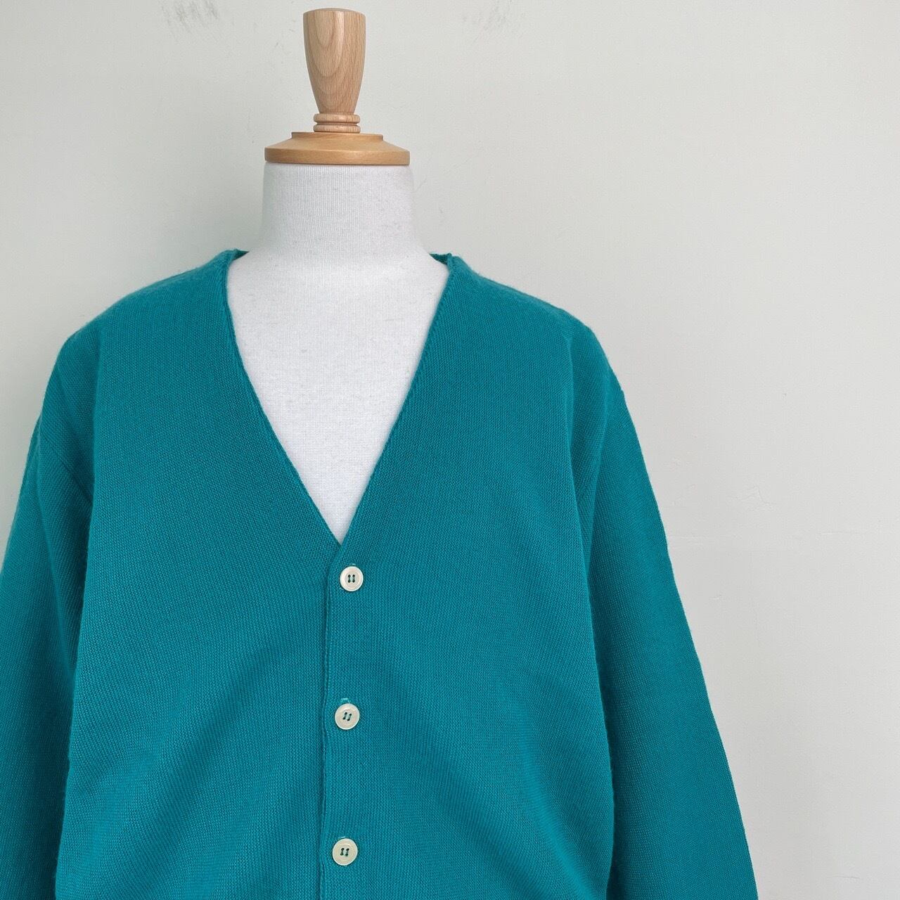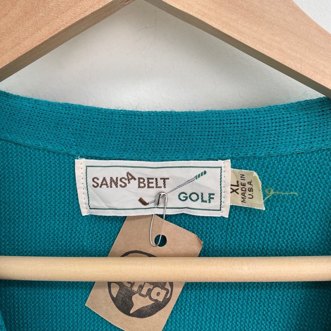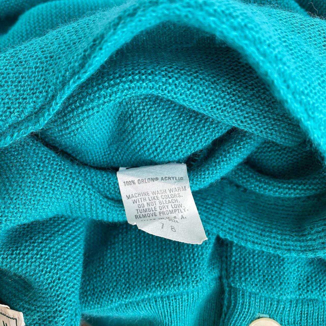 70s 80s USA製 SANSA BELT アクリルカーディガン ターコイズ ヴィンテージ 古着 ニット 無地 70年代 80年代 ビンテージ XL 26030104