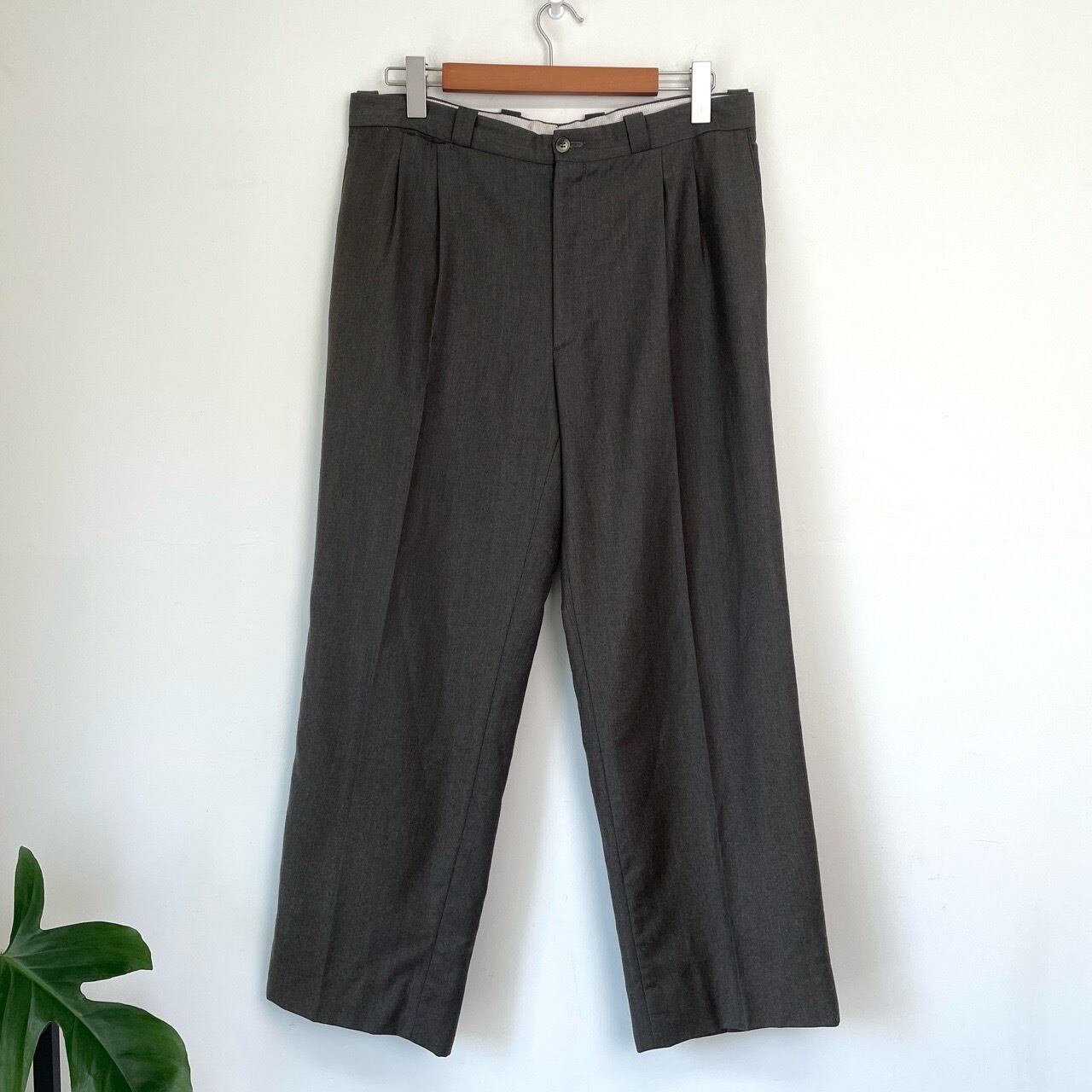 90s スペイン製 ツータック ウール スラックス 玉虫 ヴィンテージ 古着 茶 ブラウン ユーロ ワイド 2タック 90年代 ビンテージ W34 26030112