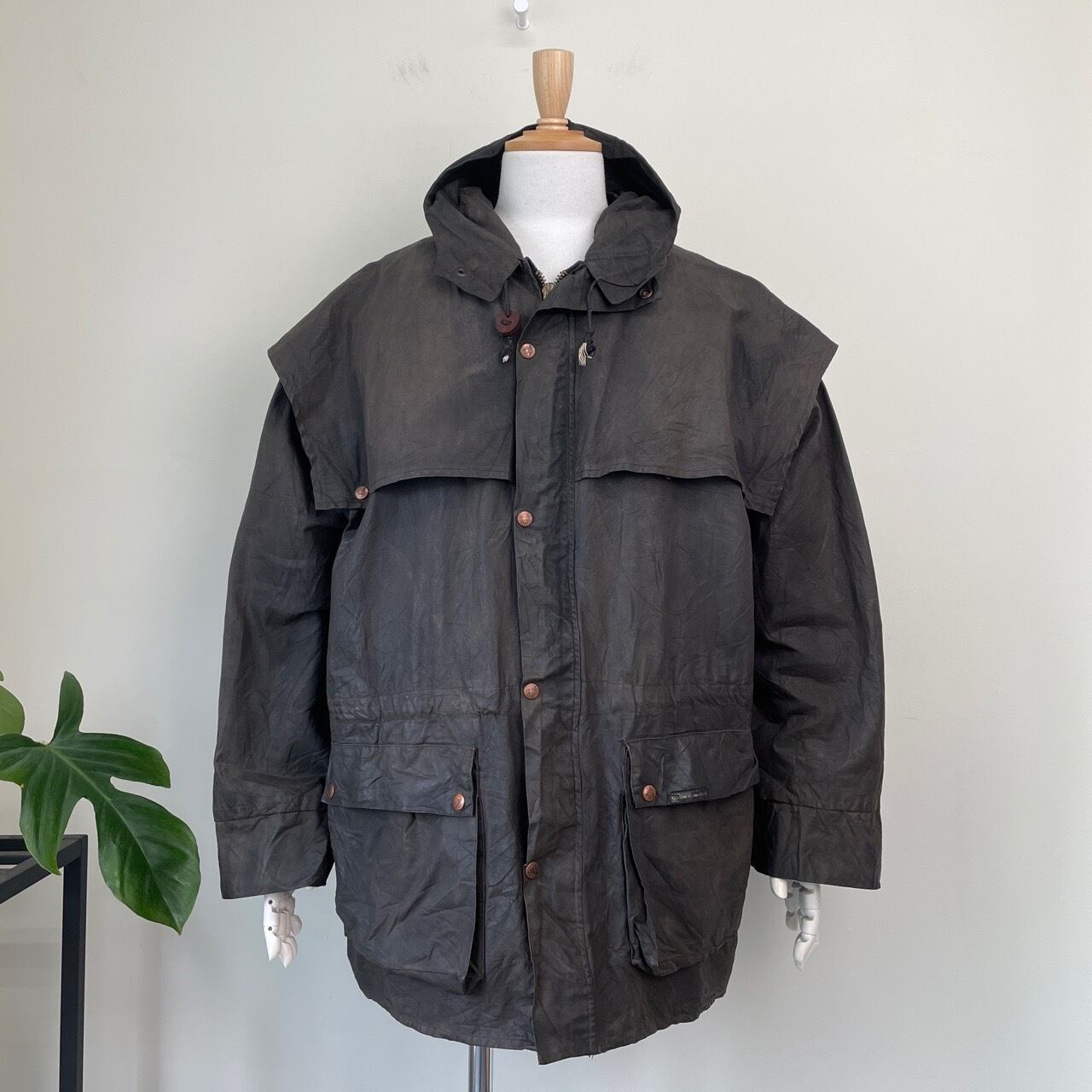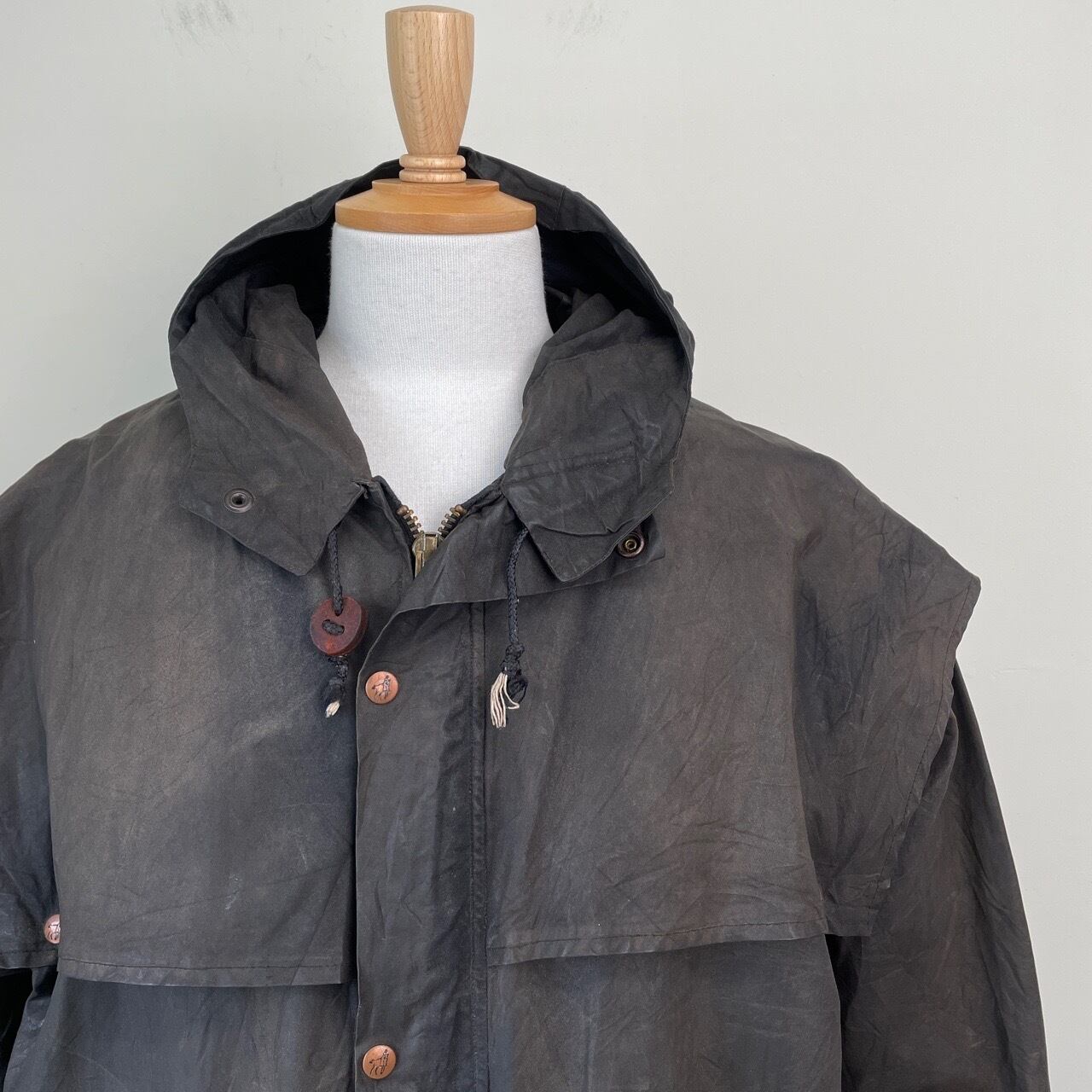 70s 80s OUTBACK TRADING CO オイルドジャケット フード ケープ ヴィンテージ 古着 オーストラリア オイルドコットン コート 70年代 80年代 ビンテージ XL 26030201