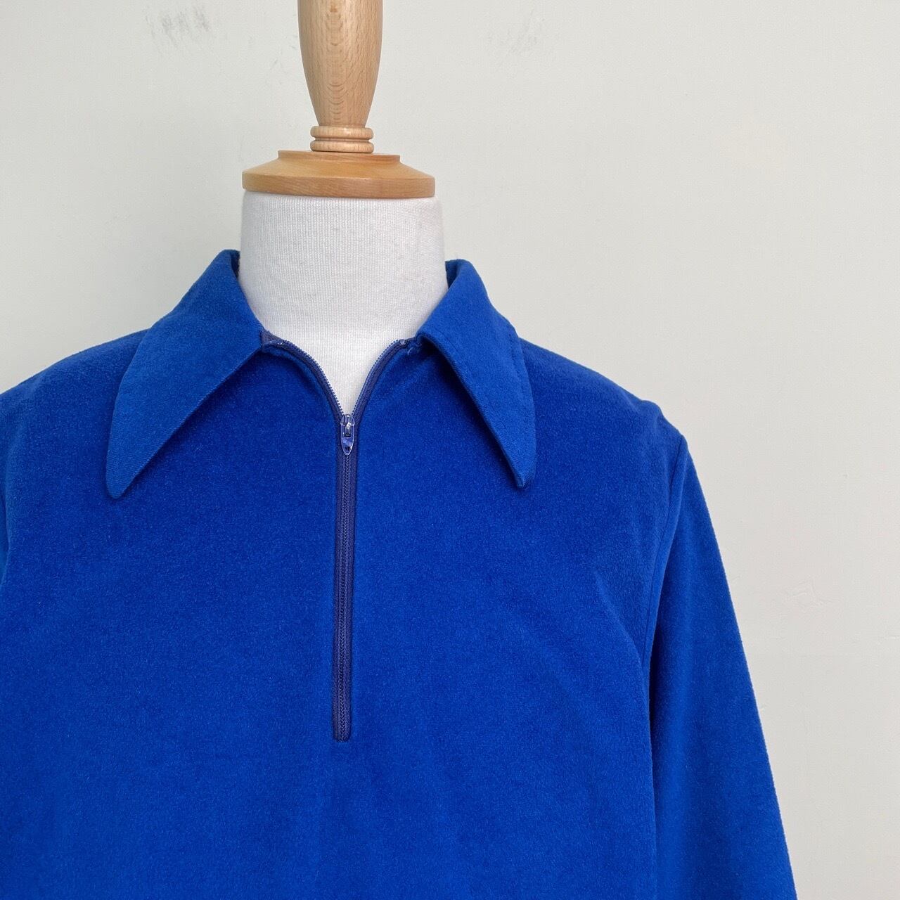 70s USA製 ハーフジップ フリース プルオーバーシャツ ヴィンテージ 古着 青 ブルー 長袖シャツ 無地 70年代 ビンテージ 26031503