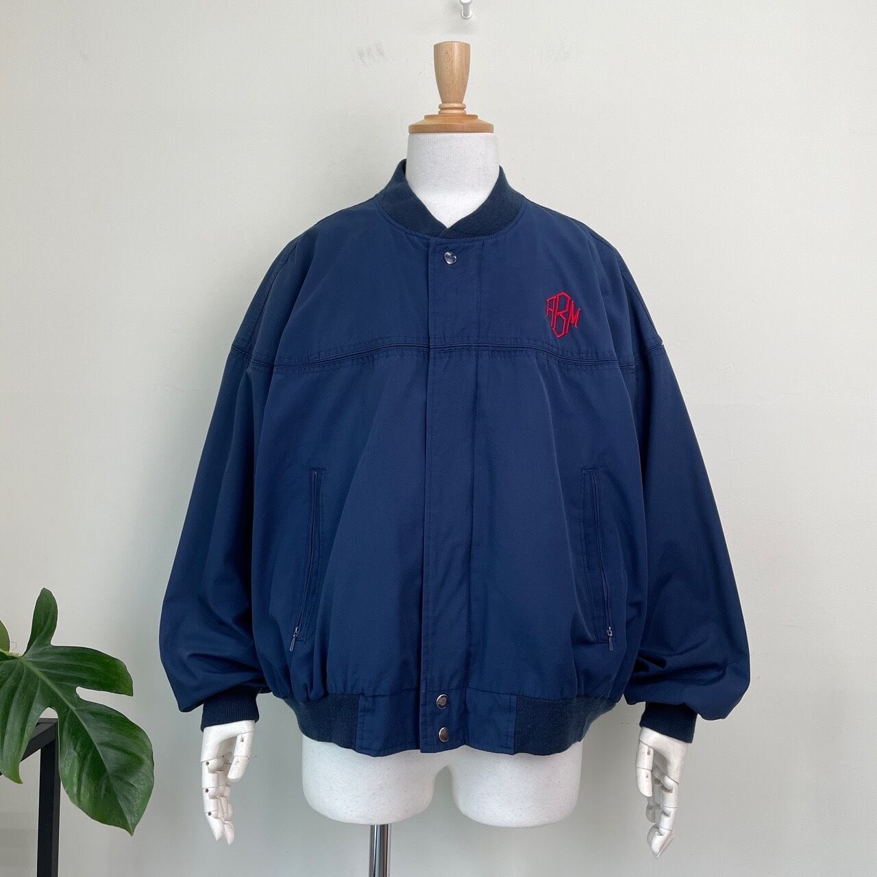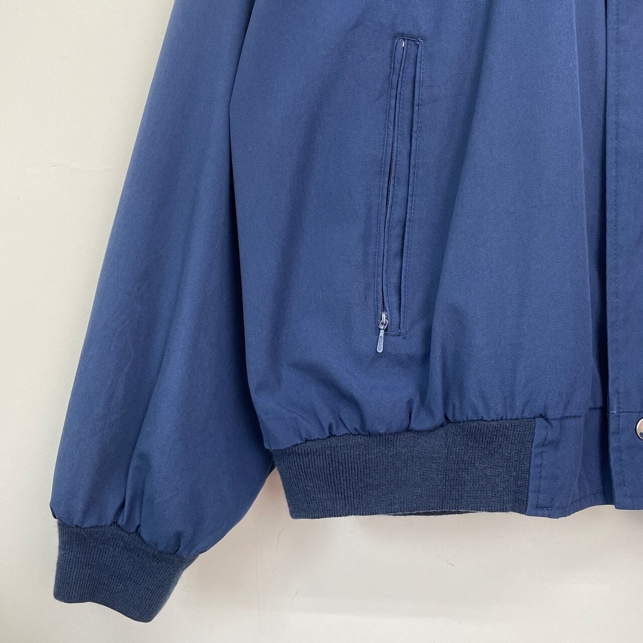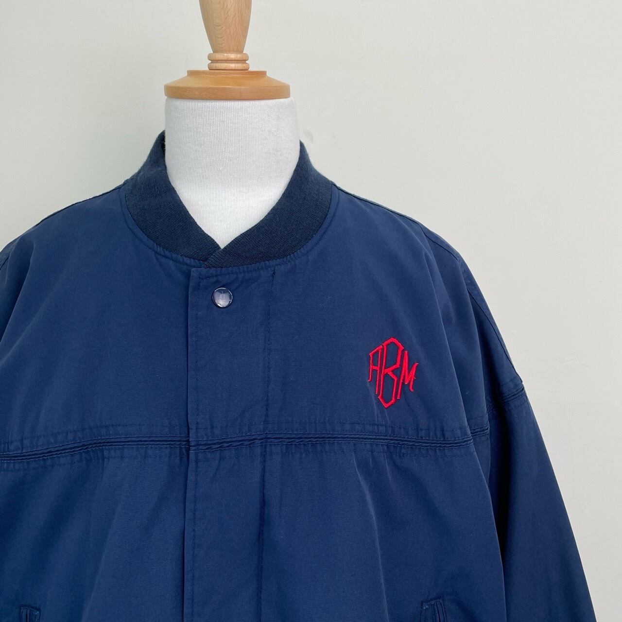 80s 90s Arnie カップショルダージャケット 紺 ネイビー ヴィンテージ 古着 ワンポイント刺繍 ABM ダービージャケット ブルゾン 80年代 90年代 ビンテージ 26031603