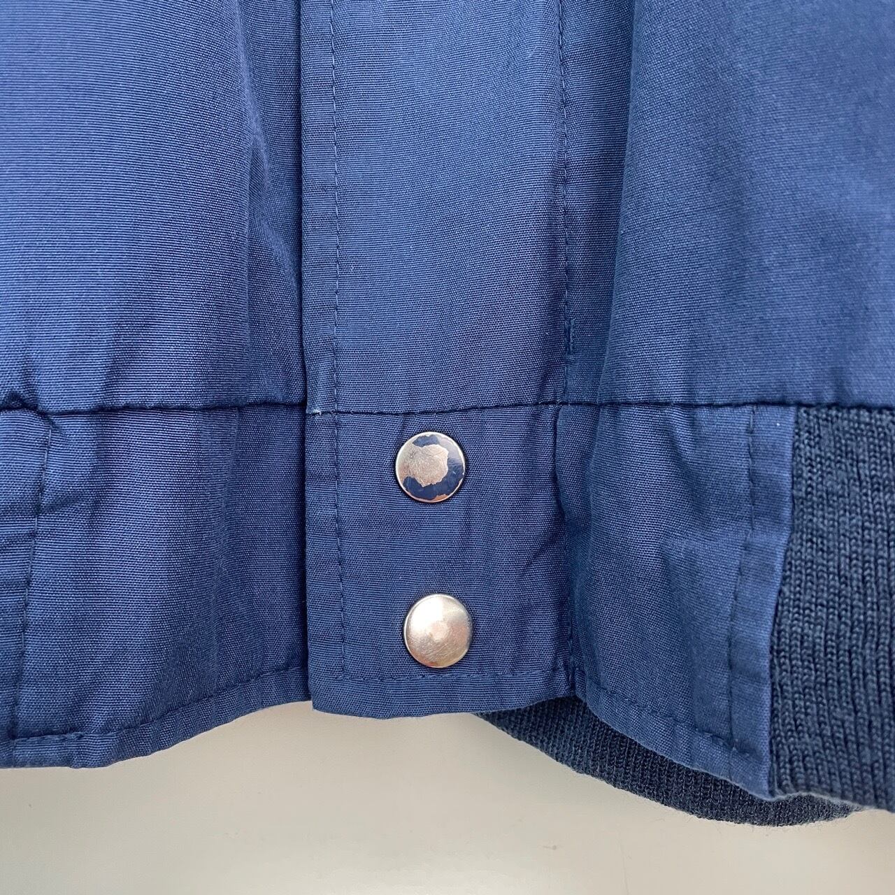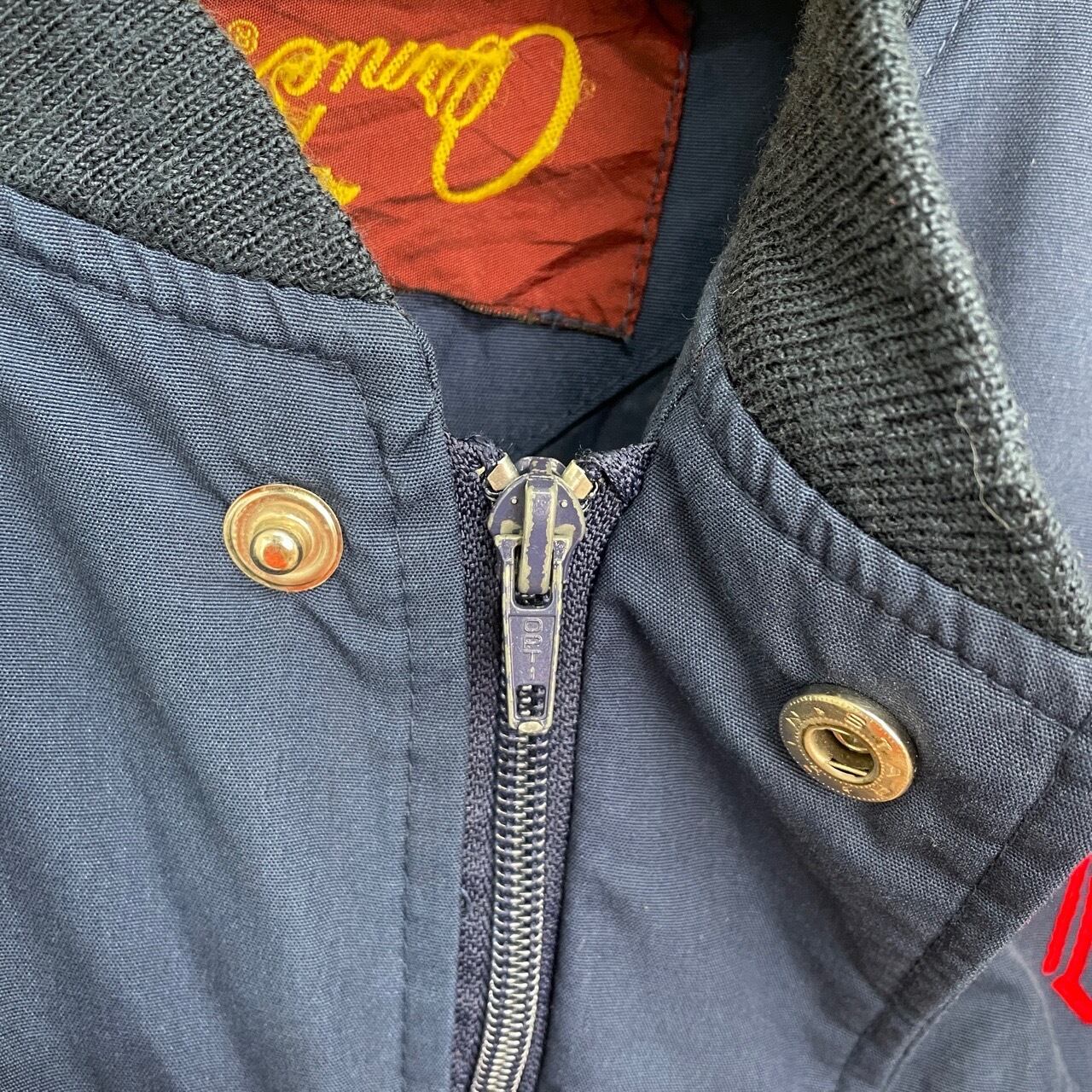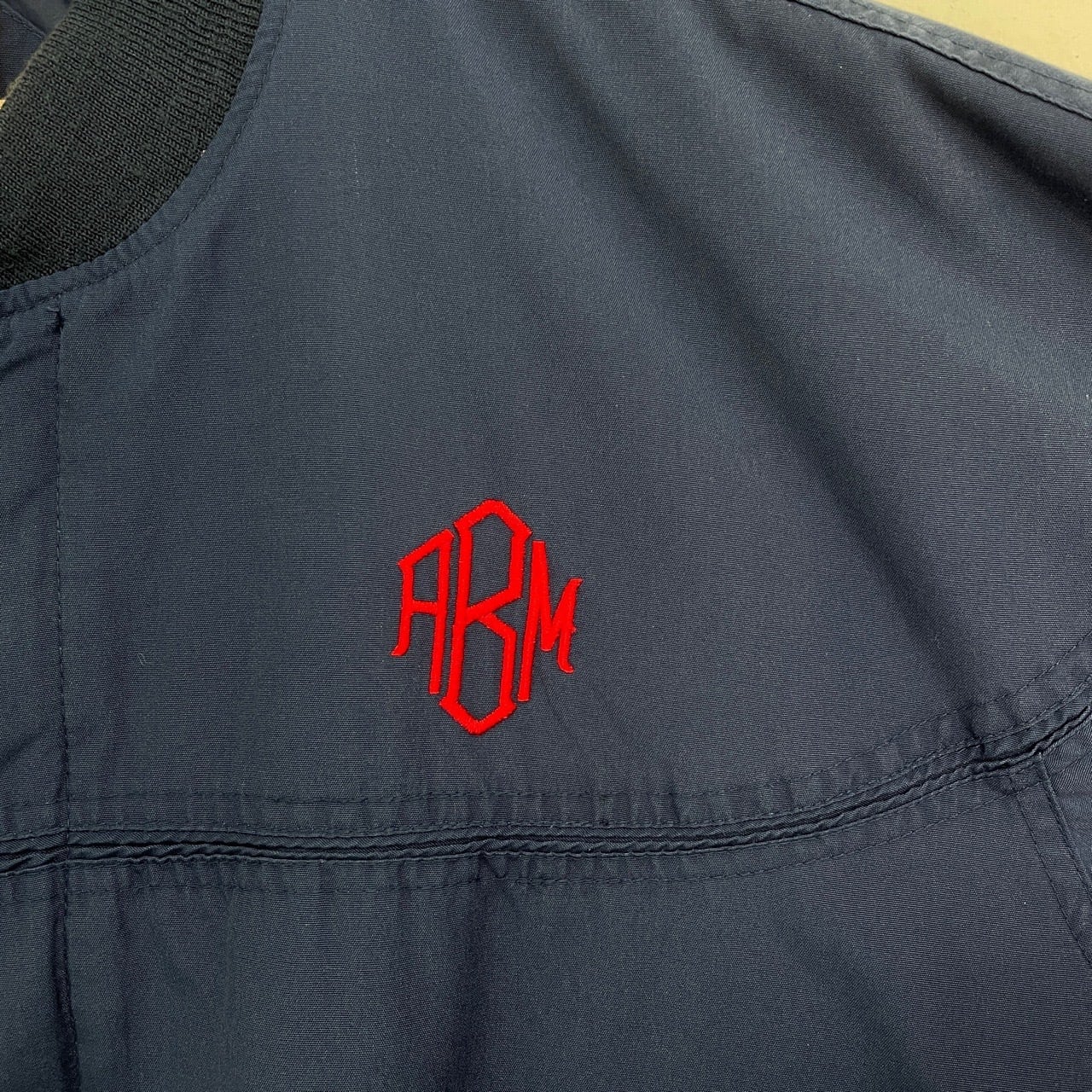 80s 90s Arnie カップショルダージャケット 紺 ネイビー ヴィンテージ 古着 ワンポイント刺繍 ABM ダービージャケット ブルゾン 80年代 90年代 ビンテージ 26031603