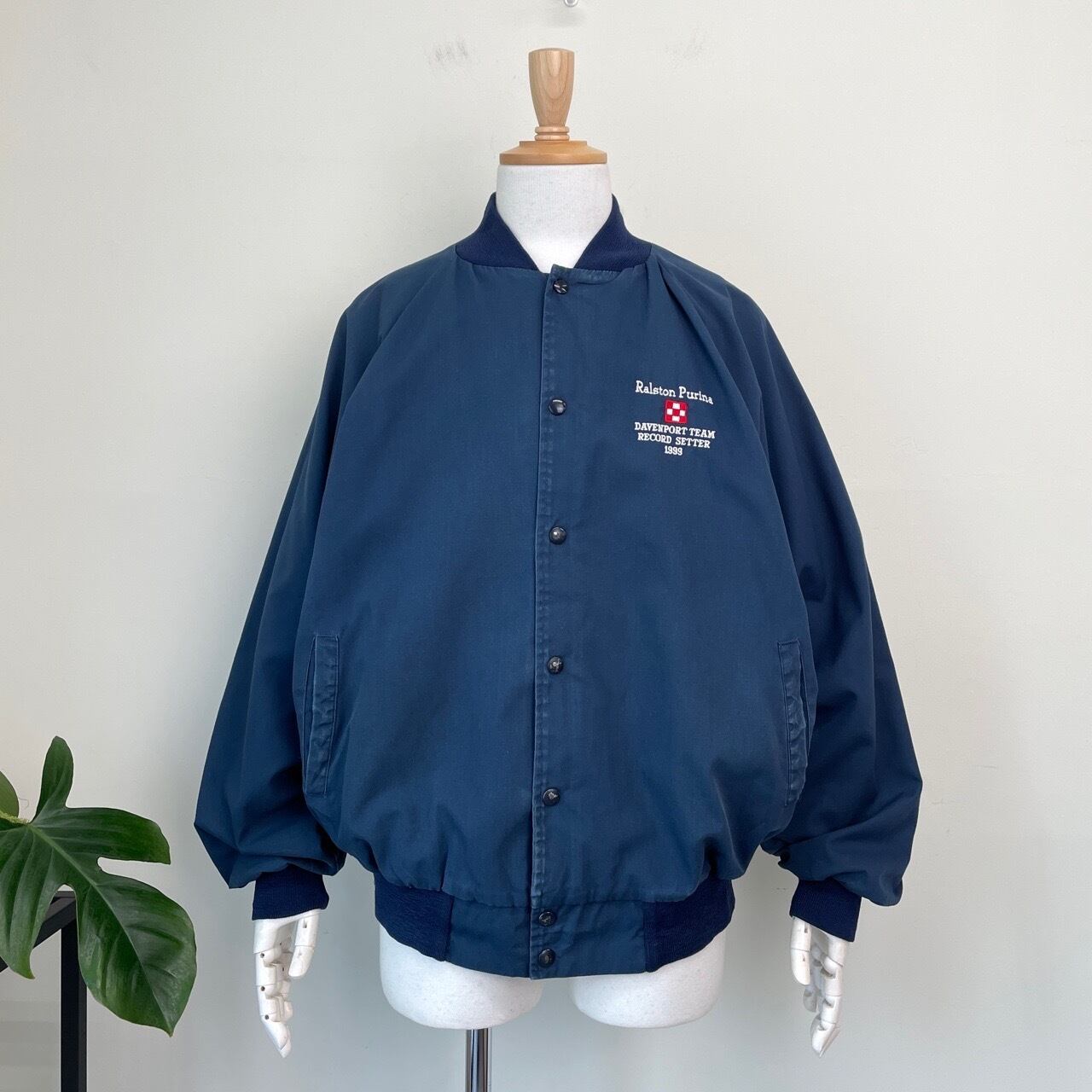 90s USA製 レーシング刺繍 ブルゾン ワークジャケット ヴィンテージ 古着 紺 ネイビー 1999年 90年代 ビンテージ XL 26031605