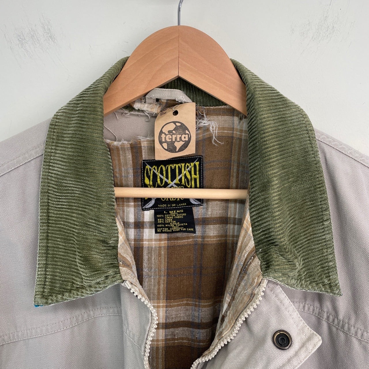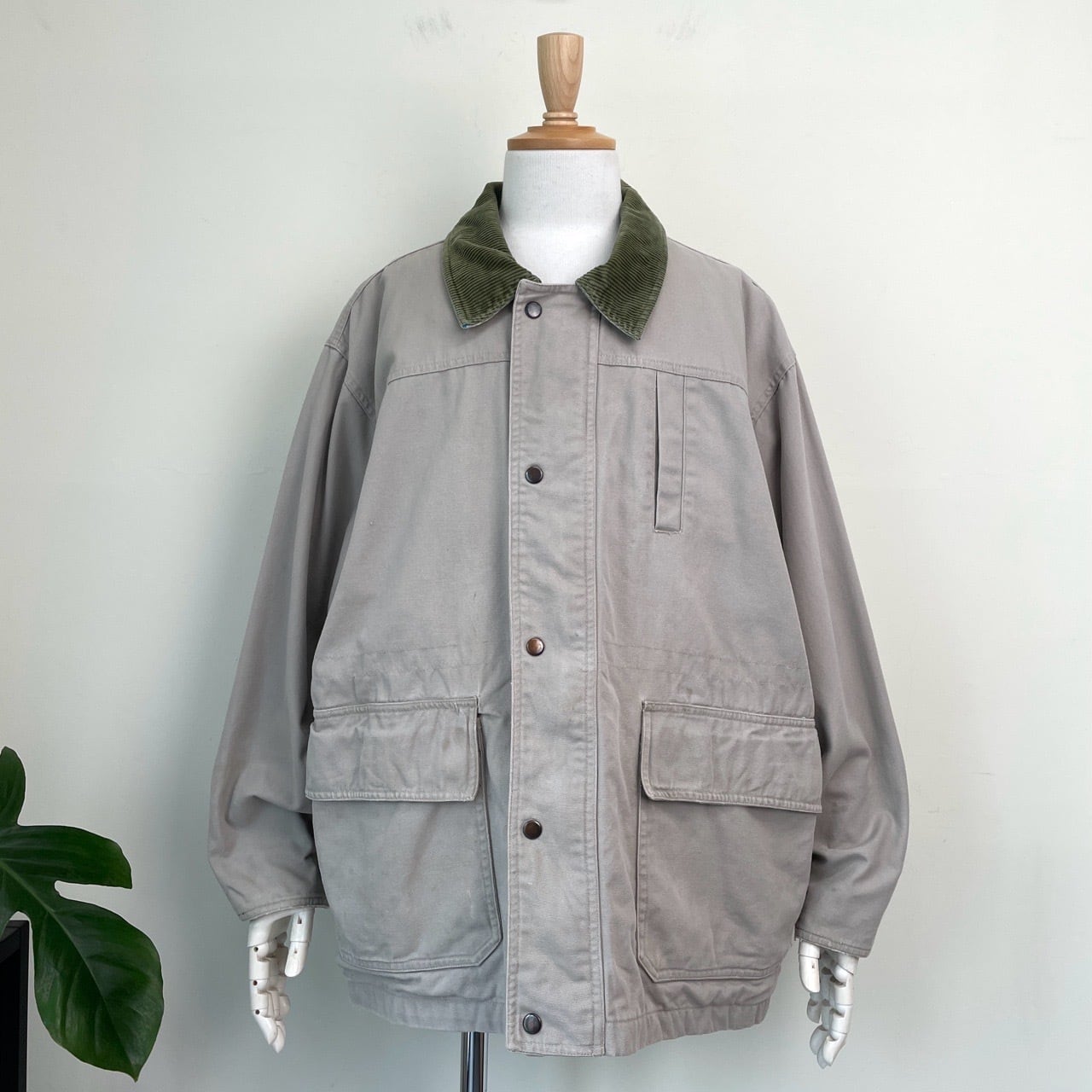 00s SCOTTISH GREYS カバーオール 襟コーデュロイ ヴィンテージ 古着 ベージュ ハンティングジャケット ライトアウター コットン 00年代 2000s 2000年代 Y2K ビンテージ L 26031703