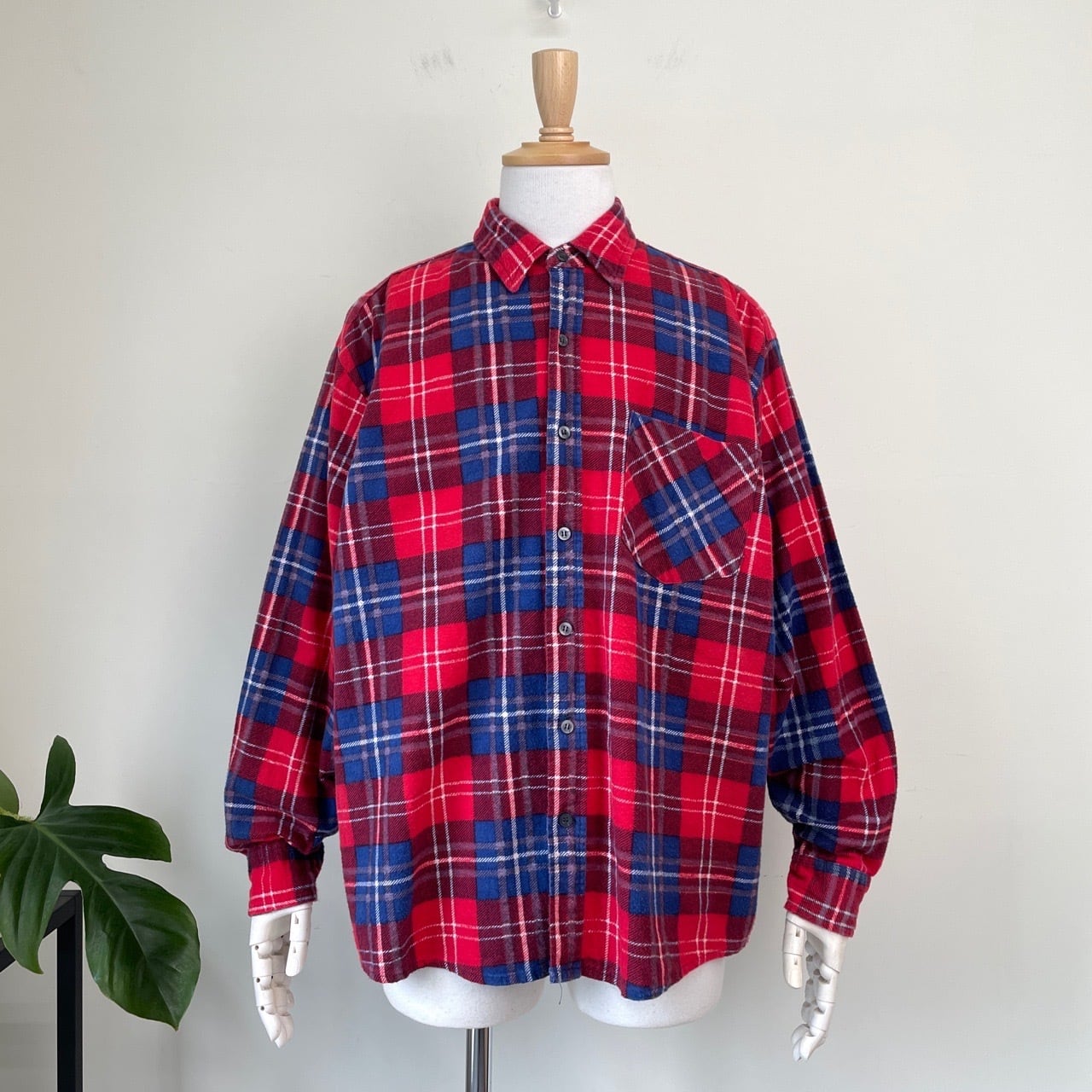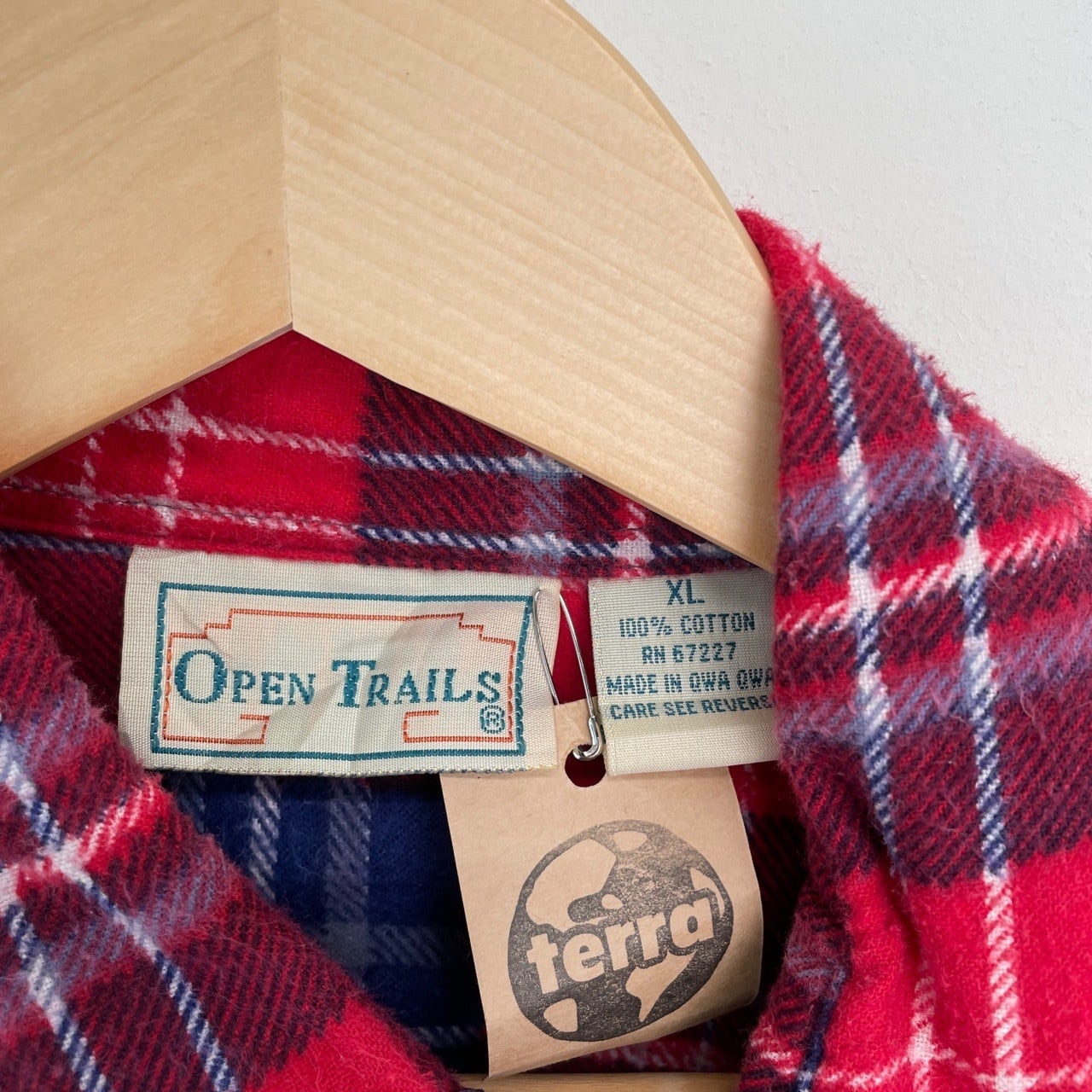 80s OPEN TRAILS チェック プリントネルシャツ ヴィンテージ 古着 赤 レッド 青 ブルー プリネル 長袖シャツ 80年代 ビンテージ XL 26031711
