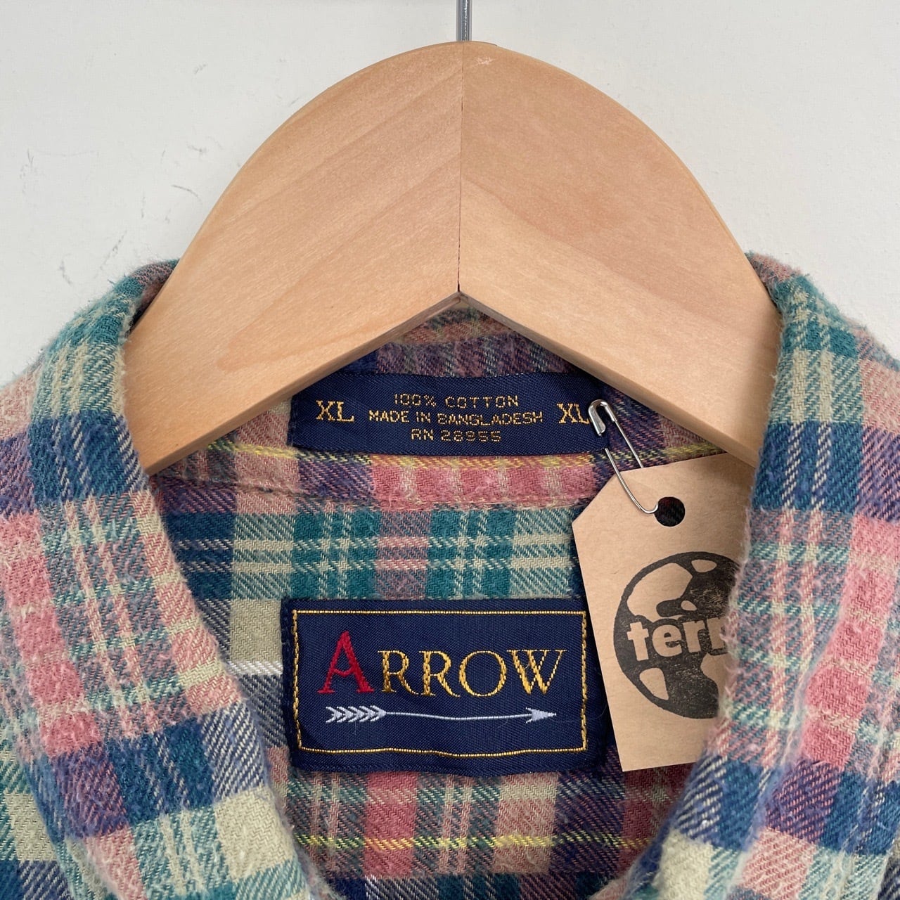 90s ARROW チェック ネルシャツ ヴィンテージ 古着 ボタンダウン 長袖シャツ 90年代 ビンテージ XL 26031712