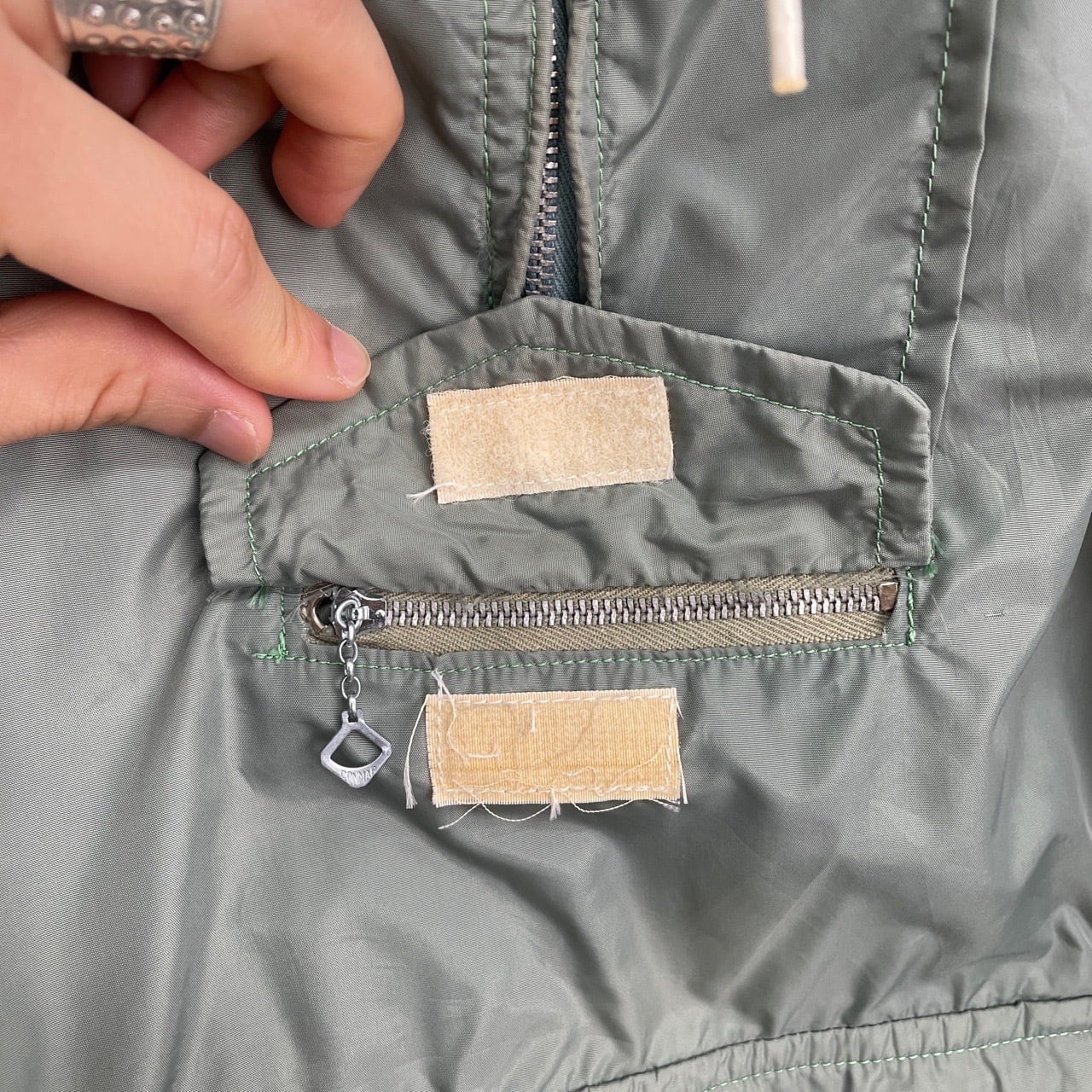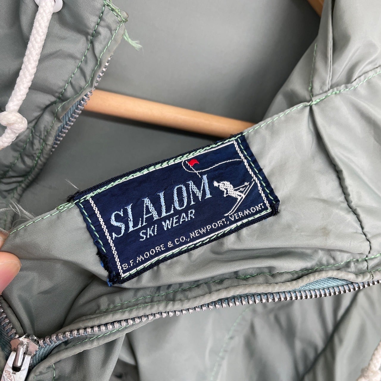 50s SLALOM ナイロン アノラック コの字留め ヴィンテージ 古着 ハーフジップ パーカー スキー アウトドア 緑 グリーン 50年代 ビンテージ 26032702