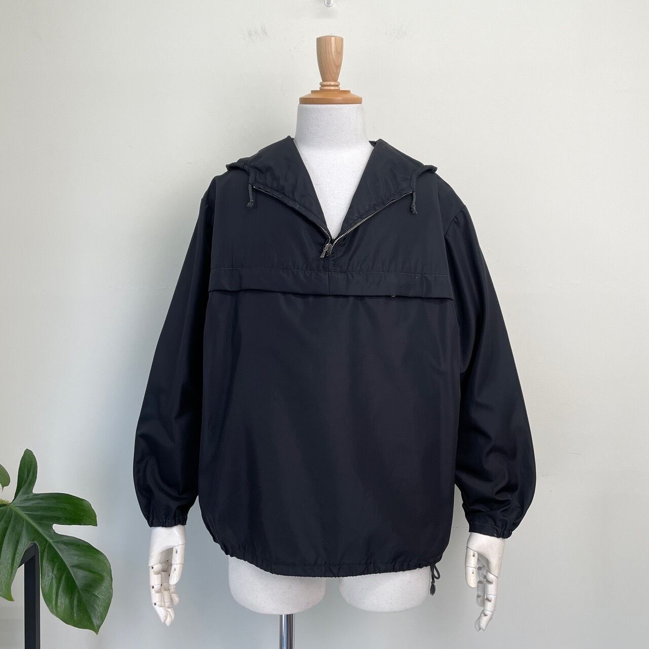 60s 70s KRAS ナイロン アノラック 黒 ブラック ヴィンテージ 古着 ハーフジップ パーカー ユーロ 60年代 70年代 ビンテージ 26032703