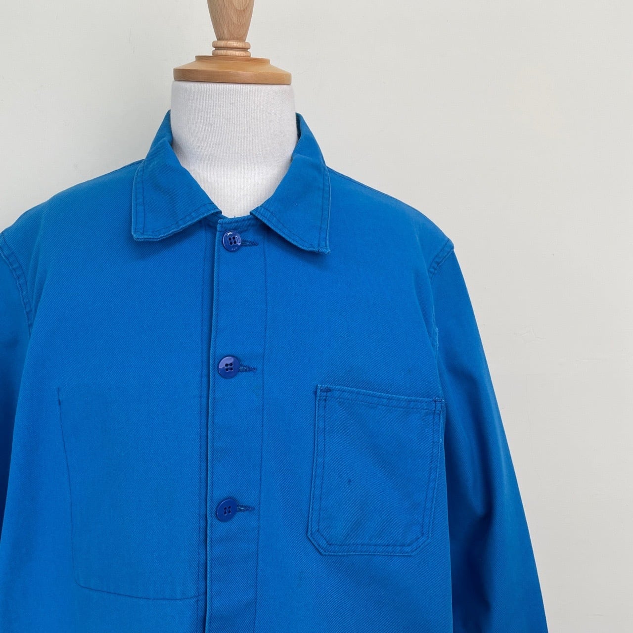 80s 90s フレンチワークジャケット レアカラー カバーオール ヴィンテージ 古着 ユーロワーク 水色 ライトブルー フランス製 80年代 90年代 ビンテージ 26032705