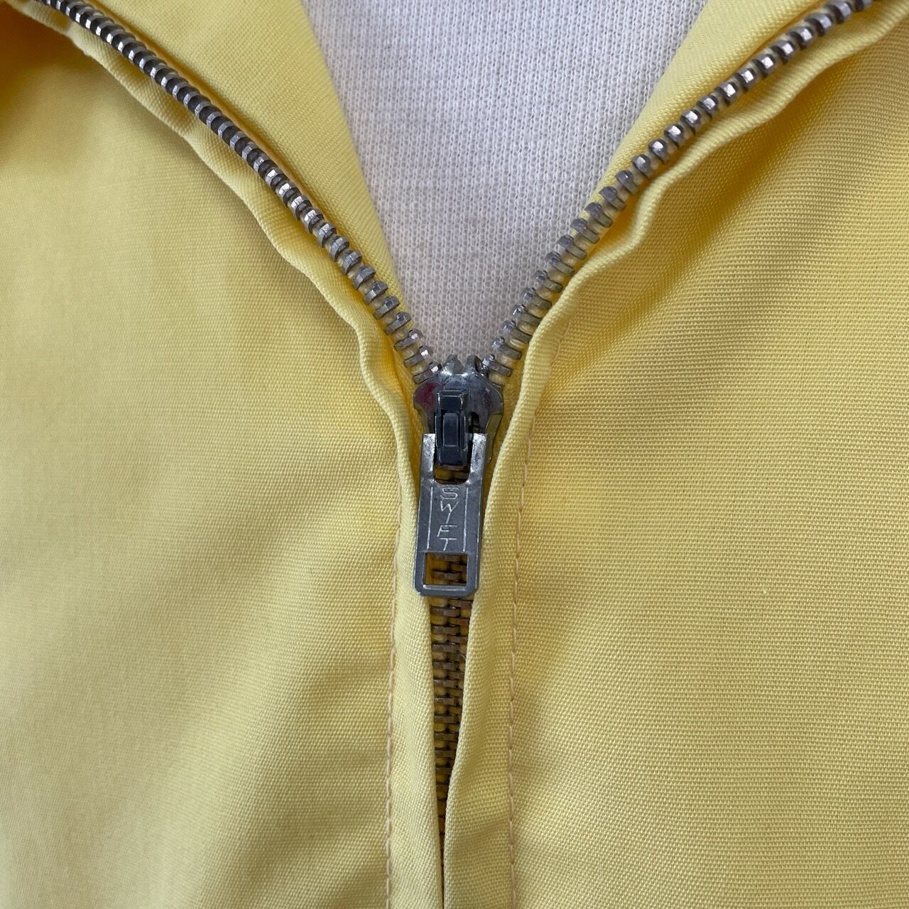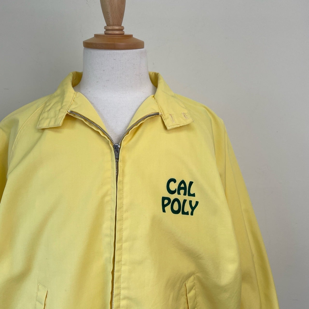 70s カレッジ フロッキープリント スイングトップ ヴィンテージ イエロー 黄色 CAL POLY スウィングトップ ハリントンジャケット VELVA SHEEN 70年代 ビンテージ XL 26032804