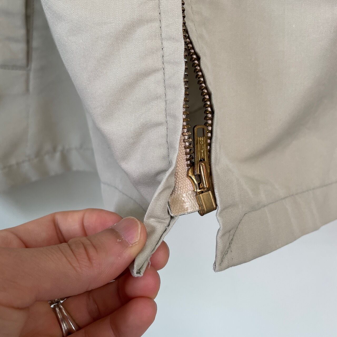 ジッパー下端に少しステッチのほつれ