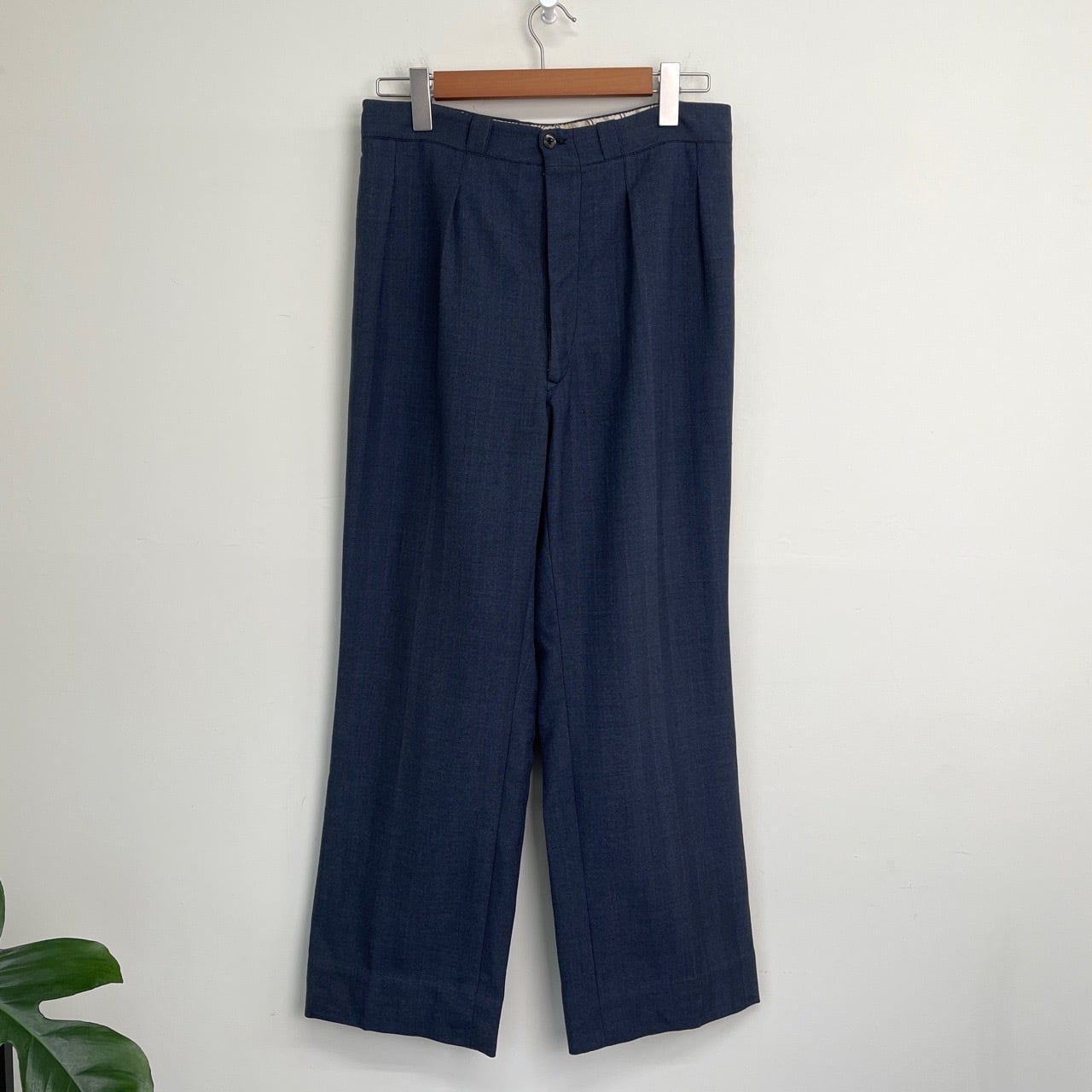 60s 70s ユーロ ストライプ ツータック ウール ワイド スラックス シンチバック バックルバック ヴィンテージ 古着 青 ブルー ボタンフライ 60年代 70年代 ビンテージ W30 26040402