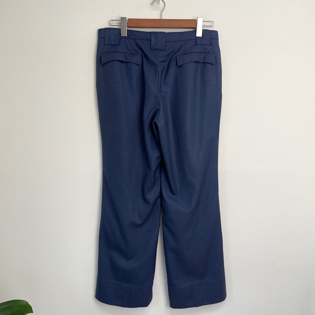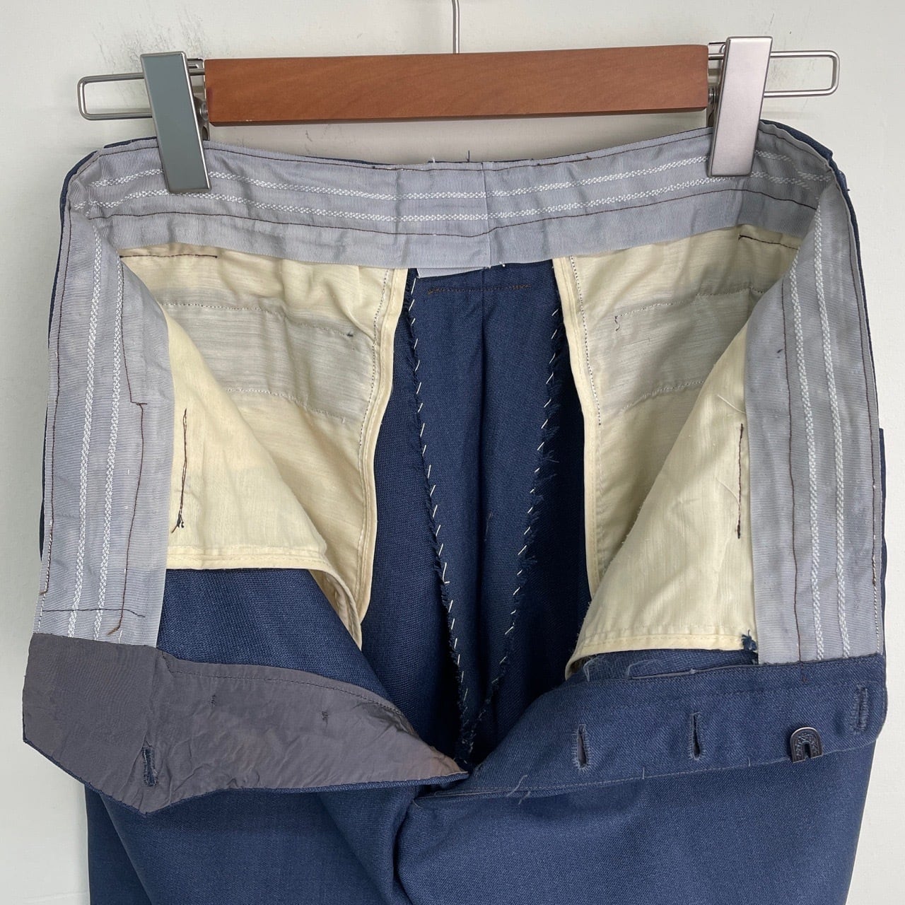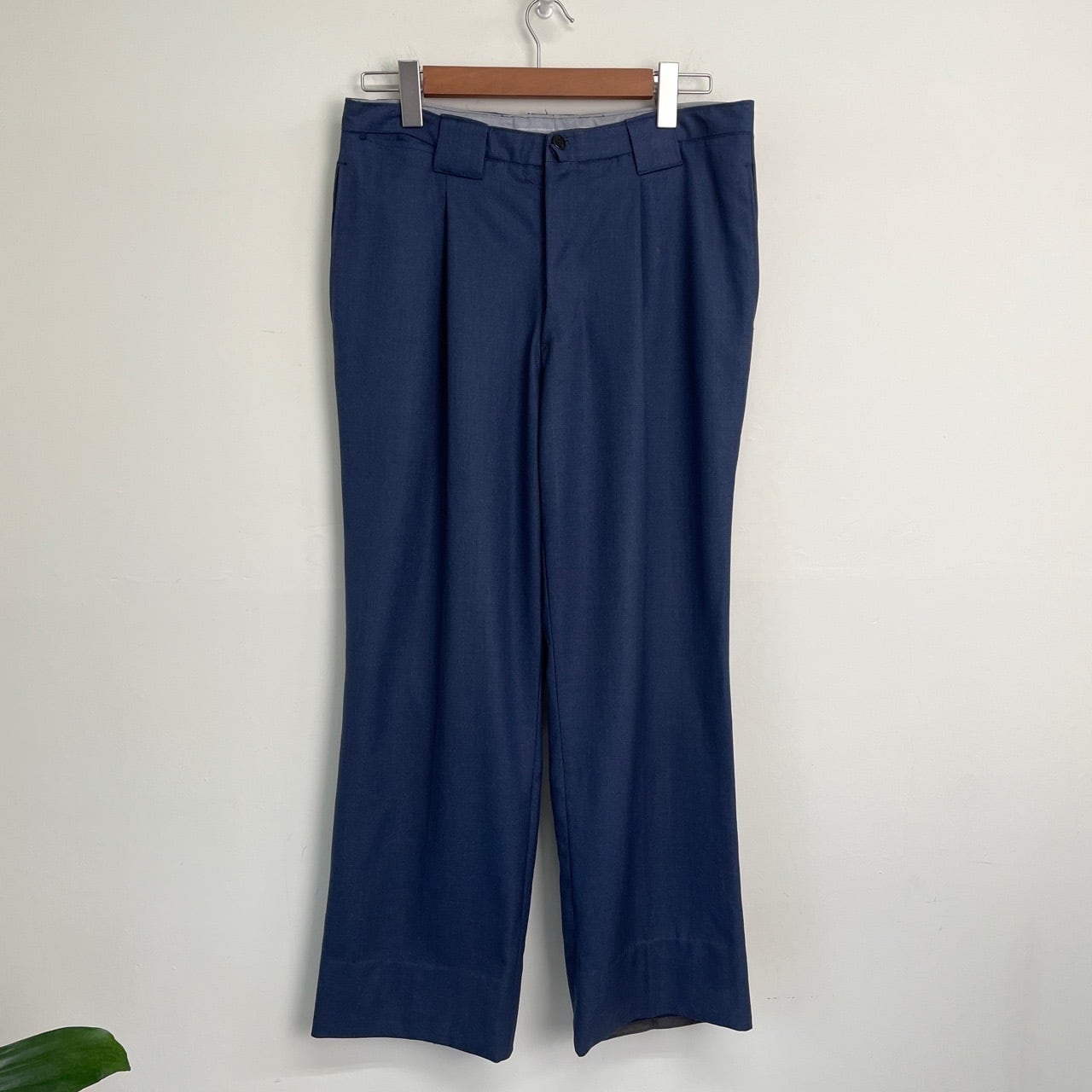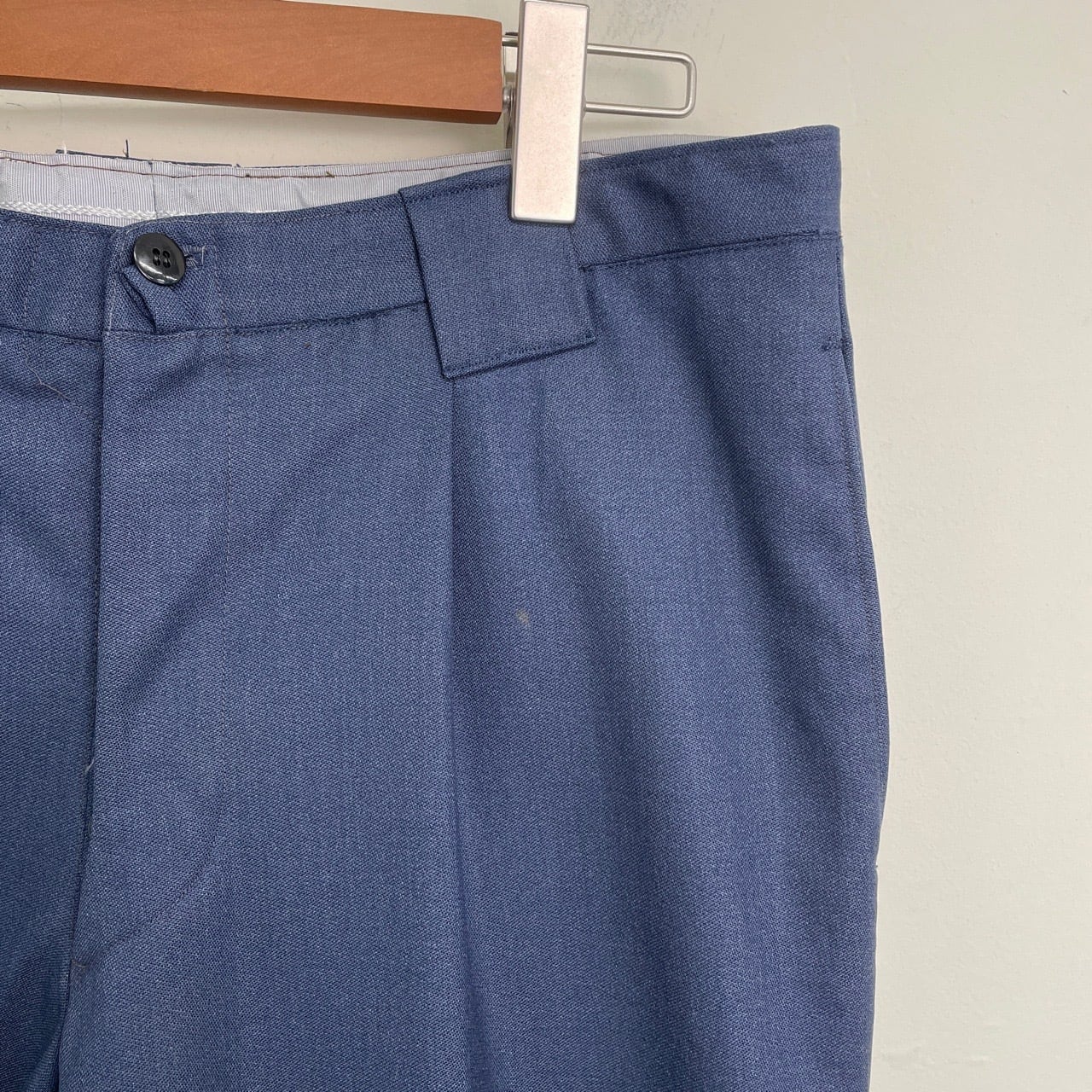 70s ユーロ ワンタック ウール ワイド スラックス ヴィンテージ 古着 青 ブルー ボタンフライ 70年代 ビンテージ W32 26040403