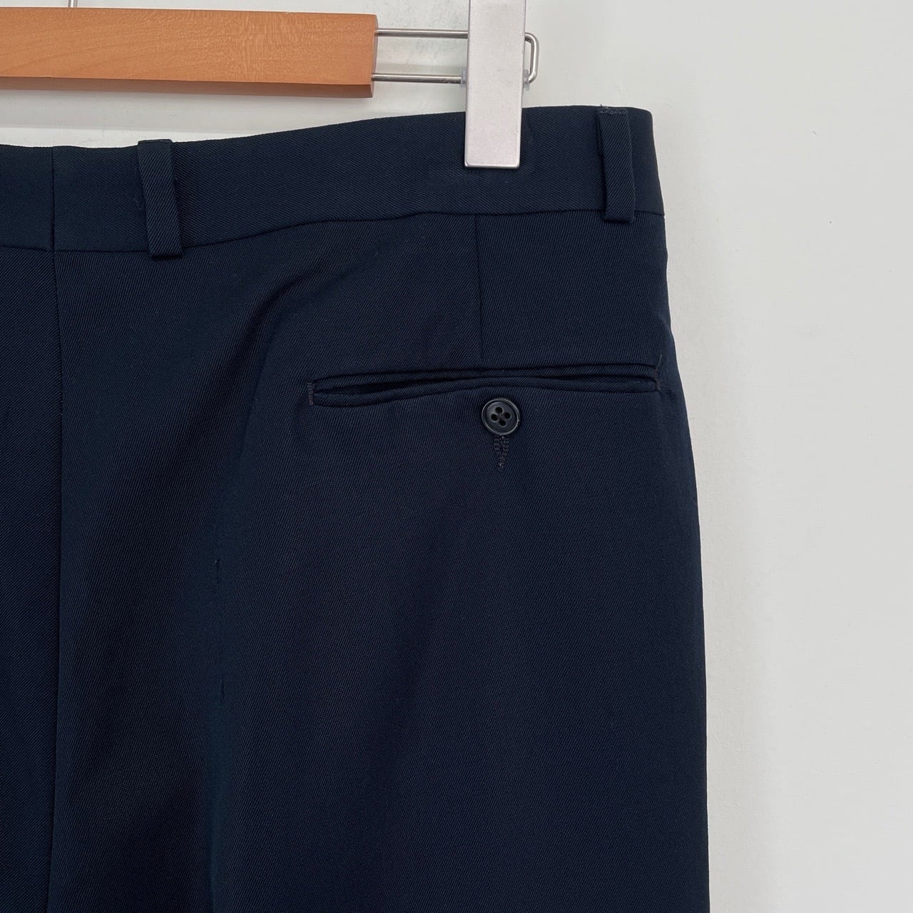 80s カナダ製 KASPER スリータック ワイド ウール スラックス ヴィンテージ 紺 ネイビー 3タック 古着 無地 80年代 ビンテージ W34 26040409