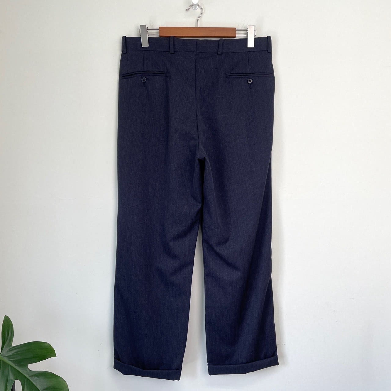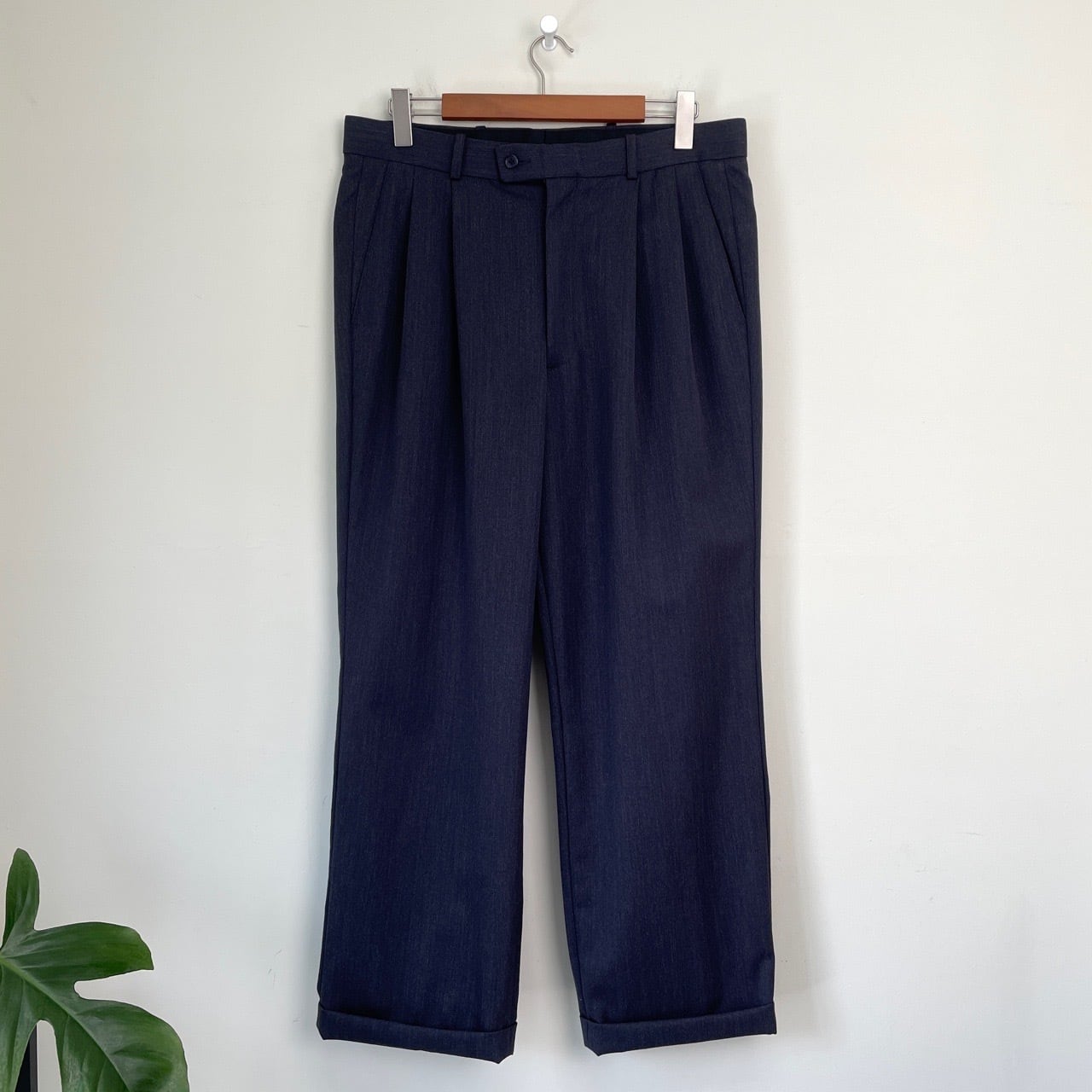 90s Greg Peters ツータック ワイド スラックス ウール 紺 ネイビー 2タック ヴィンテージ 古着 無地 90年代 ビンテージ W35 26040410